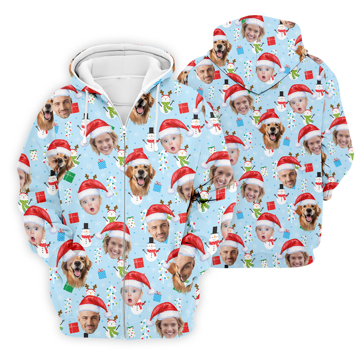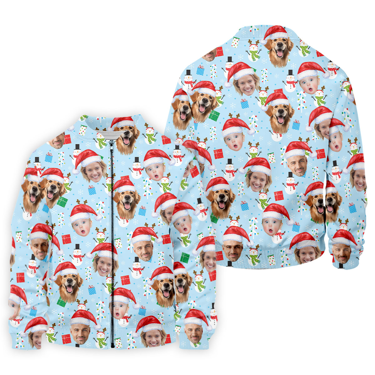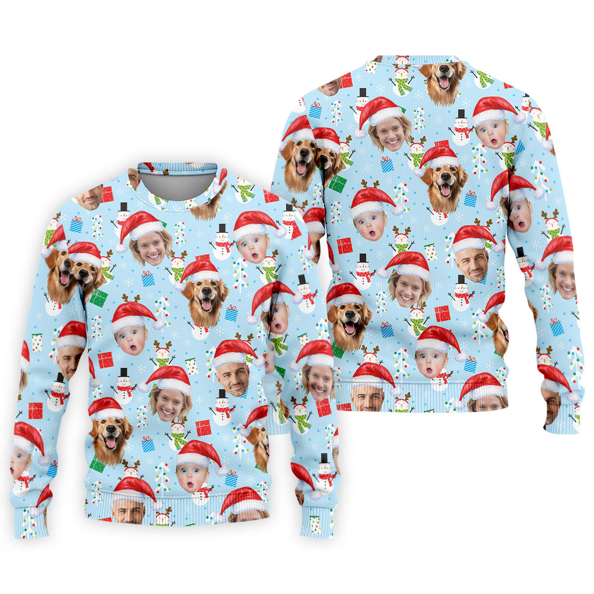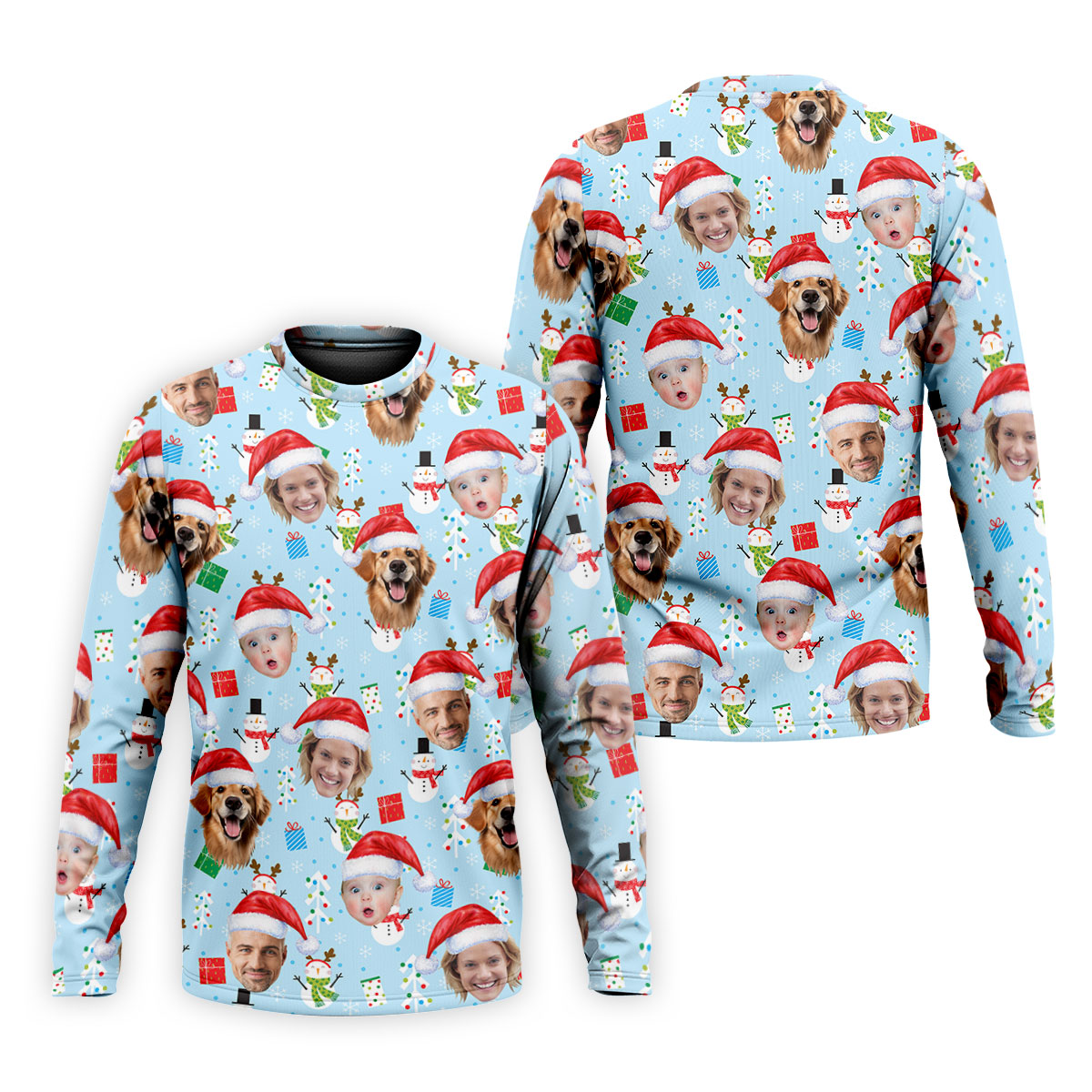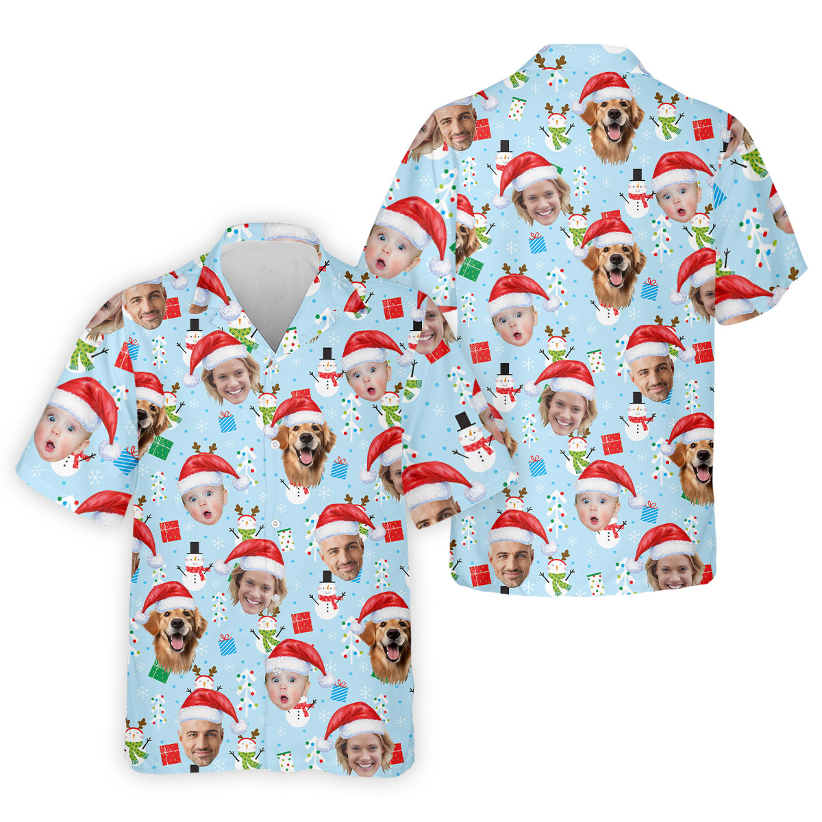 Custom Face Cute Snowman Pastel Blue Christmas Golf Shirt, Polo Shirts For Men, Golf Gift For Men