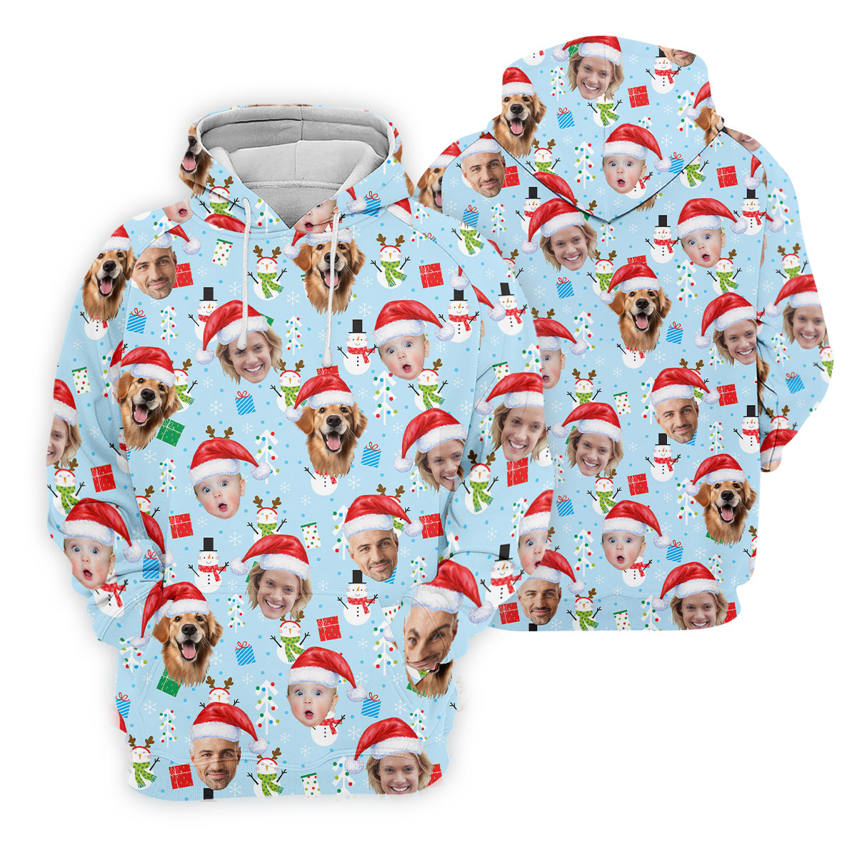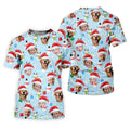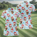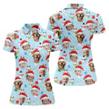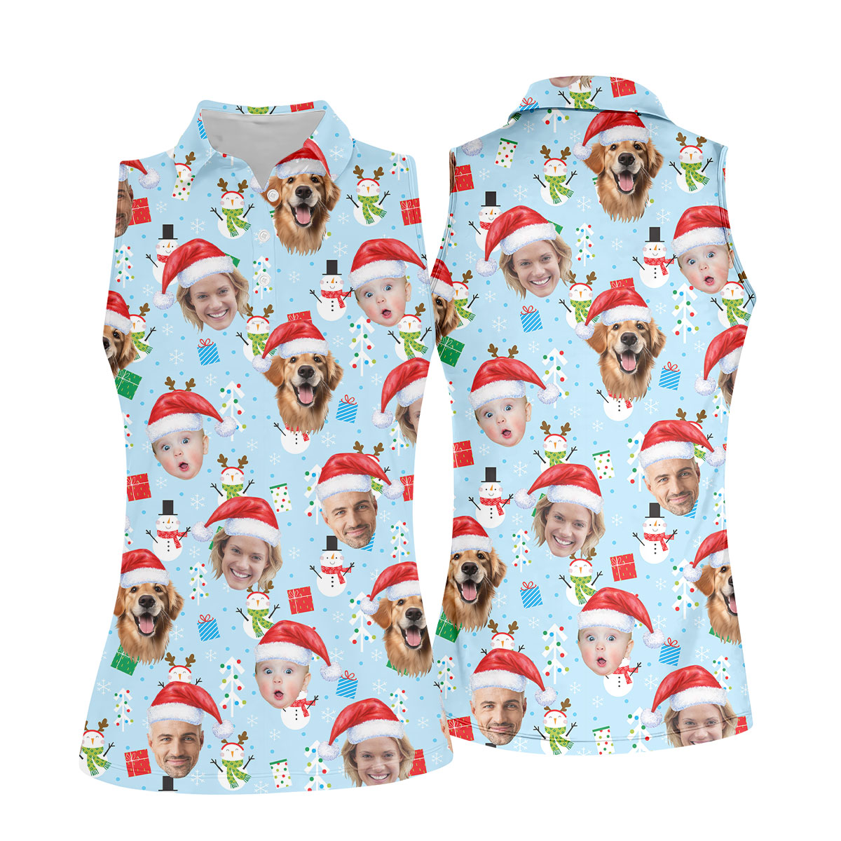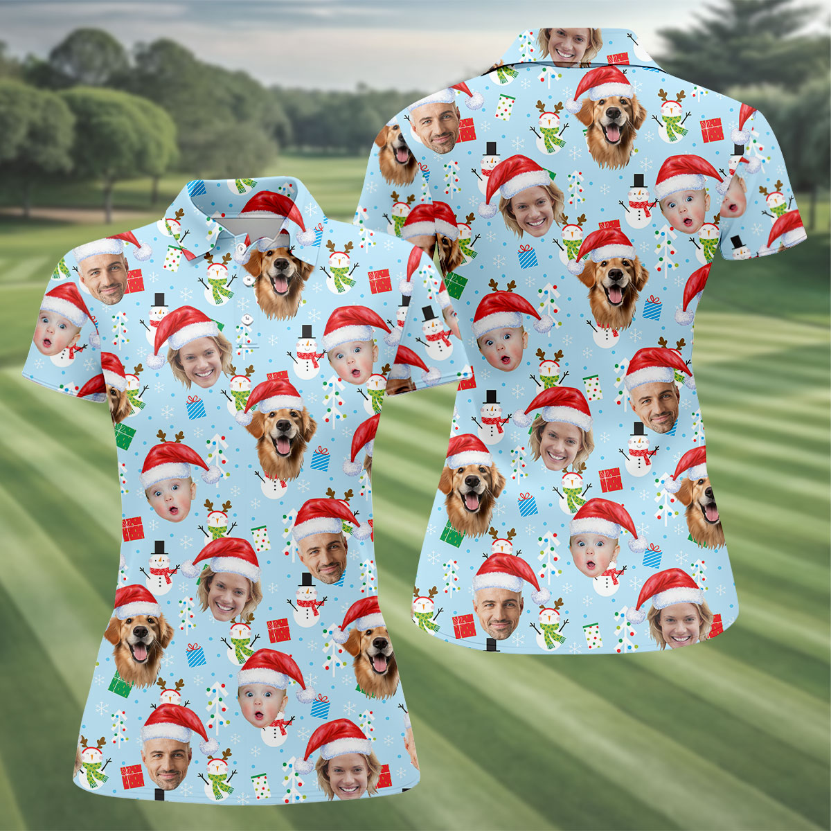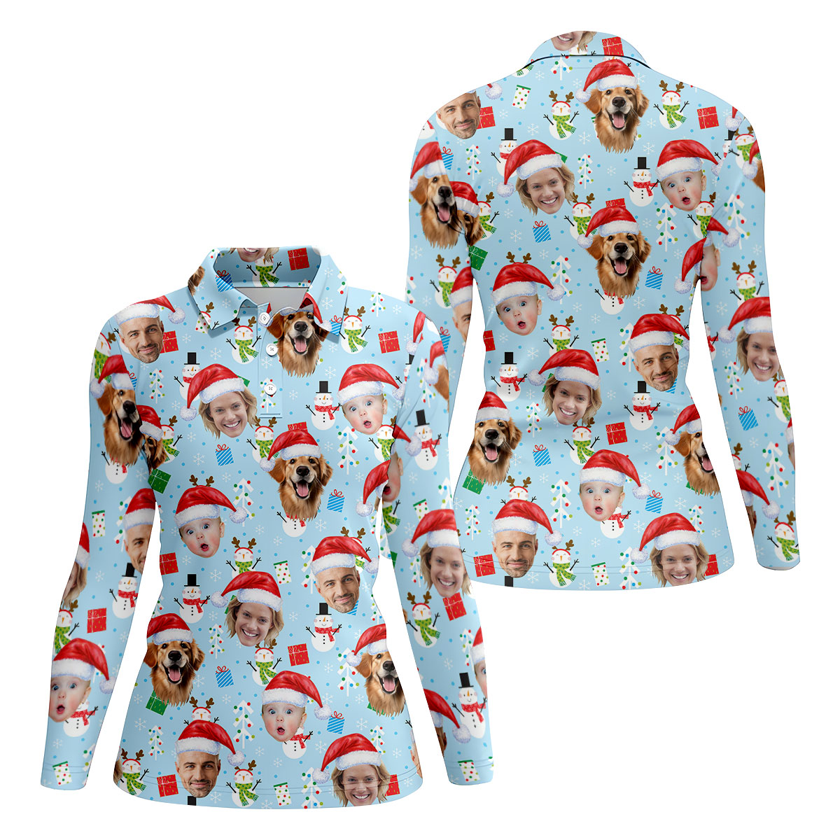 Custom Face Cute Snowman Pastel Blue Christmas Golf Shirt, Women's Golf Tops, Ladies Golf Shirts