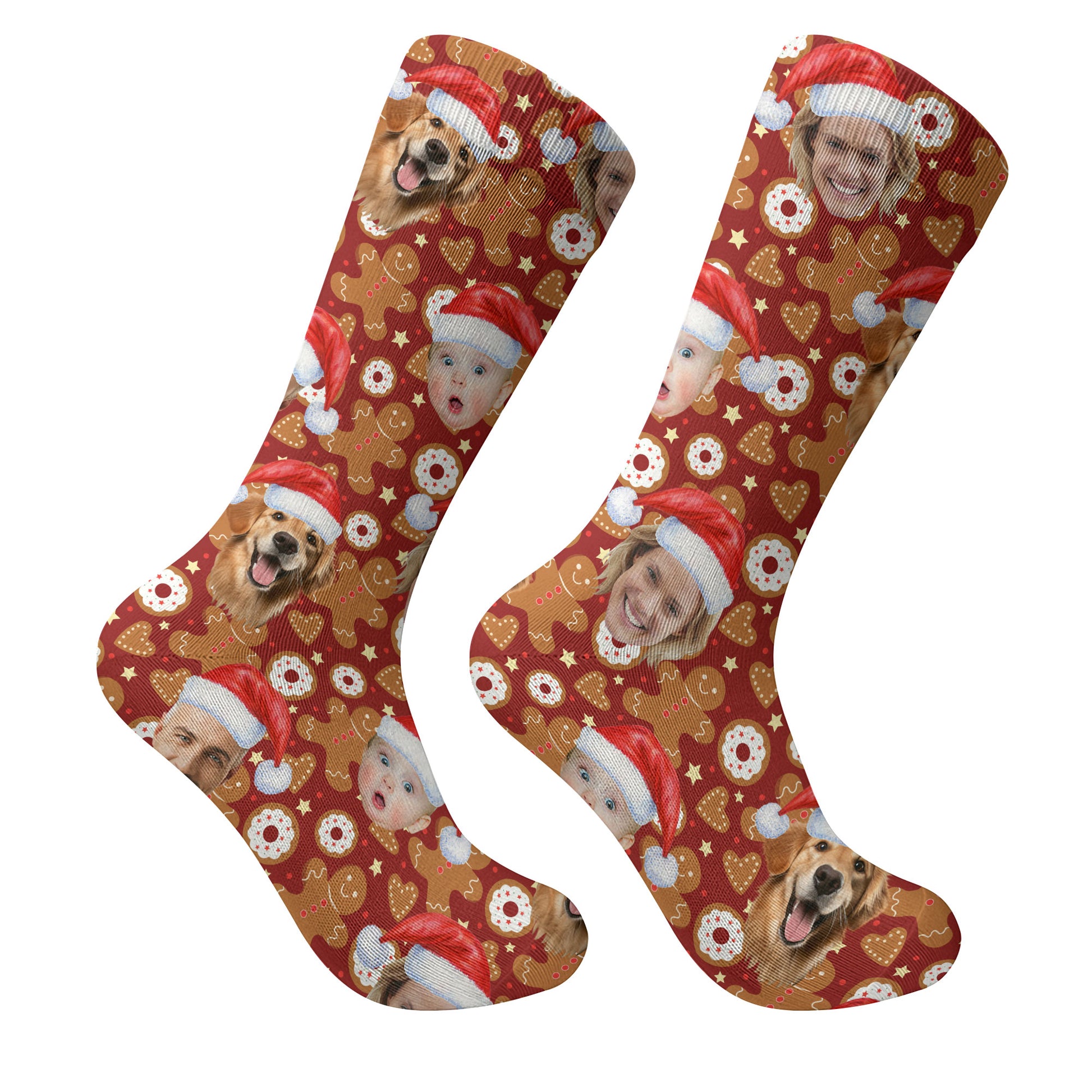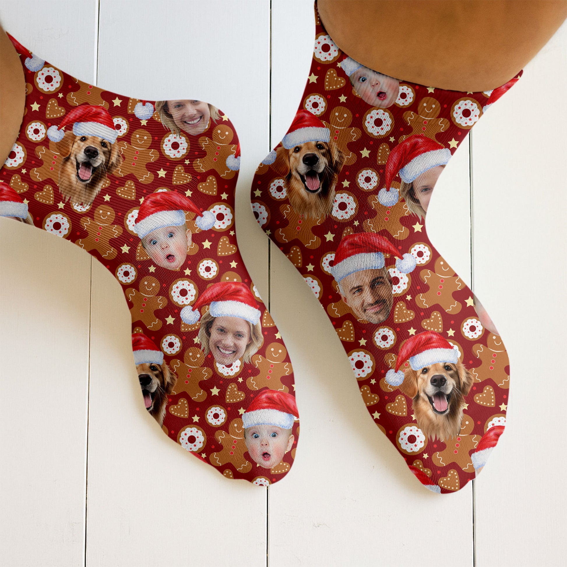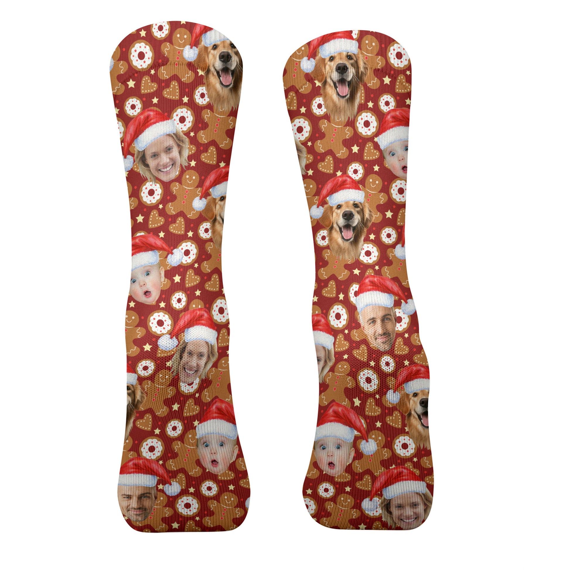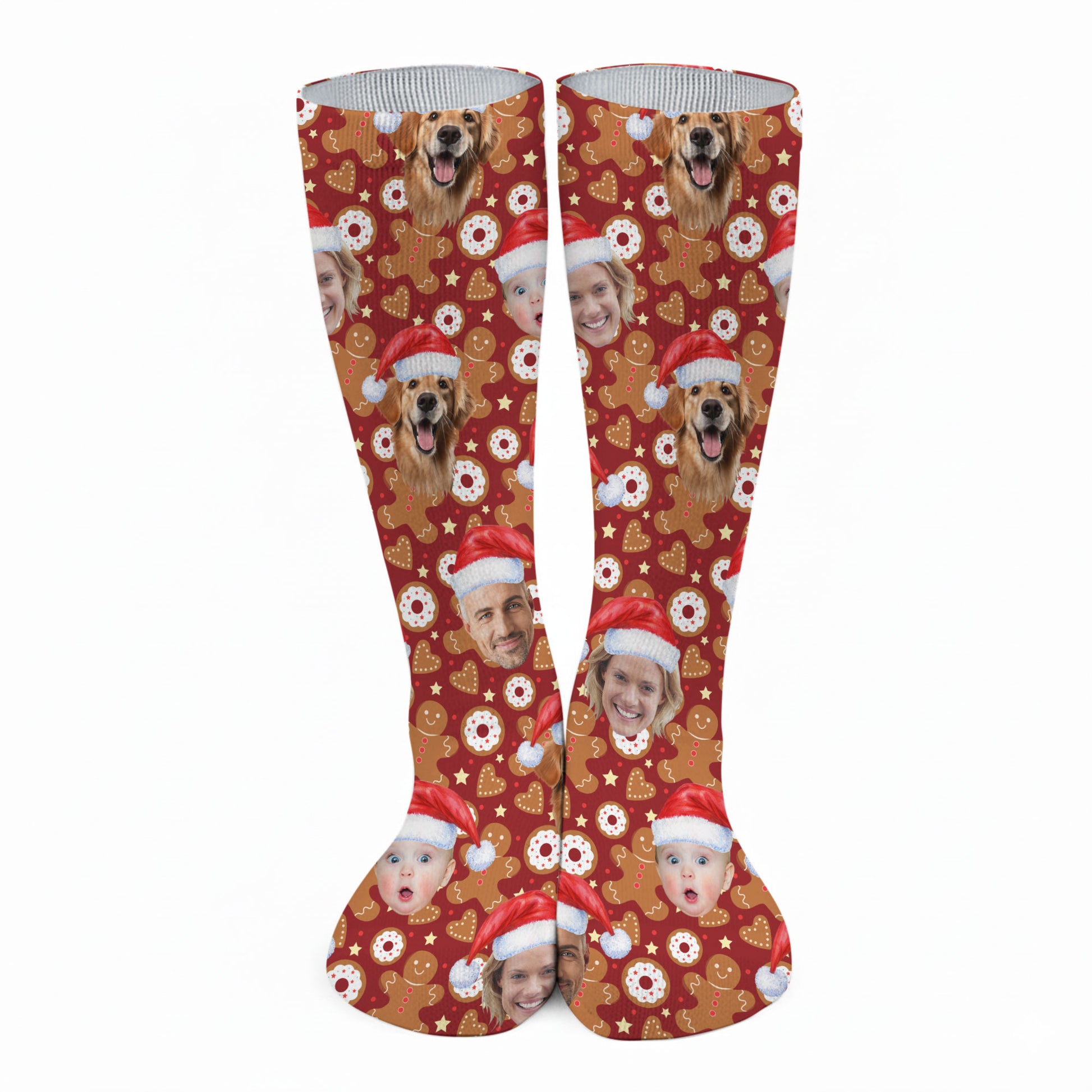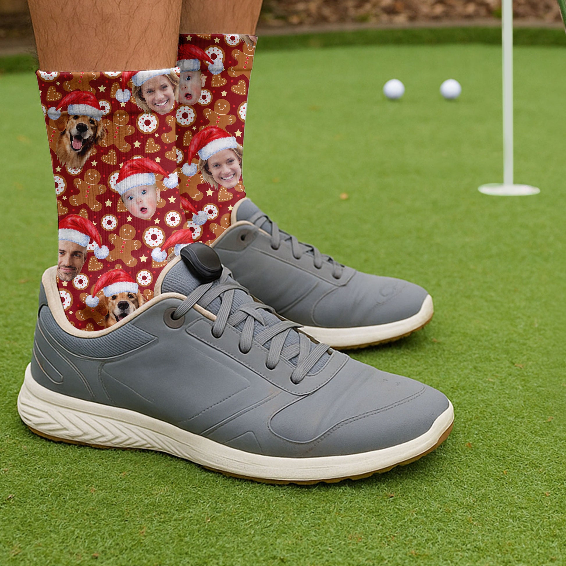 Custom Face Gingerbread Man Christmas Red Golf Socks, Christmas Golf Gift, Custom Golf Accessories