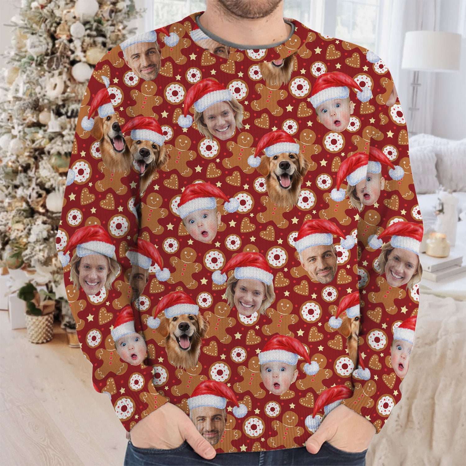 Custom Face Gingerbread Man Christmas Red Golf Ugly Sweater, Christmas Golf Shirt, Golf Sweater