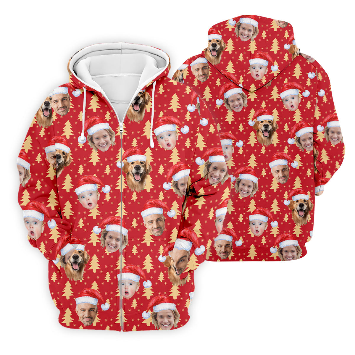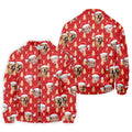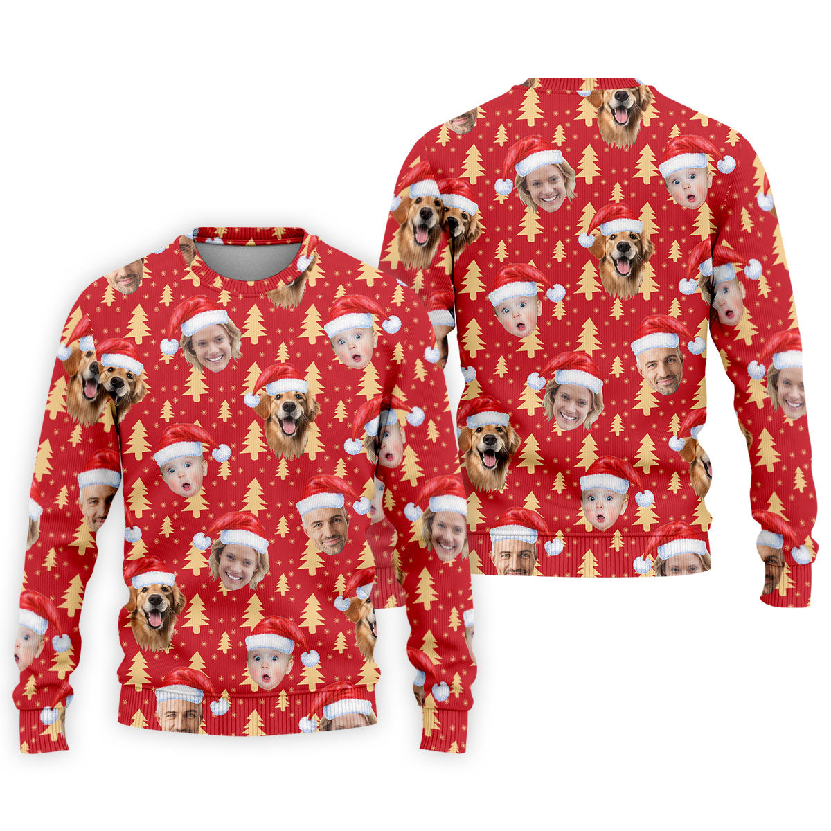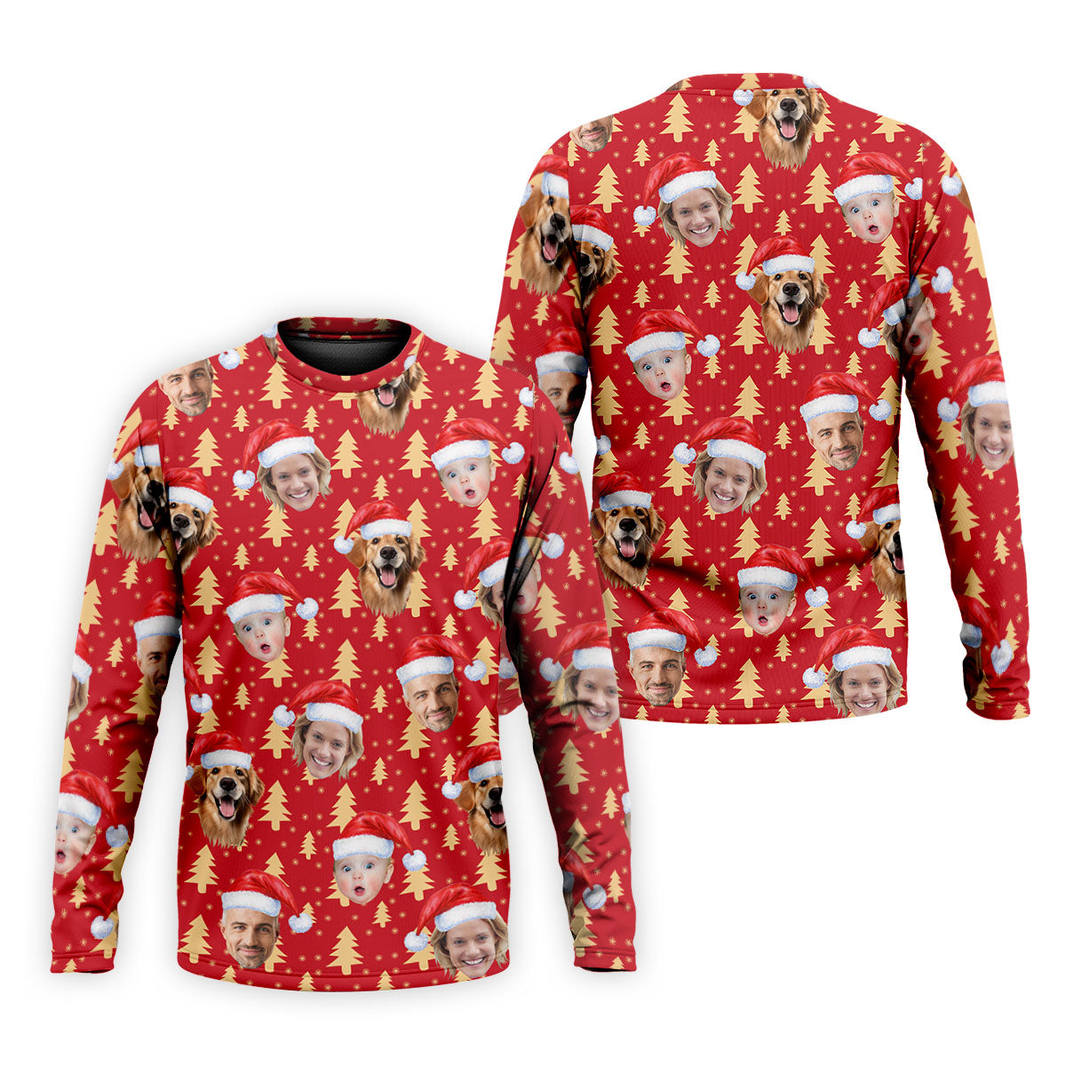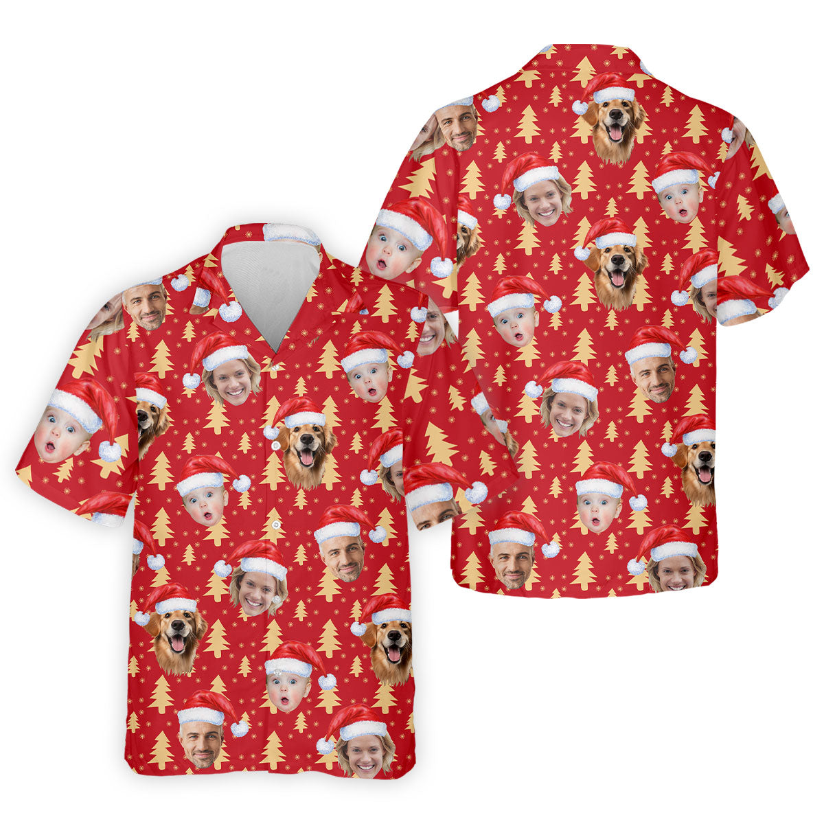 Custom Face Golden Pine Tree Red Golf Shirt, Christmas Golf Shirt, Golf Shirts For Men, Golf Gift For Men