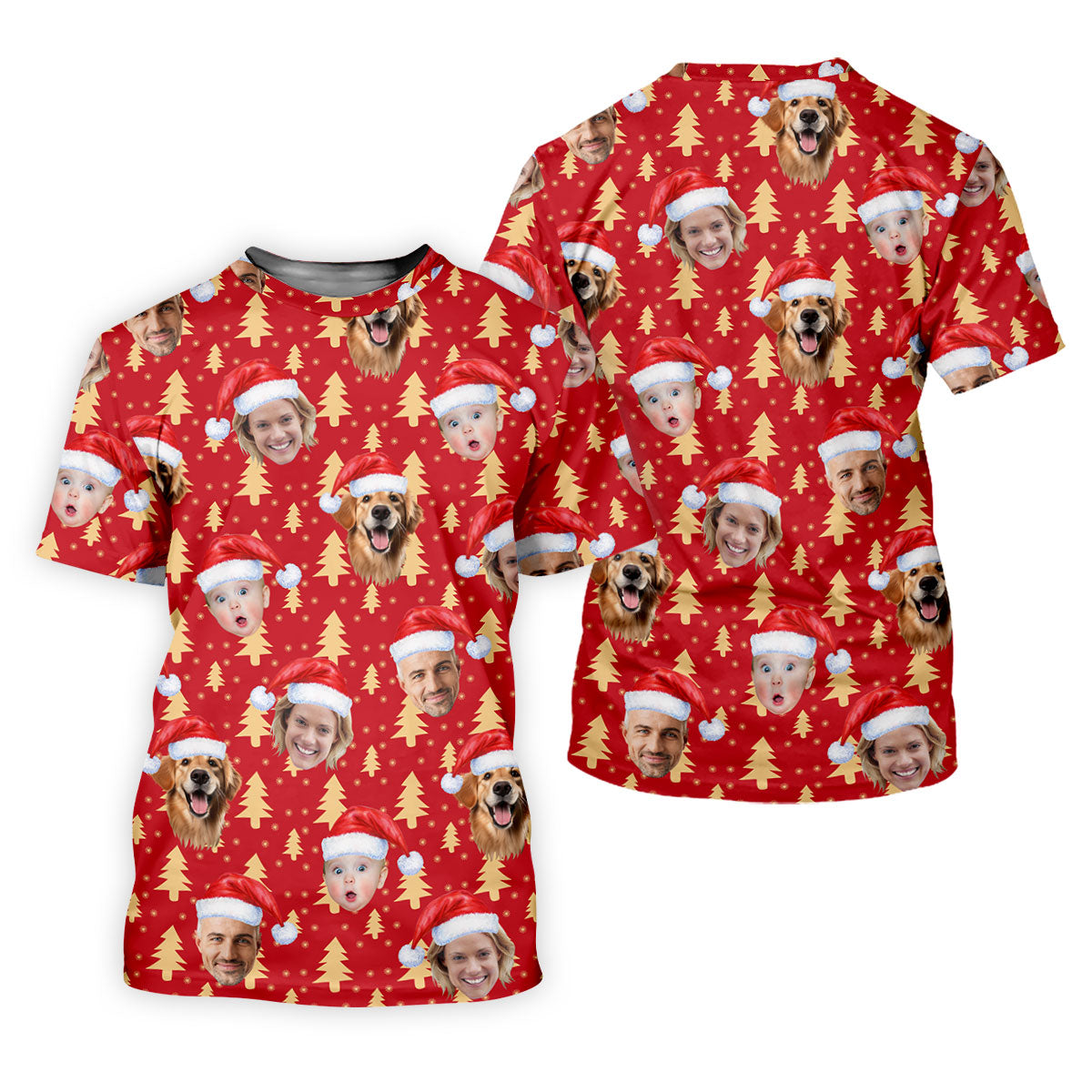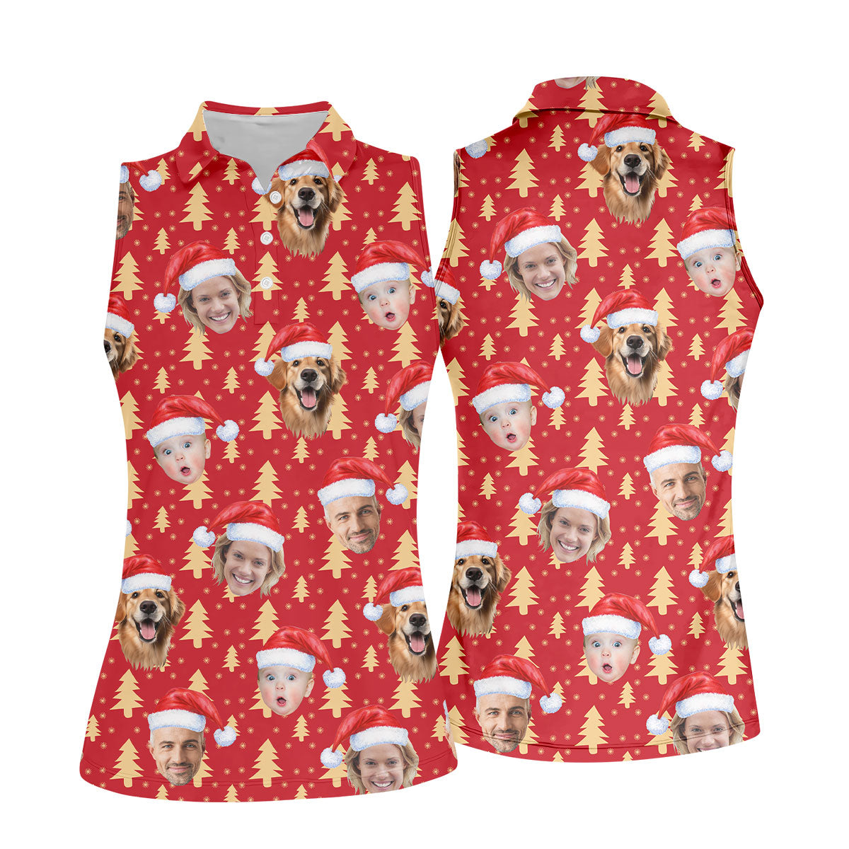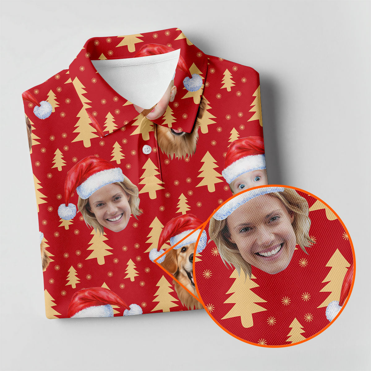 Custom Face Golden Pine Tree Red Golf Shirt, Christmas Golf Shirt, Ladies Golf Shirts, Golf Gifts For Women