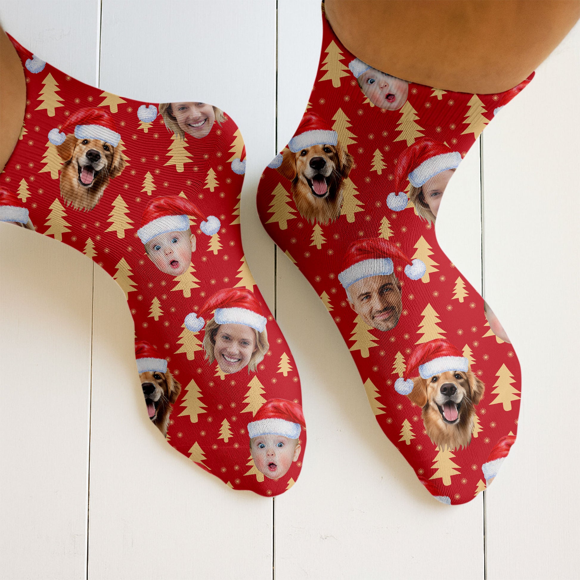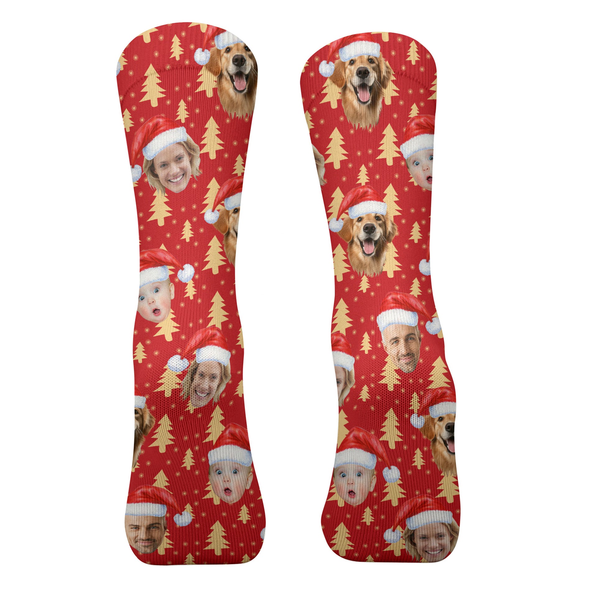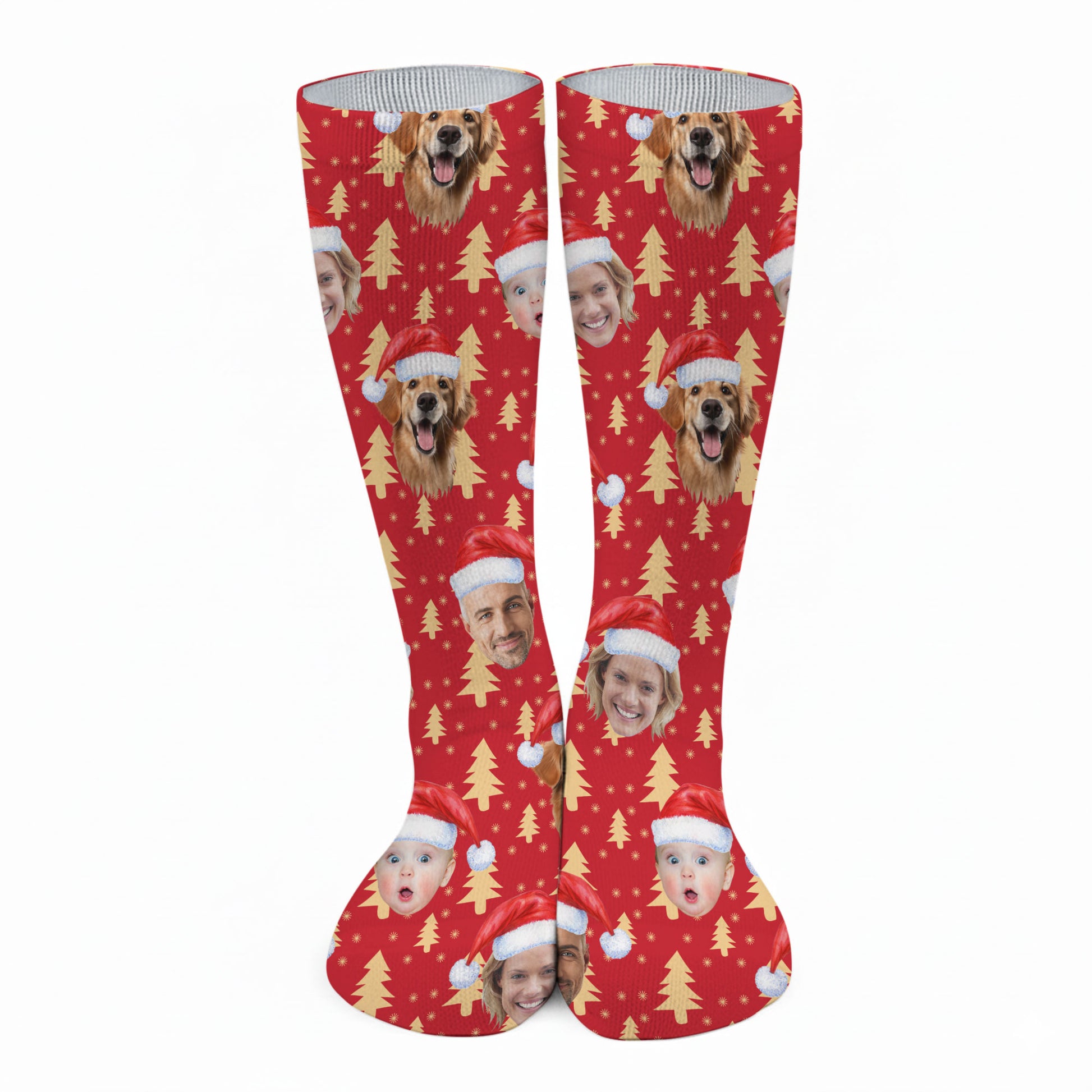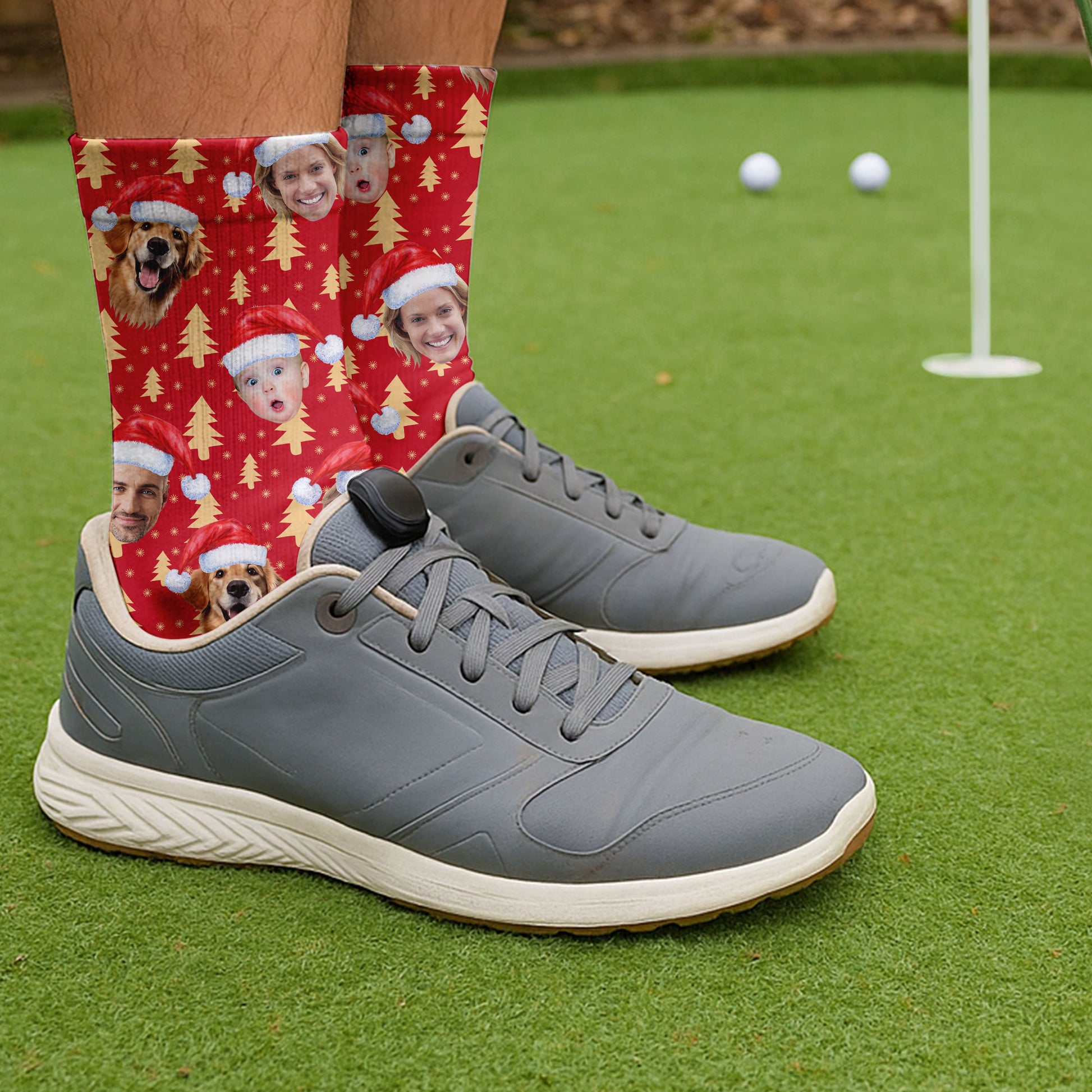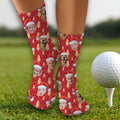 Custom Face Golden Pine Tree Red Golf Socks, Christmas Golf Gift, Custom Golf Accessories