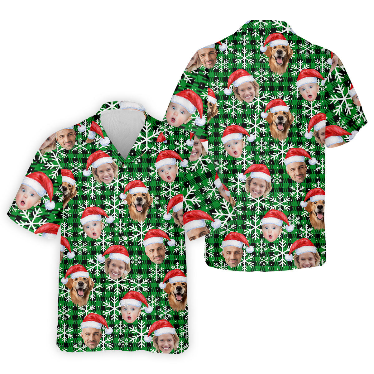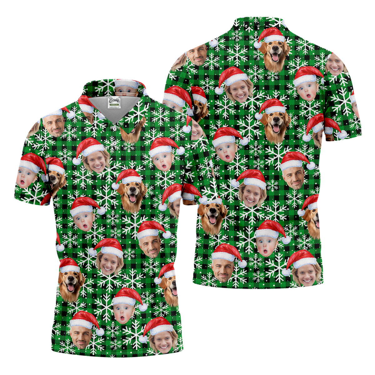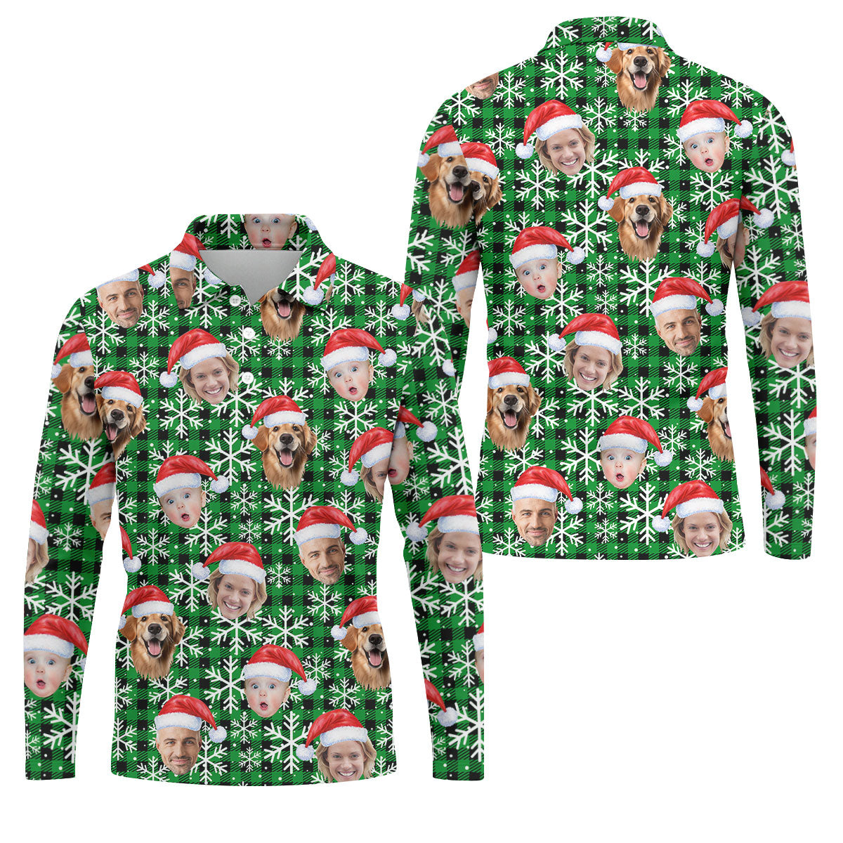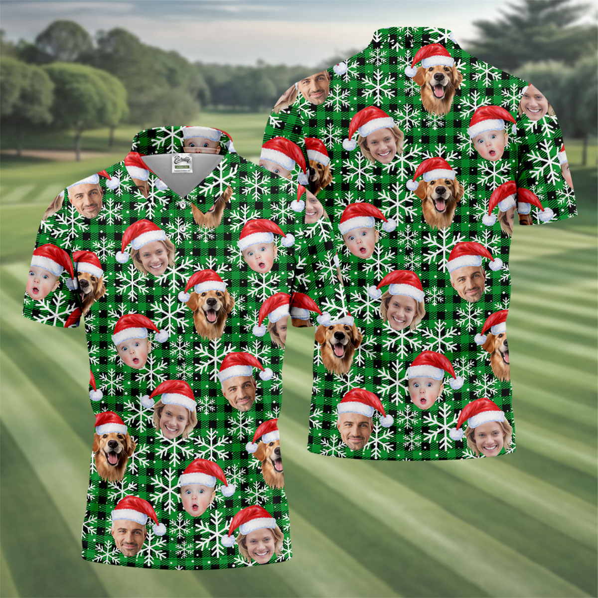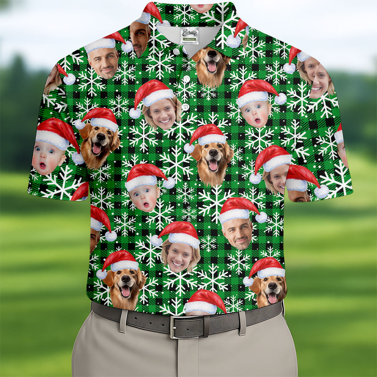 Custom Face Green And Black Checkered Christmas Golf Shirt, Golf Gift For Men, Golf Shirts For Men