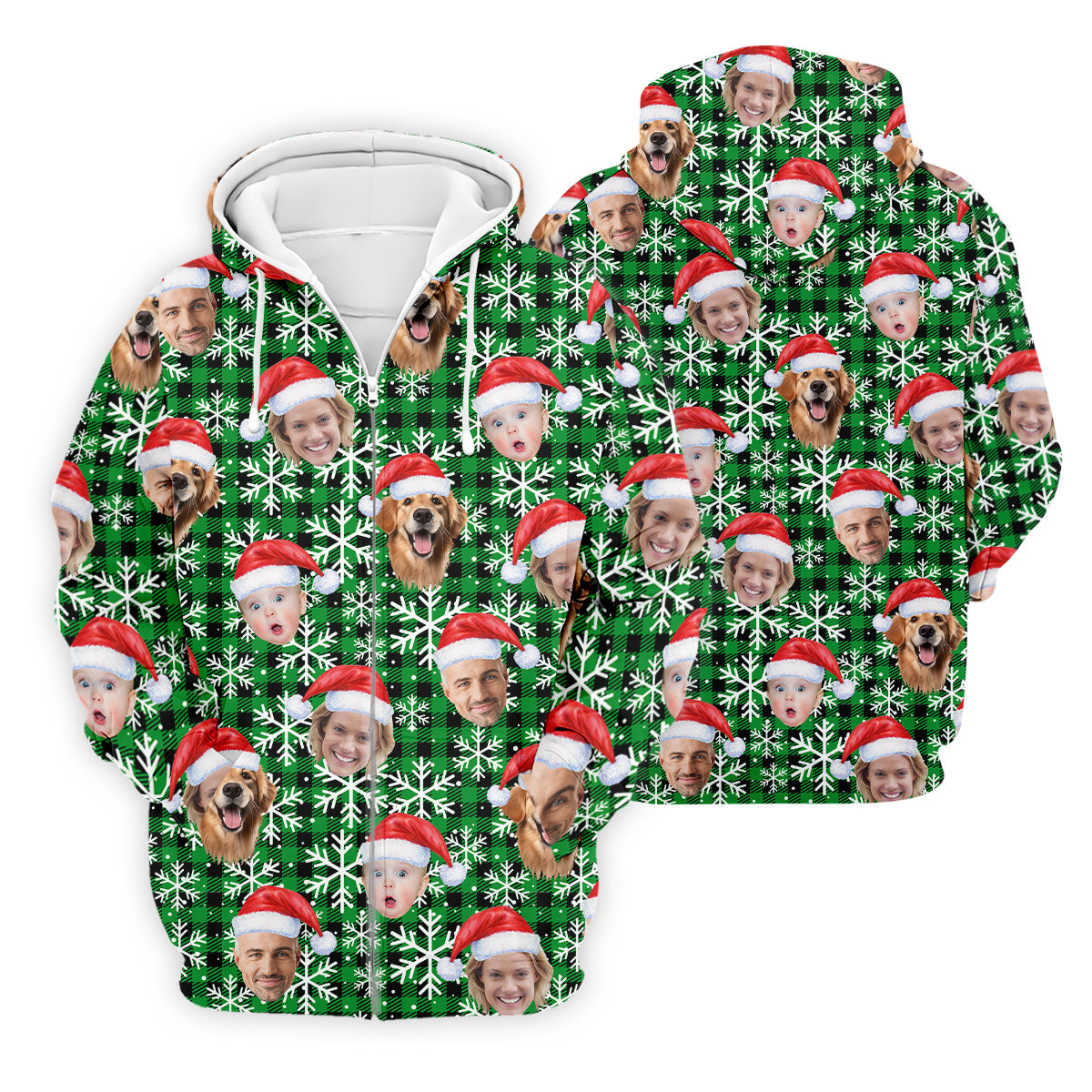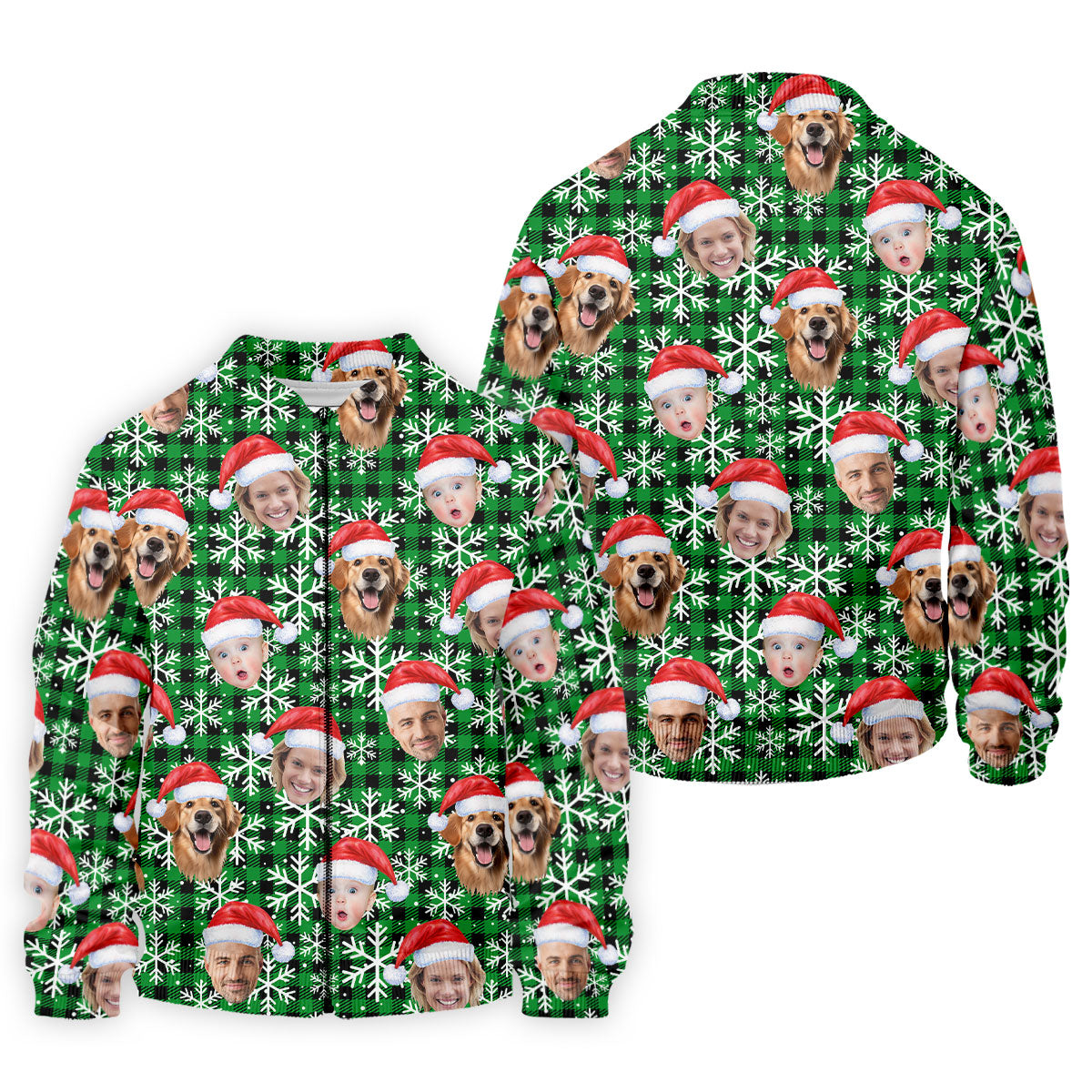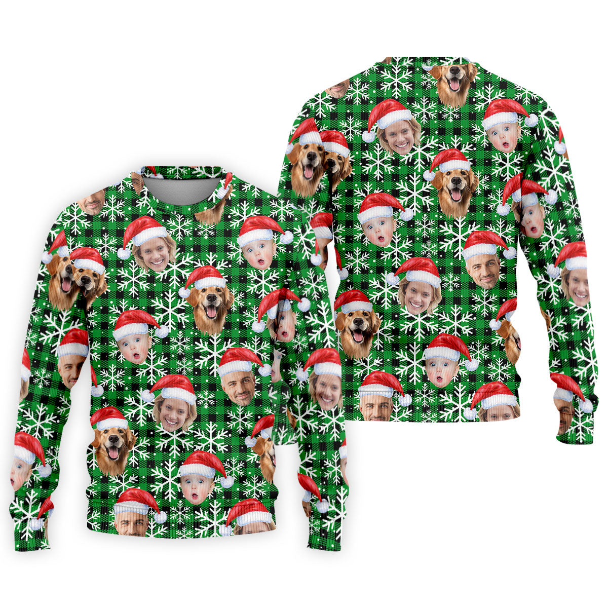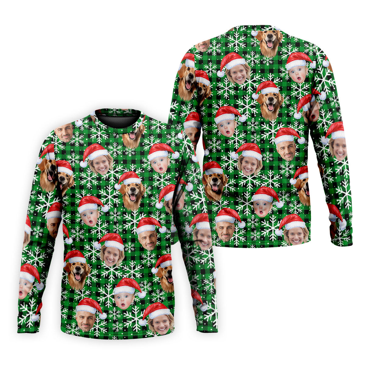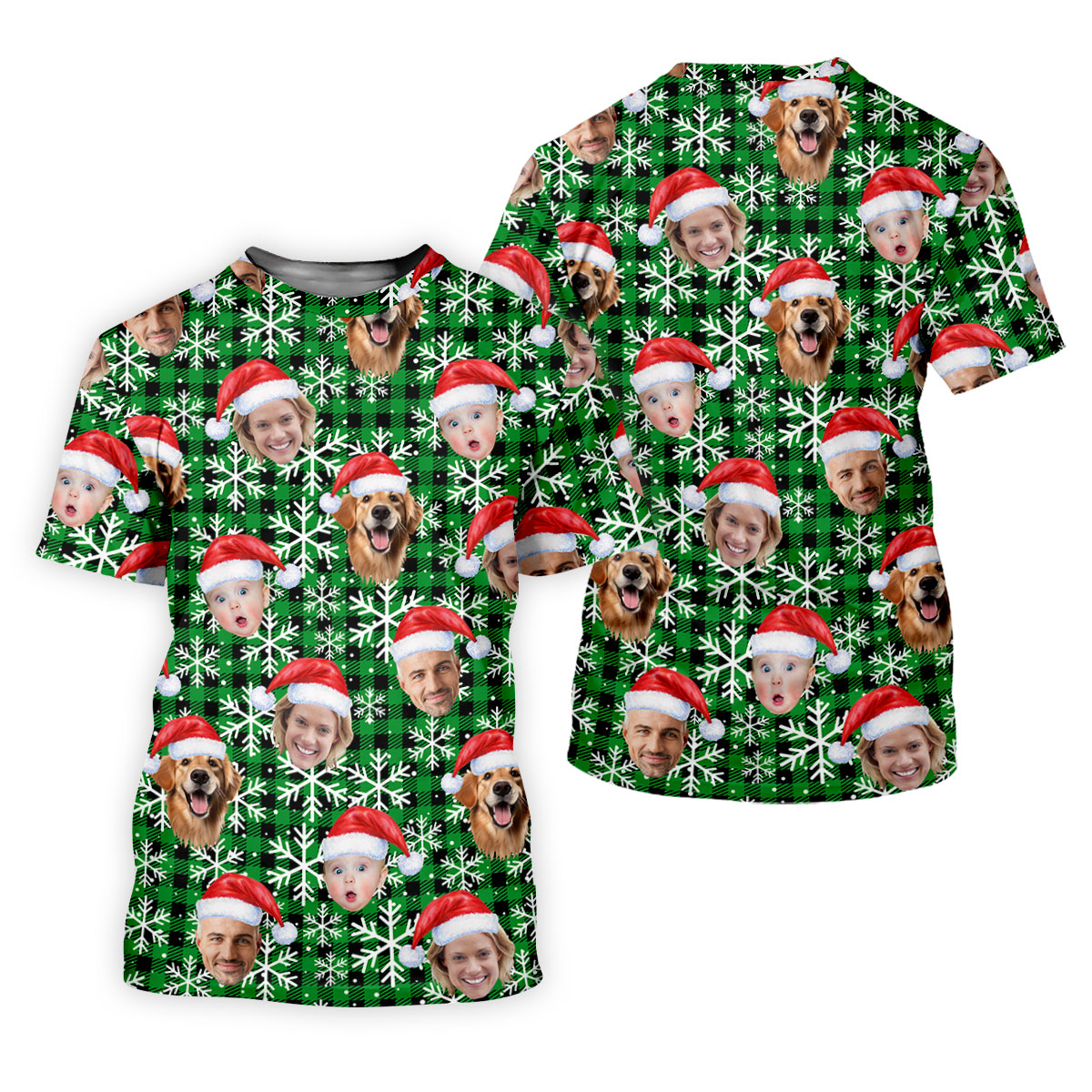 Custom Face Green And Black Checkered Christmas Golf Shirt, Golf Gift For Men, Golf Shirts For Men