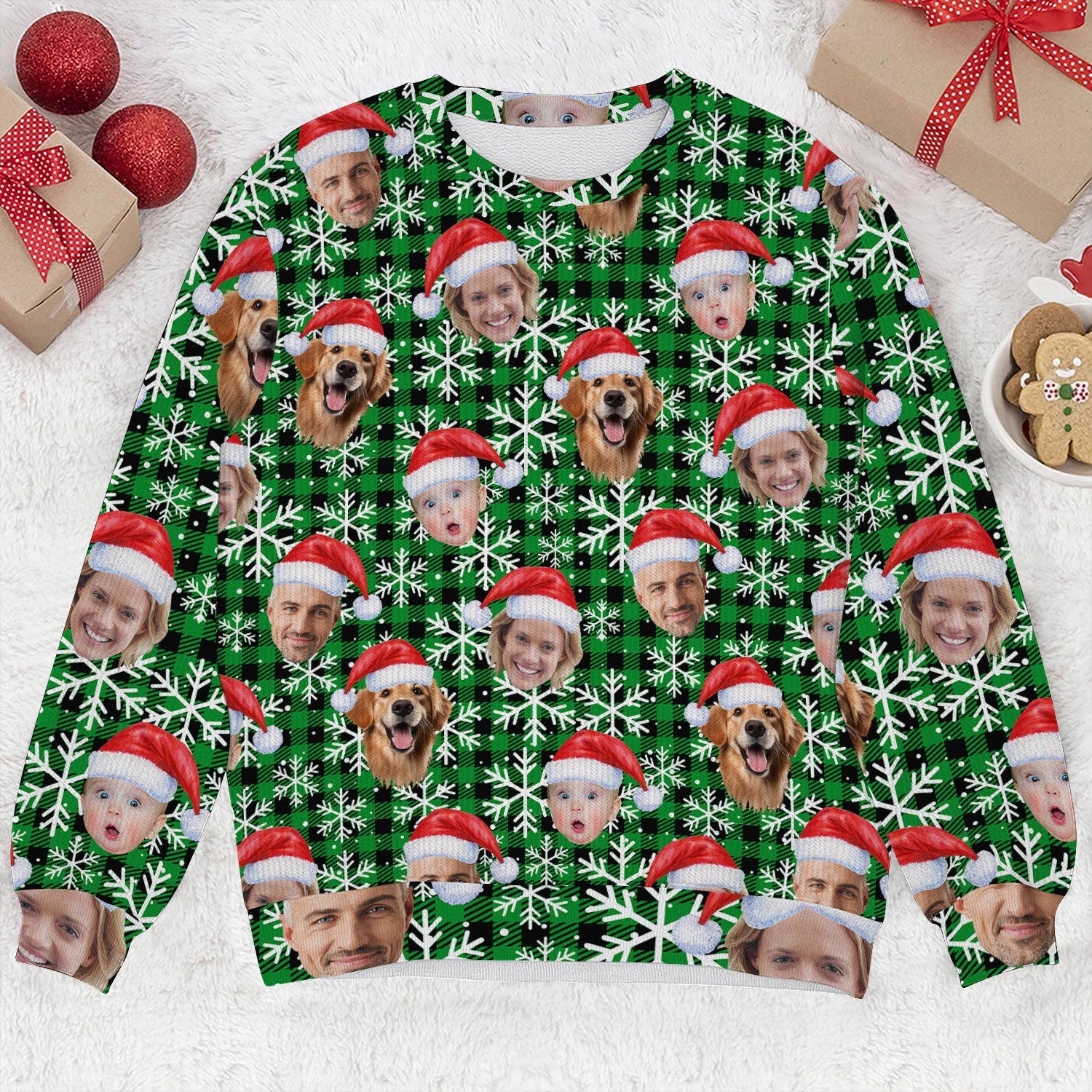 Introducing the Custom Face Green And Black Checkered Golf Ugly Sweater, Christmas Golf Shirt, Golf Sweater, Christmas Golf Gift, where bad shots meet good vibes and Christmas spirit takes a full swing.