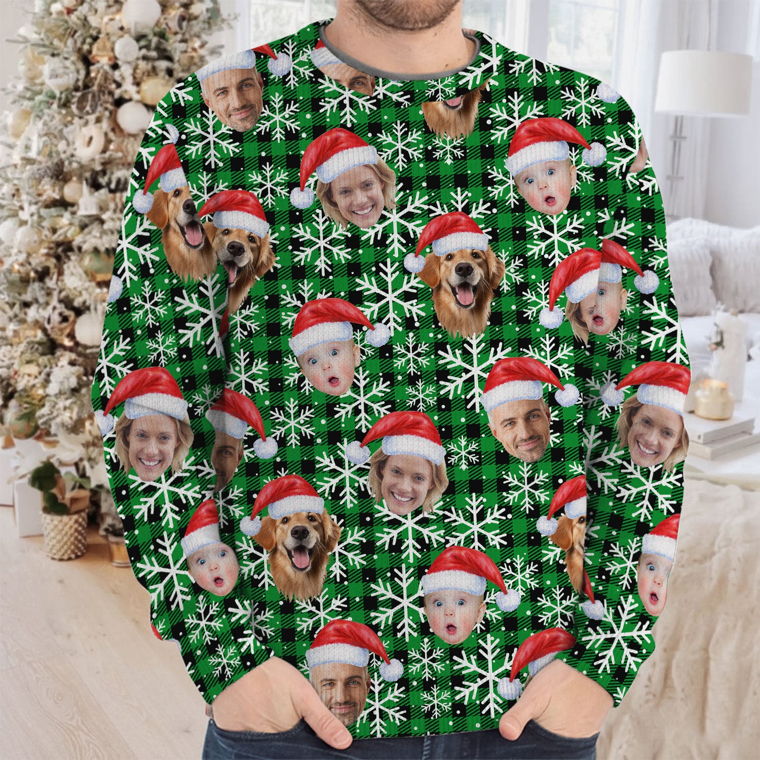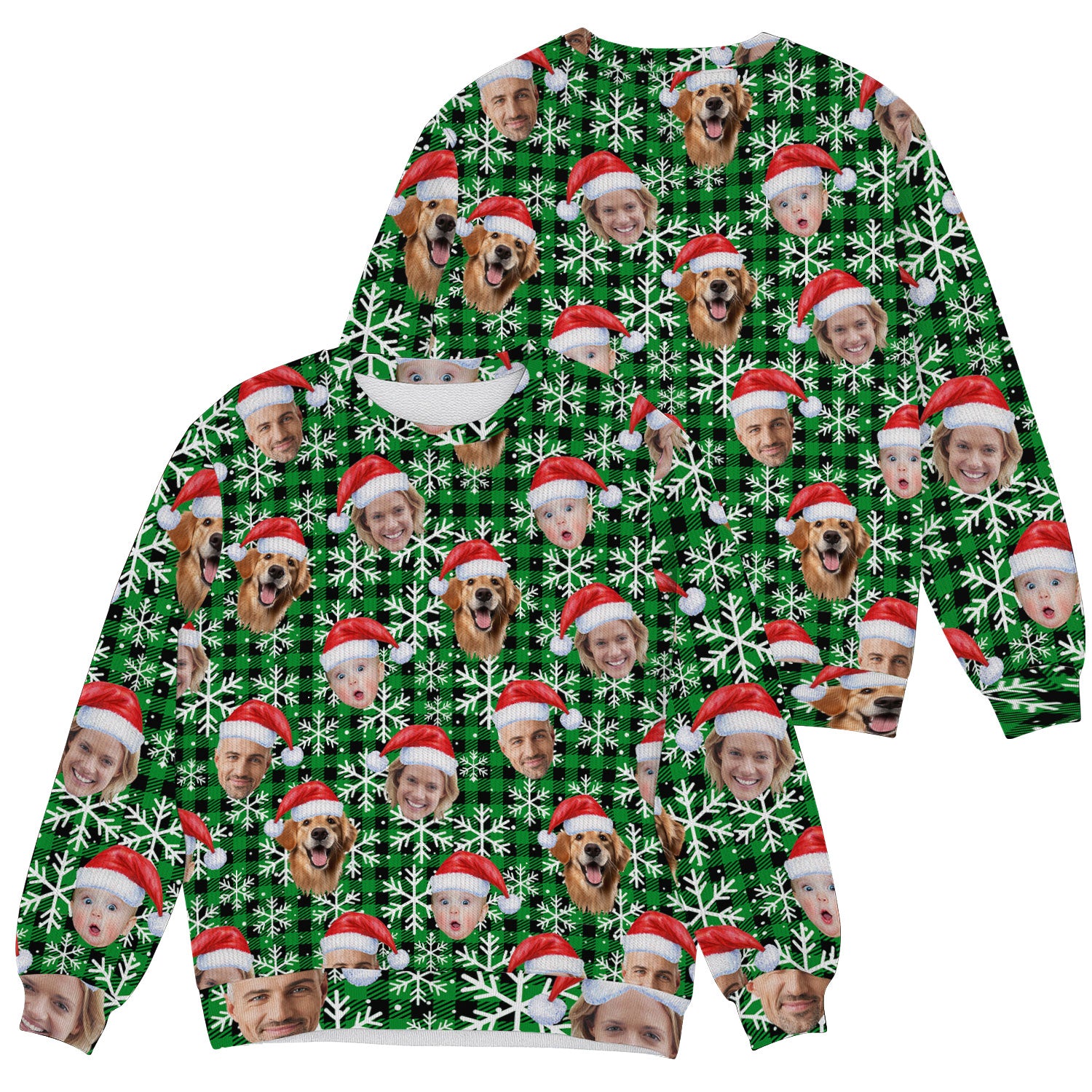 Custom Face Green And Black Checkered Golf Ugly Sweater, Christmas Golf Shirt, Golf Sweater, Christmas Golf Gift
