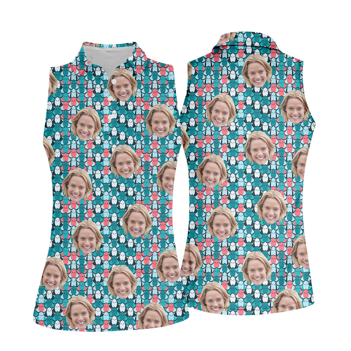 Custom Face Green And Pink Fun Women Golf Shirt, Ladies Sleeveless Polo, Golfing Apparel