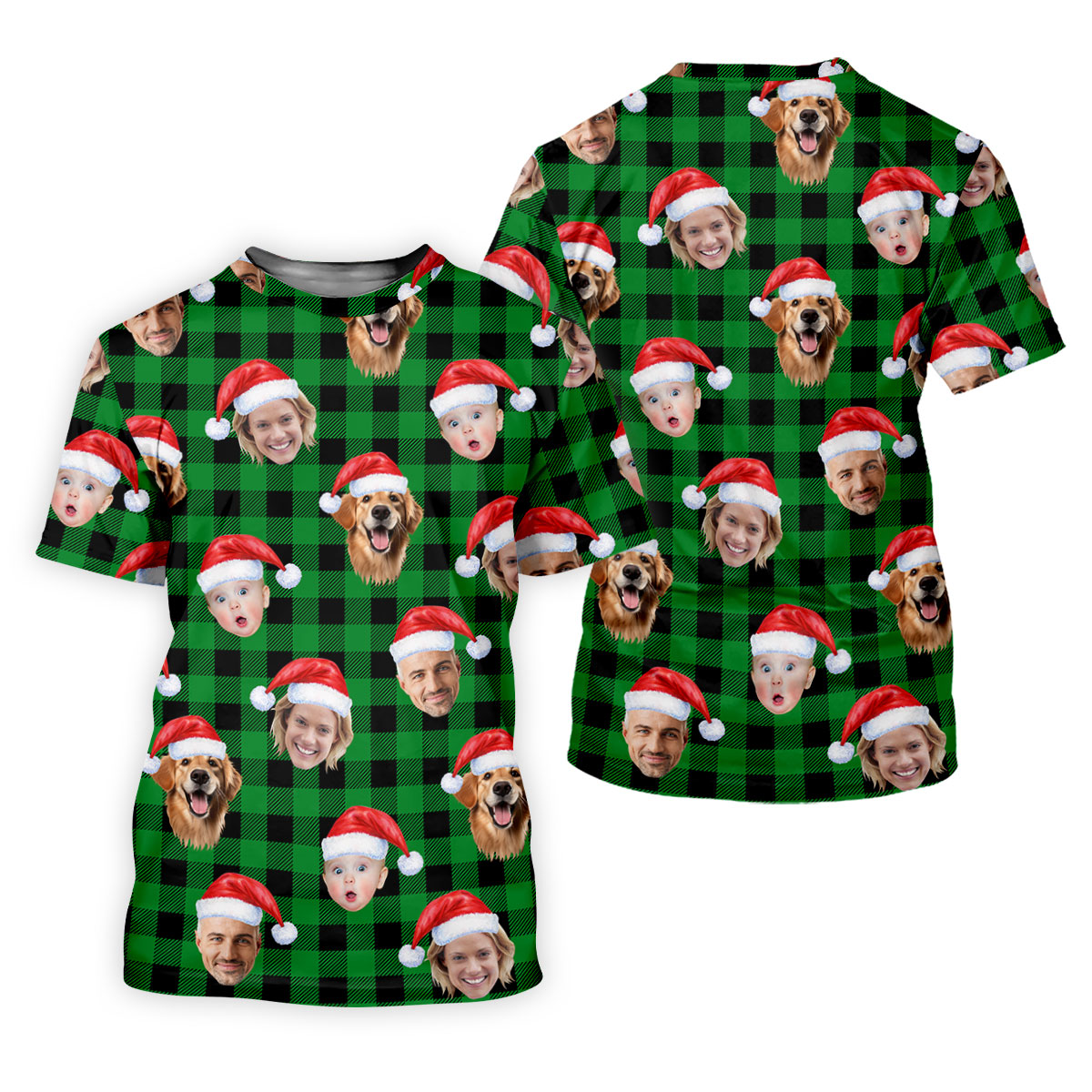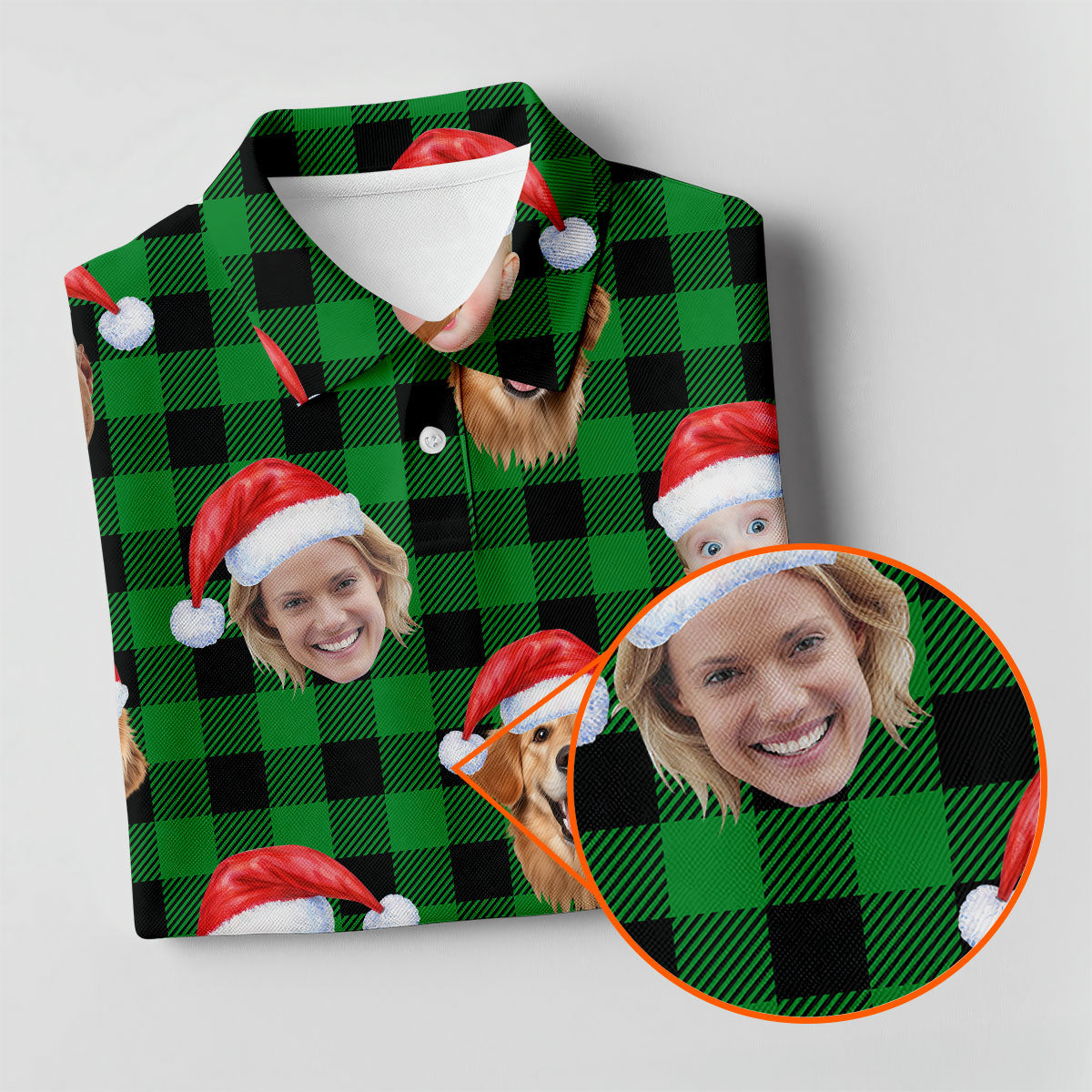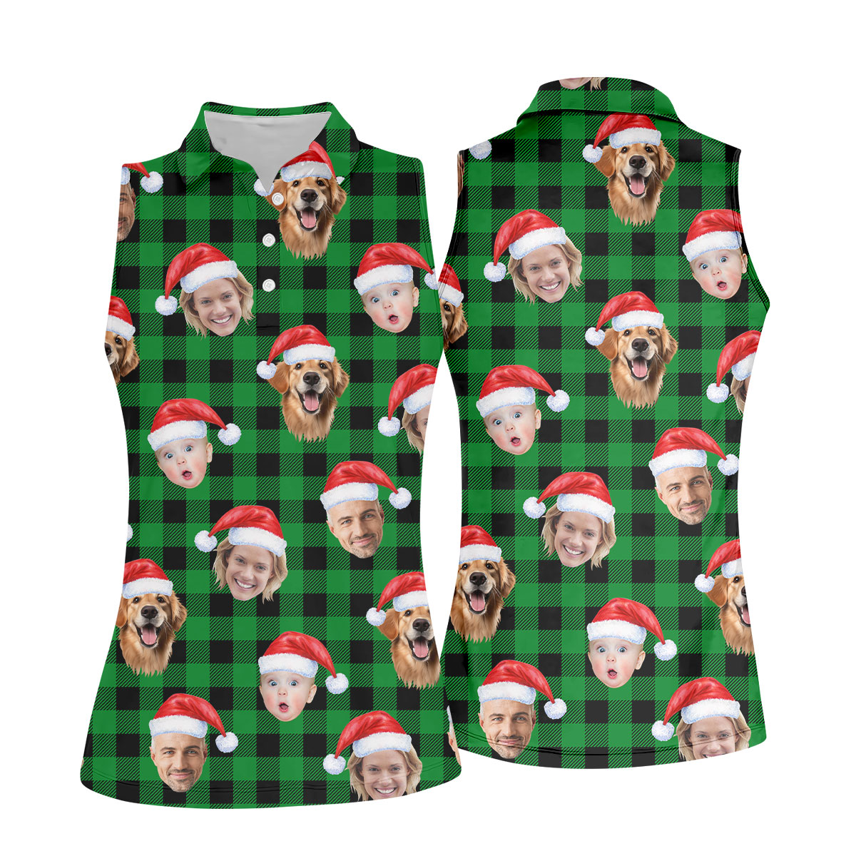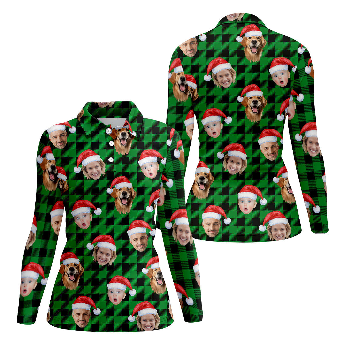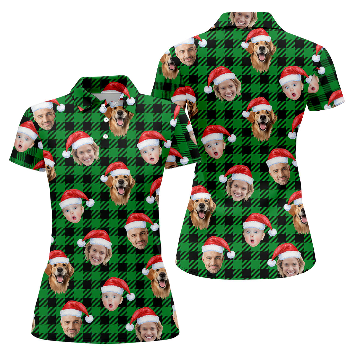 Custom Face Green Buffalo Plaid Christmas Golf Shirt, Ladies Golf Tops, Golf Gifts For Women