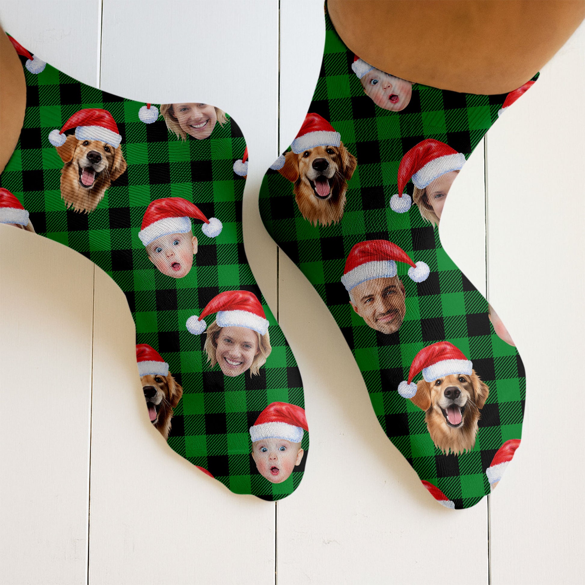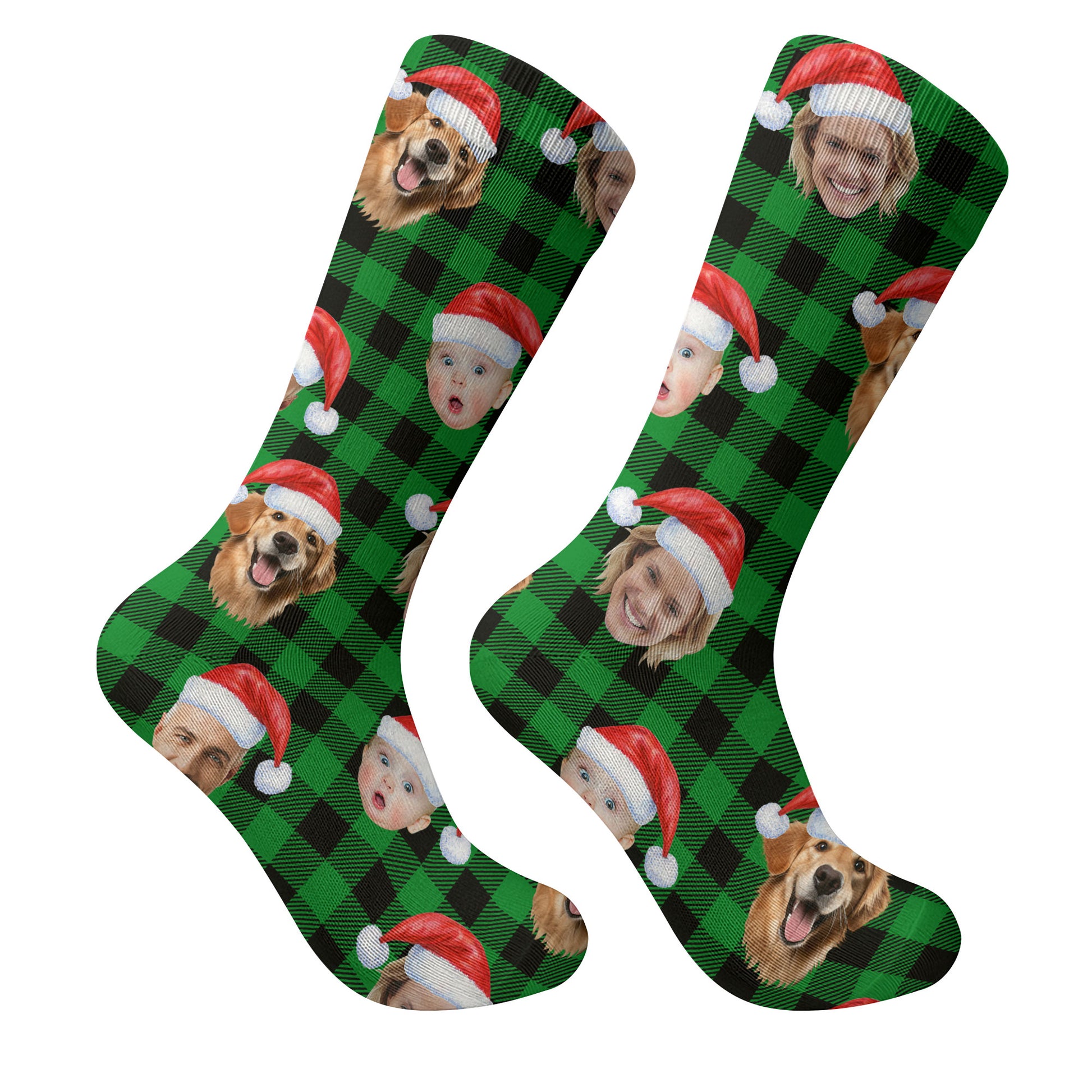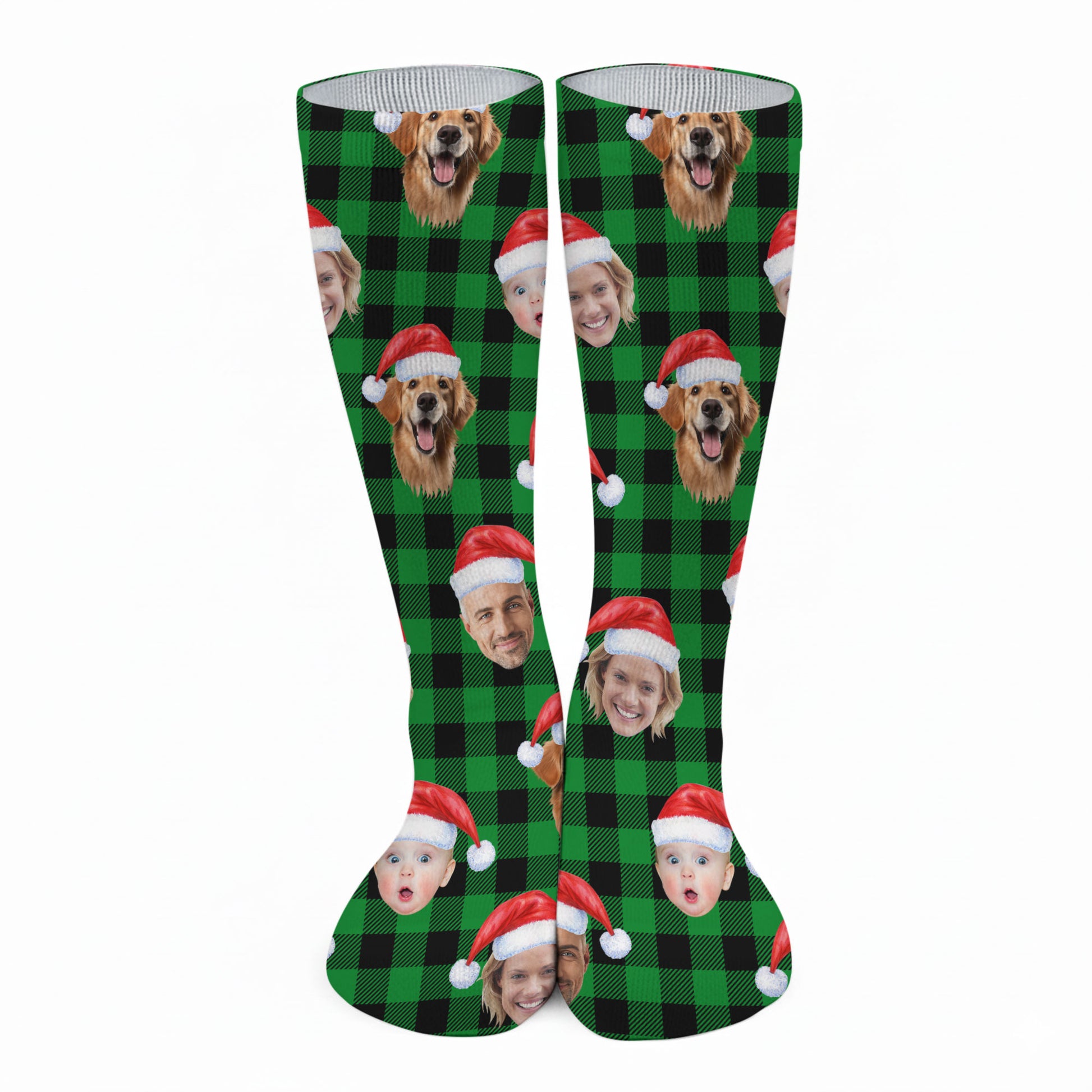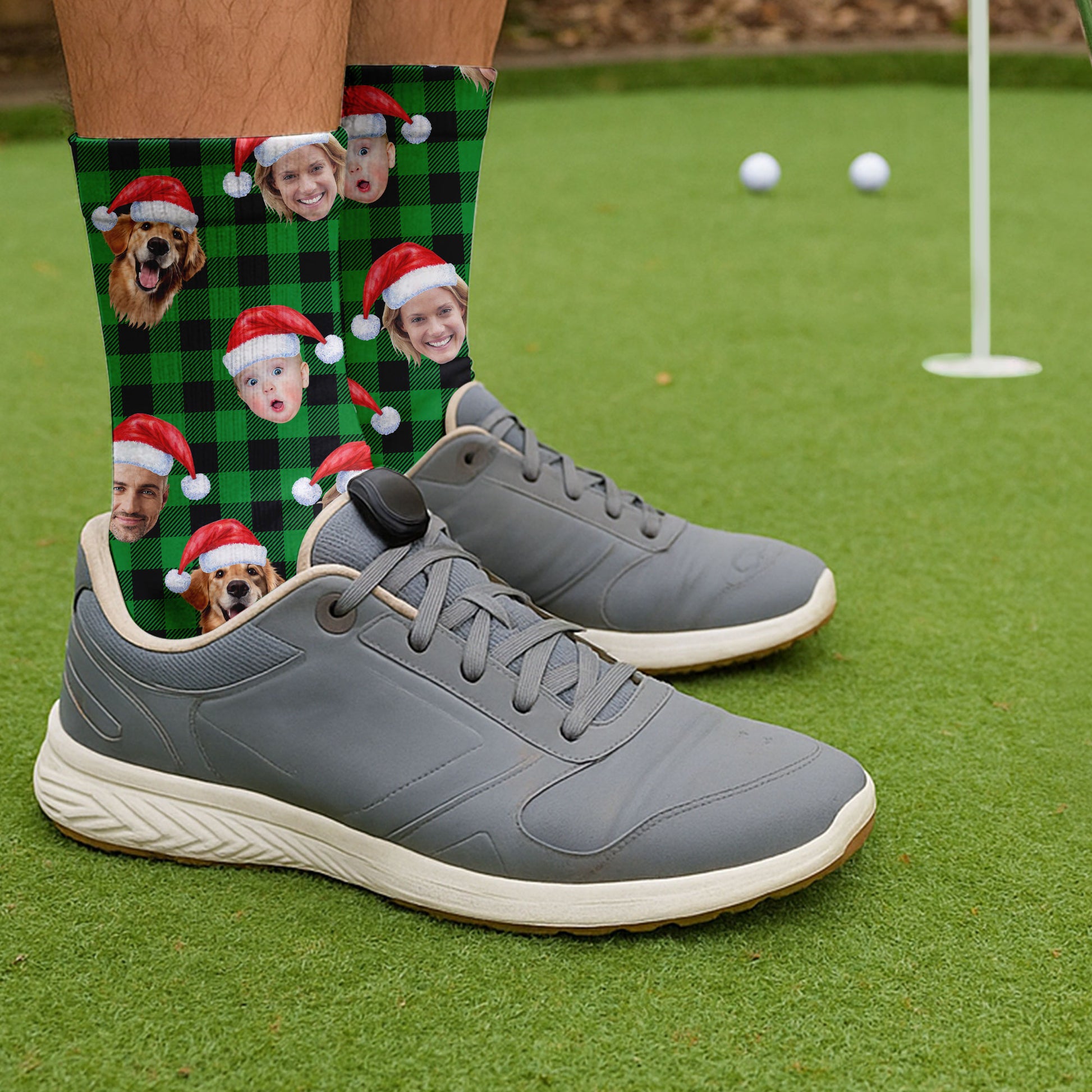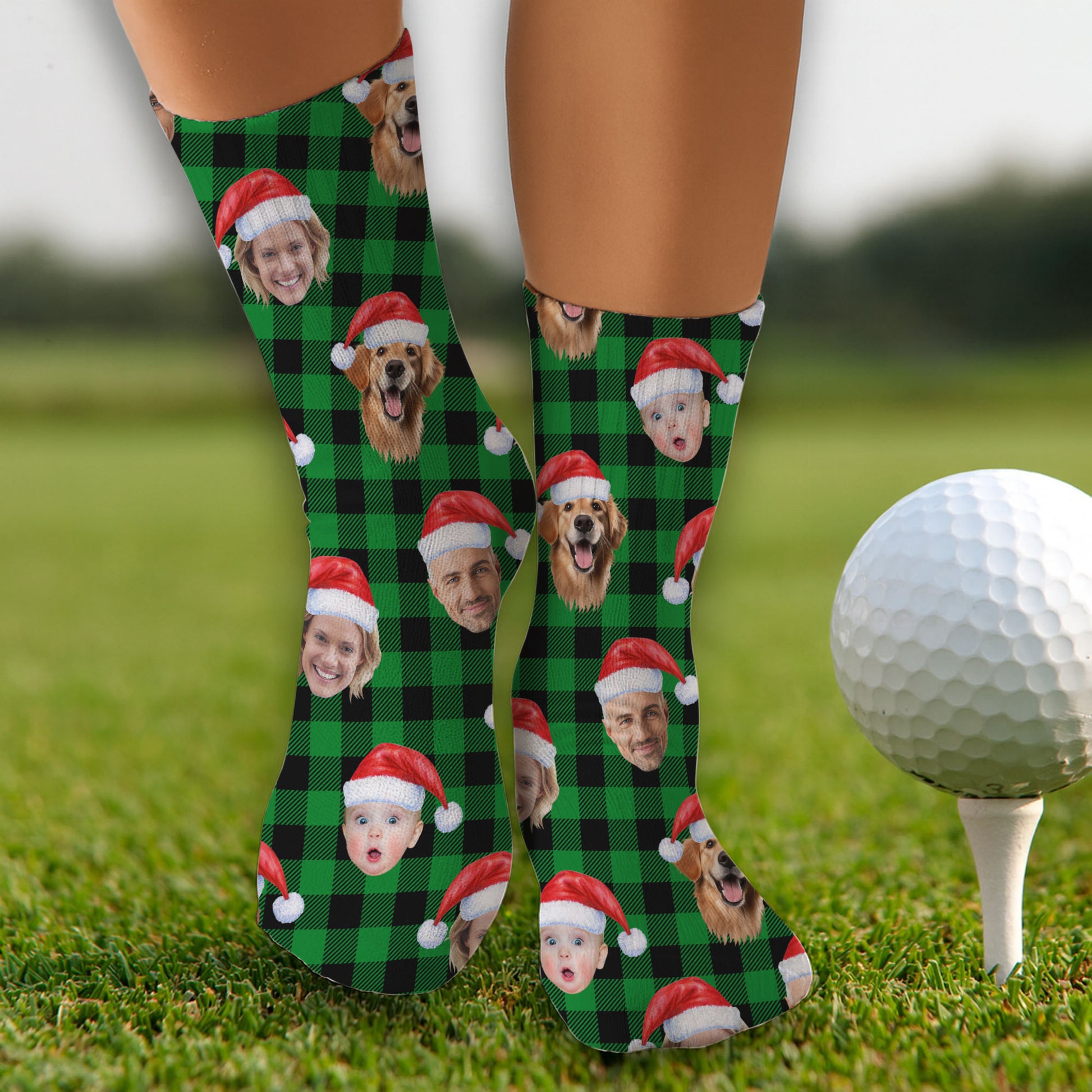 Custom Face Green Buffalo Plaid Golf Socks, Christmas Golf Gift, Custom Golf Accessories