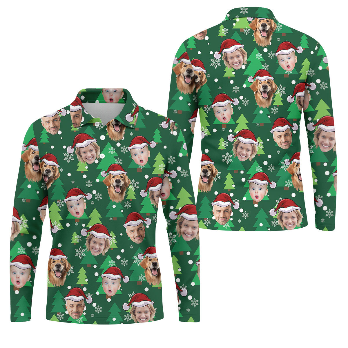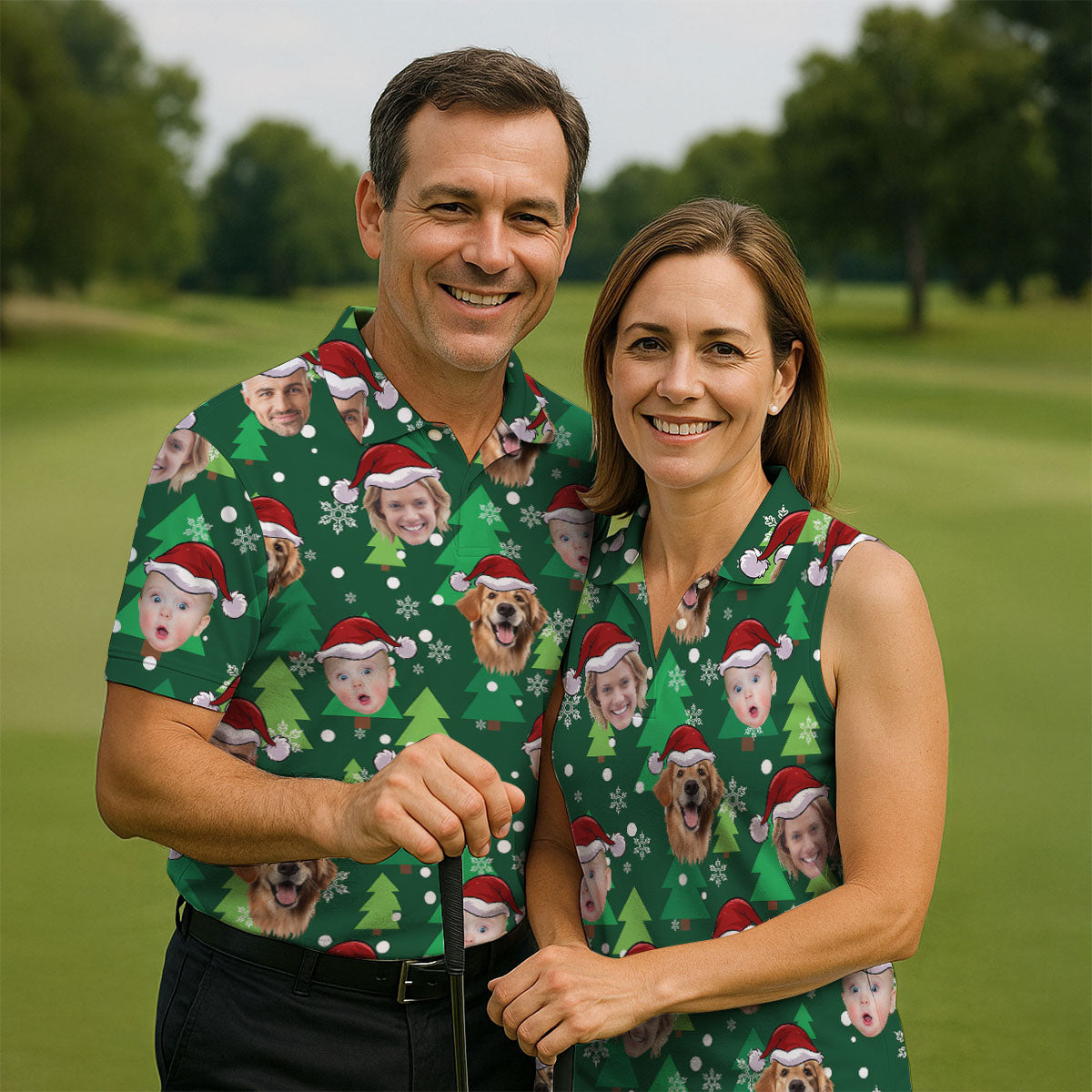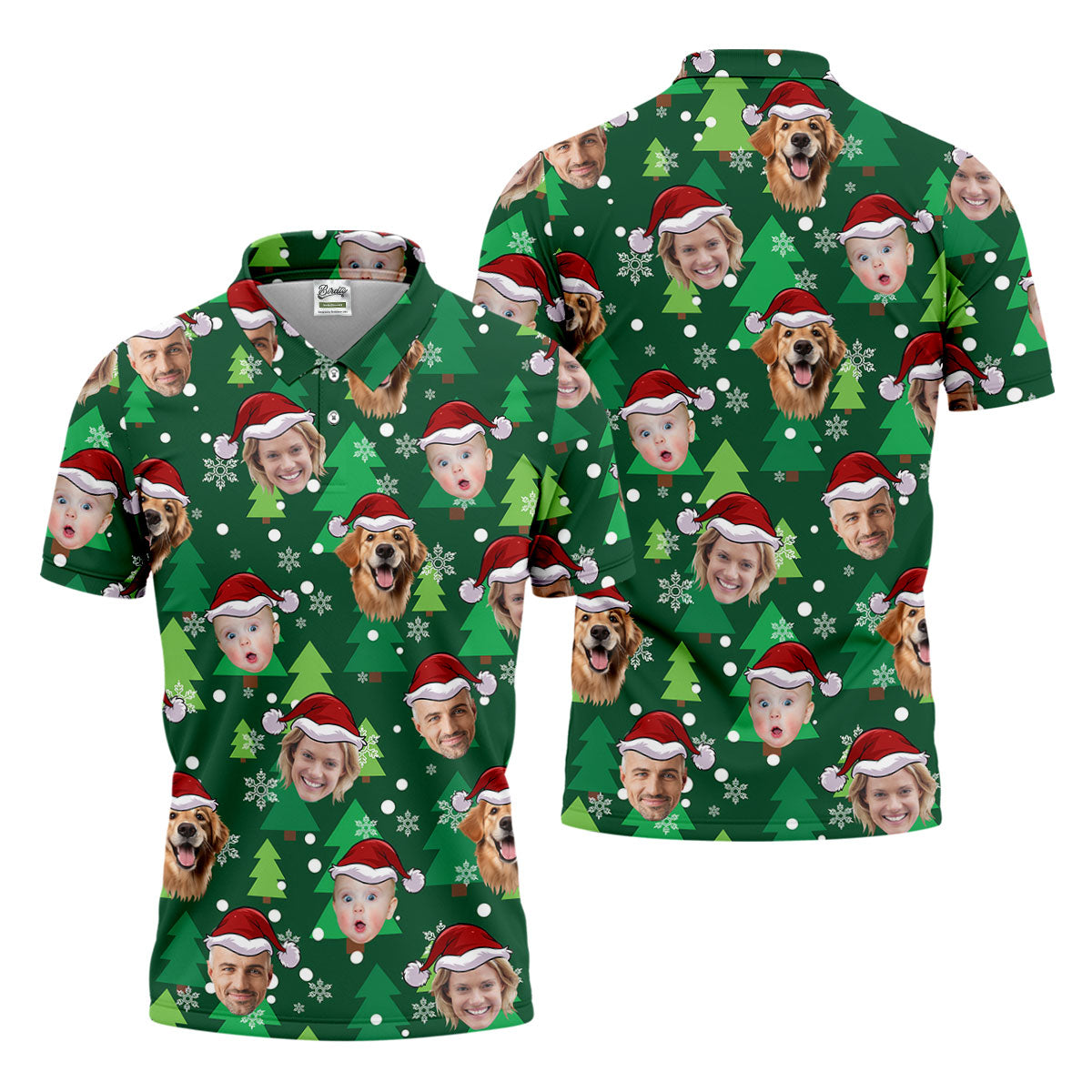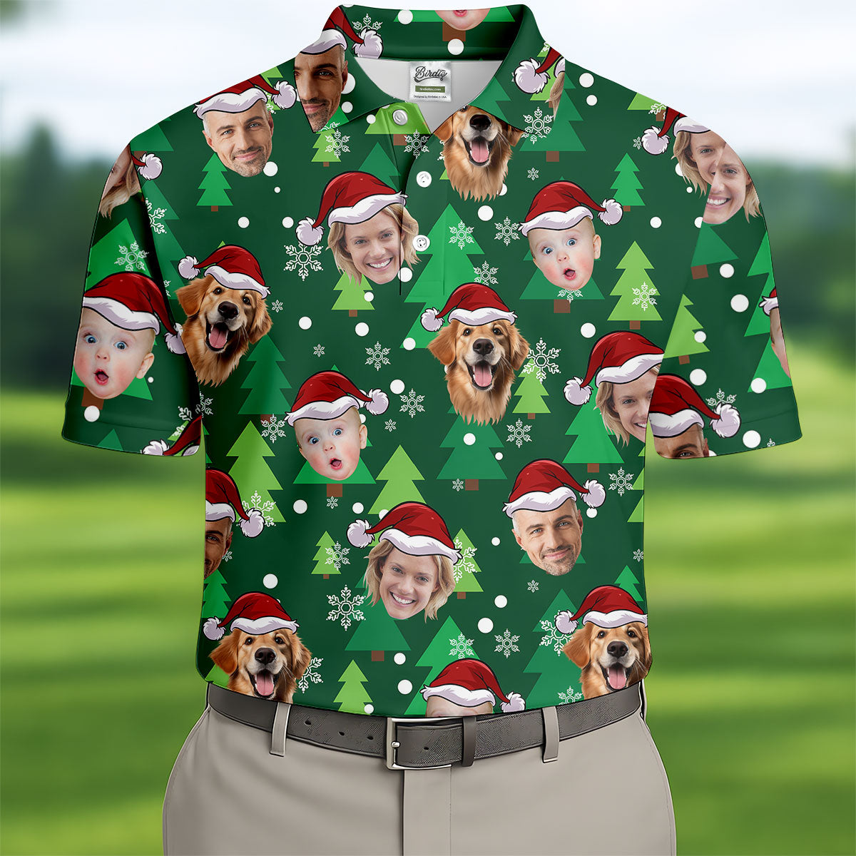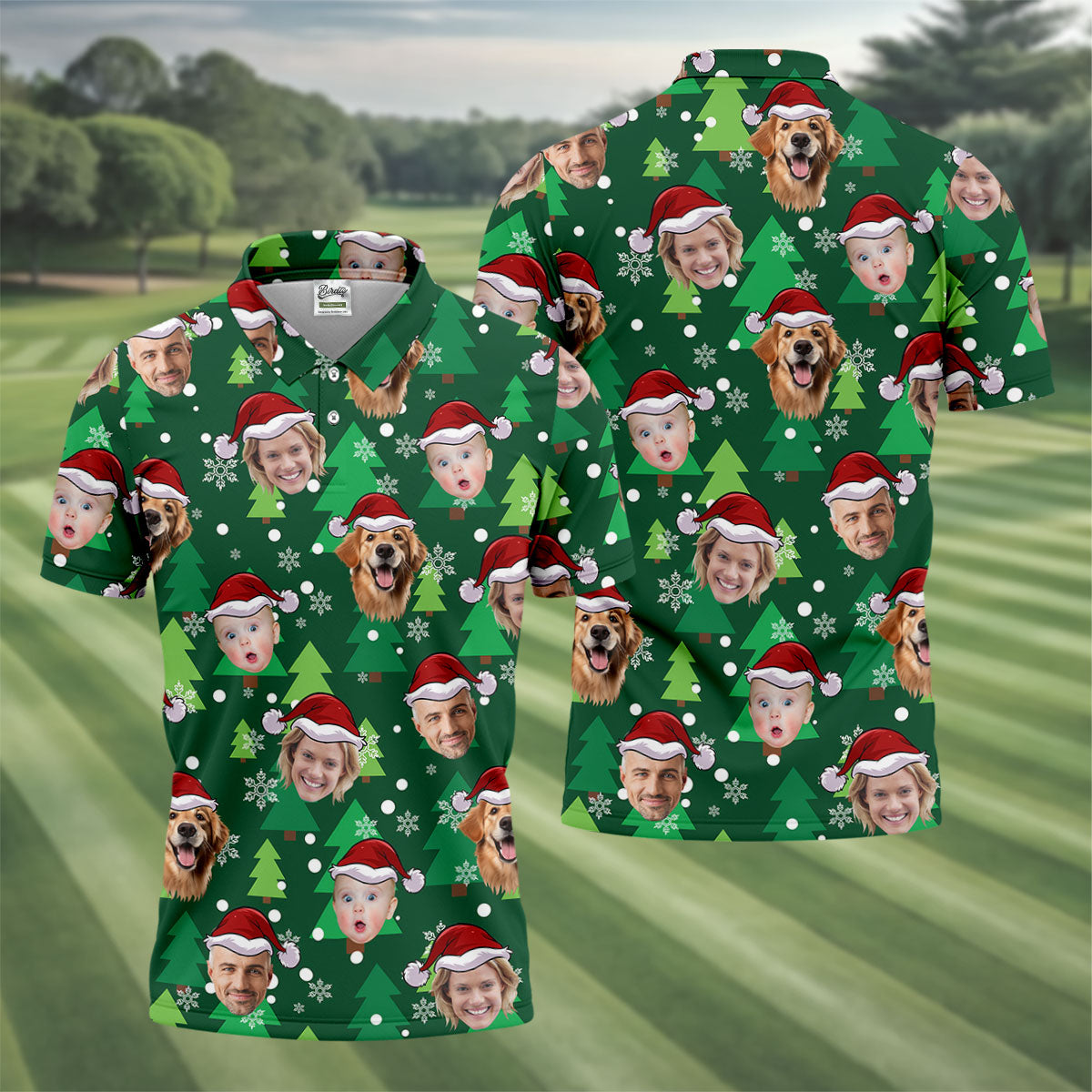 Custom Face Green Christmas Golf Tops For Men, Polo Shirts For Men, Christmas Golf Gift