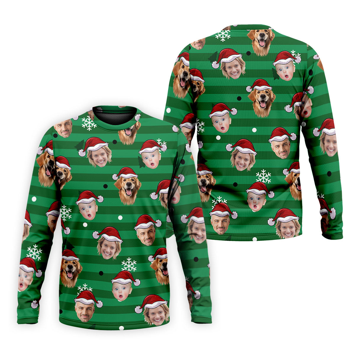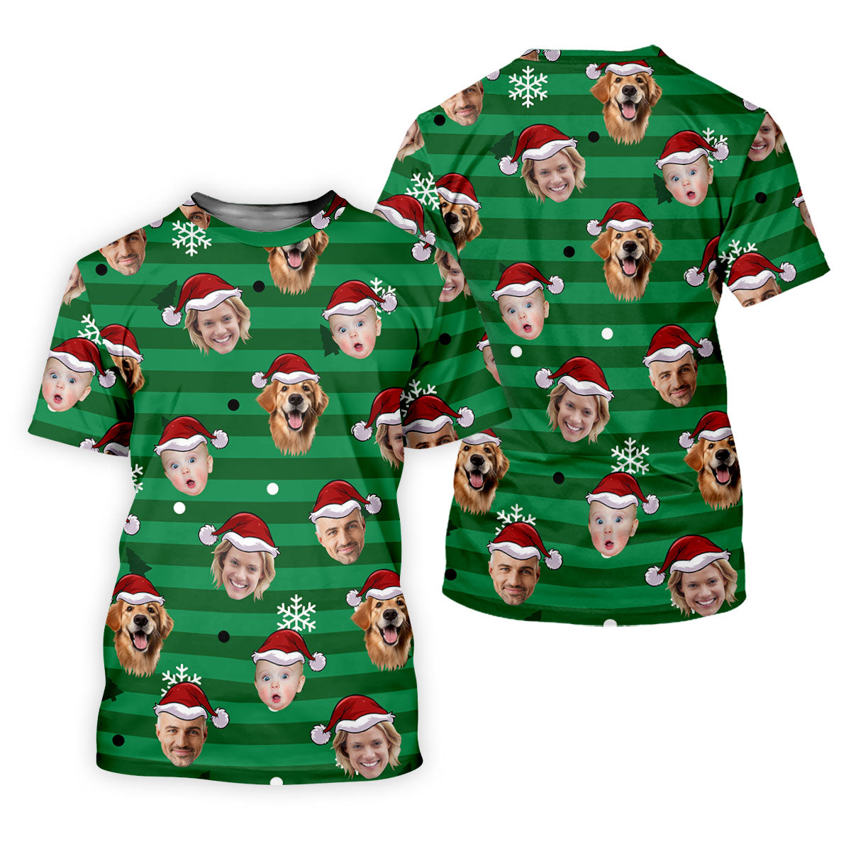 Meet the Custom Face Green Stripe Christmas Golf Shirt, Golf Tops For Men, Polo Shirts For Men, Christmas Golf Gift – a shirt so bold it makes argyle cry in the corner. Designed for golfers who'd rather make a fashion statement than follow dress codes, this polo is your ticket to turning heads, raising eyebrows, and maybe distracting your buddies just enough to win a few holes. (We’re not saying it’s cheating... we’re saying it’s strategy.)