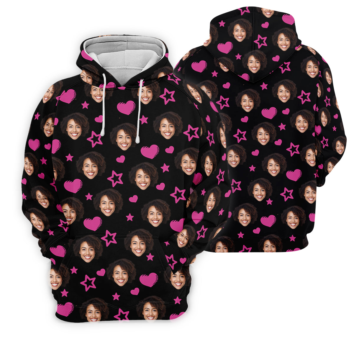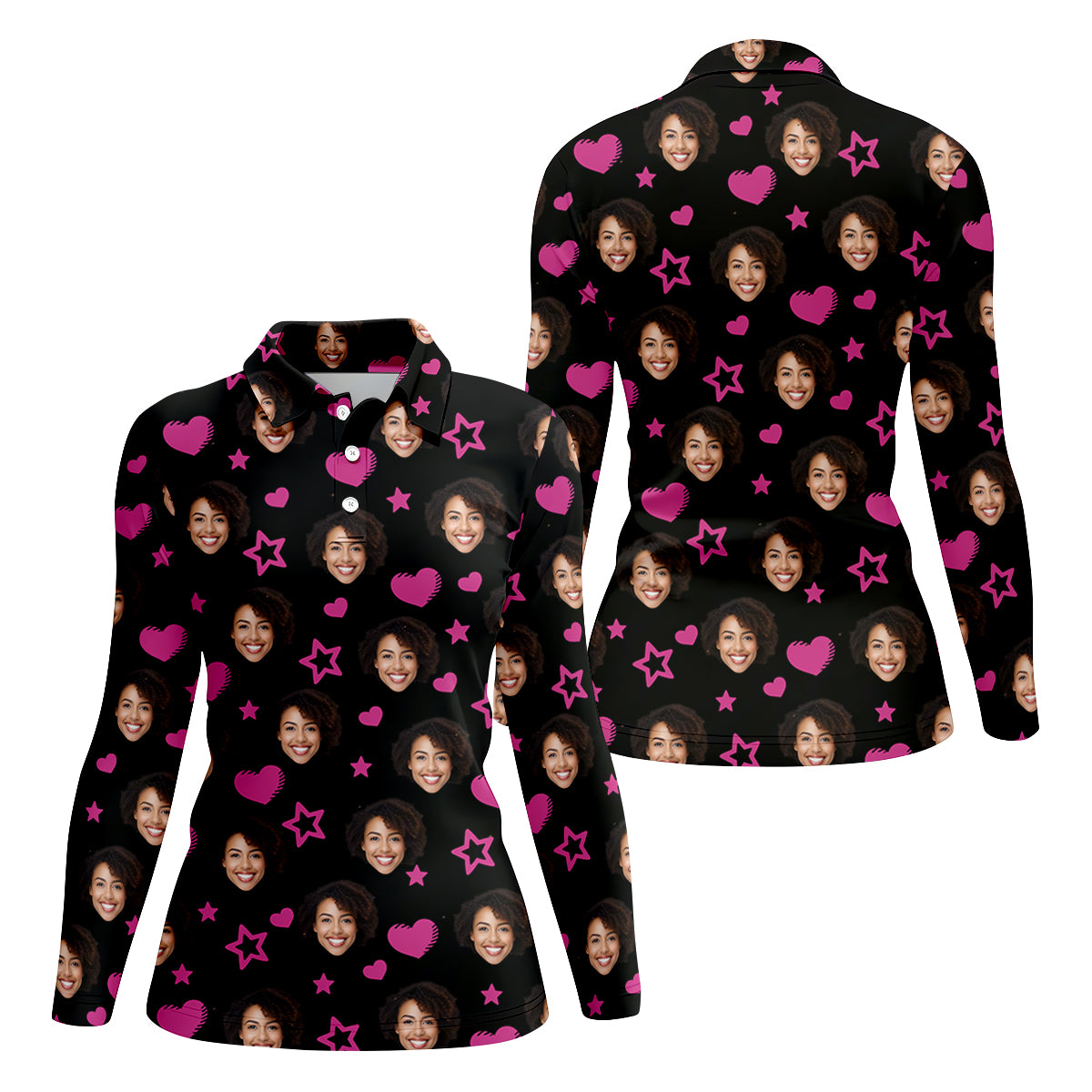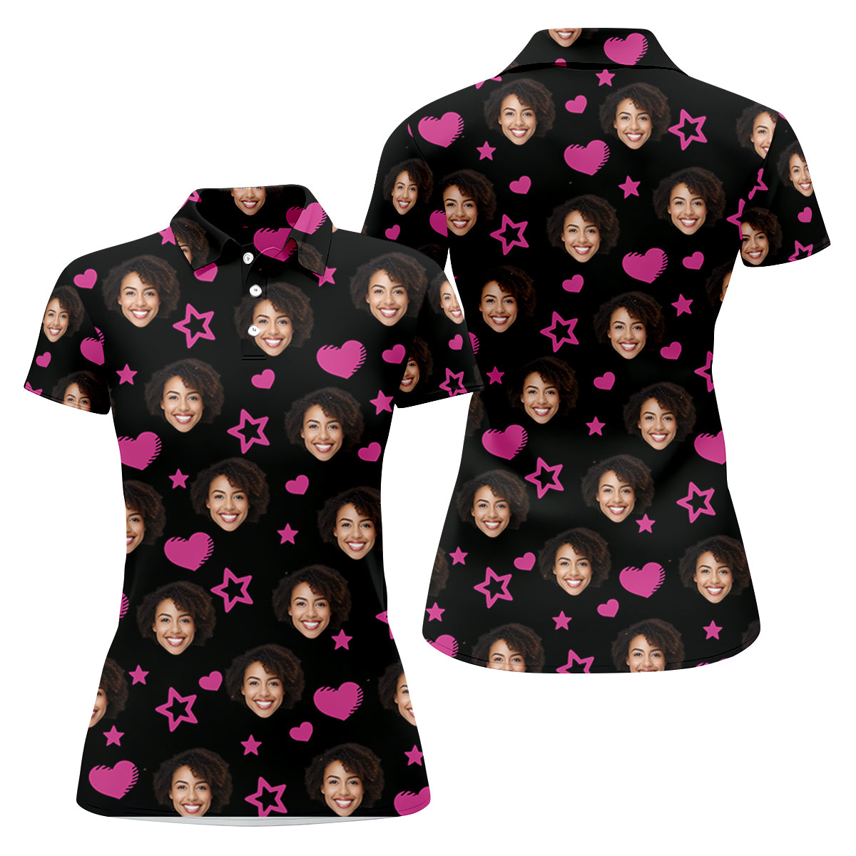 Custom Face Heart And Star Black Golf Shirt, Valentines Golf Gift, Golf Shirt For Women, Ladies Golf Polos