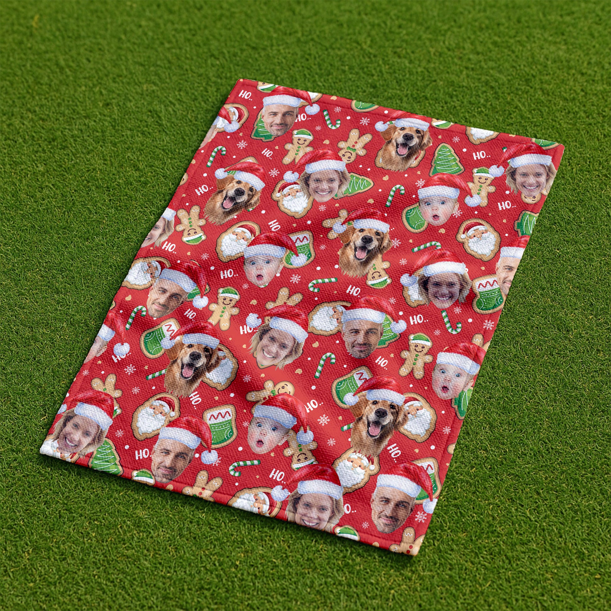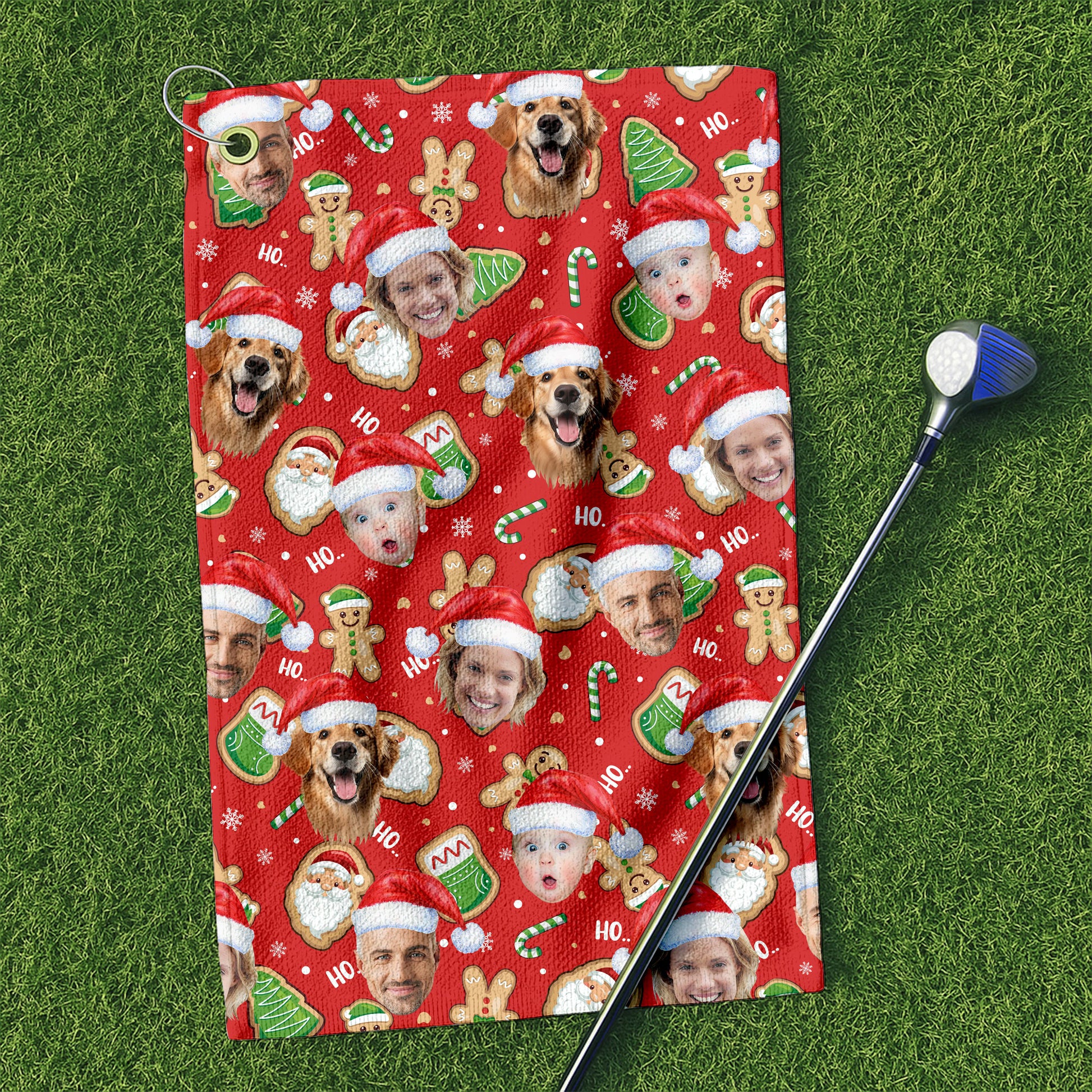 Custom Face Ho... Gingerbread Pattern Red Golf Towel, Christmas Golf Gift, Golf Gift Idea