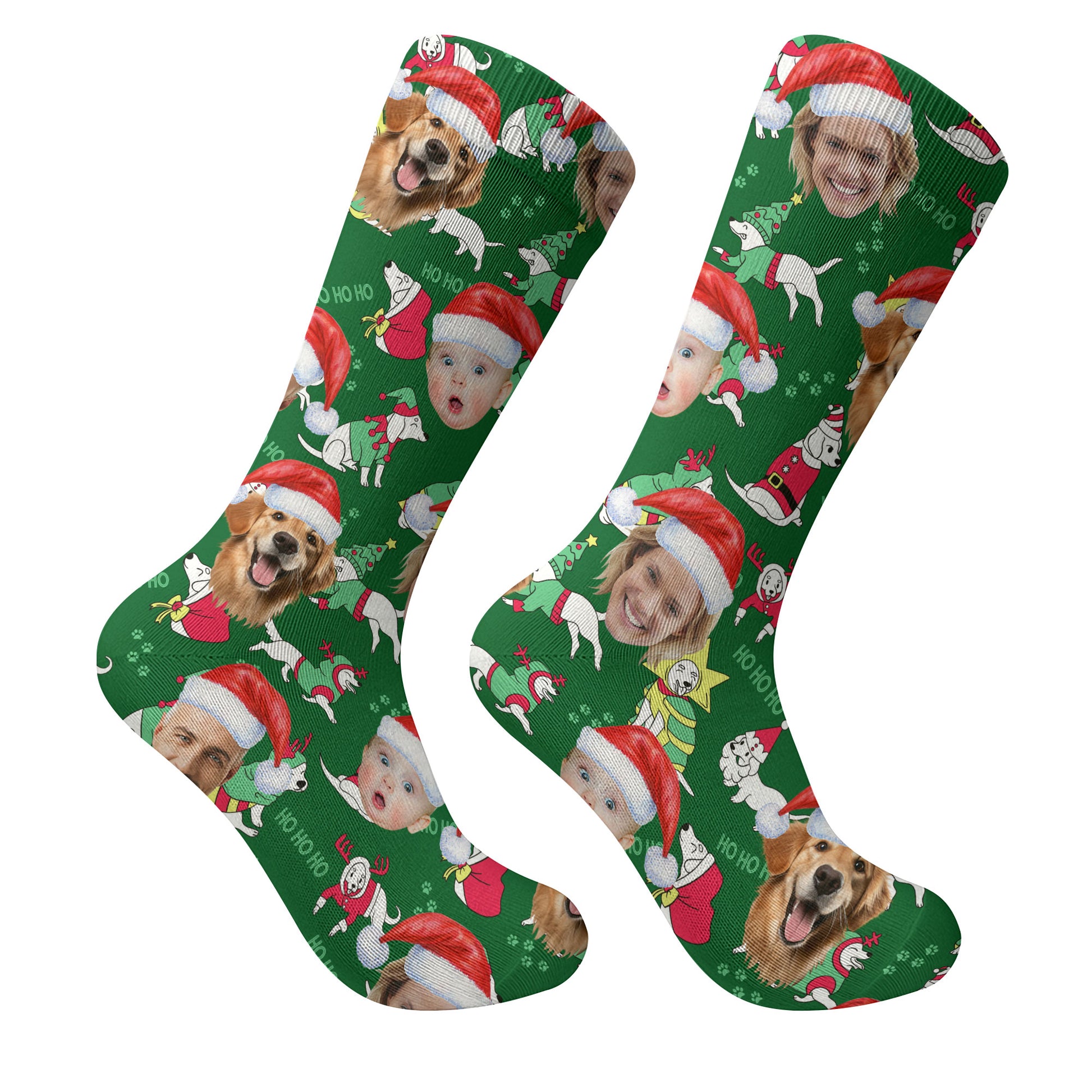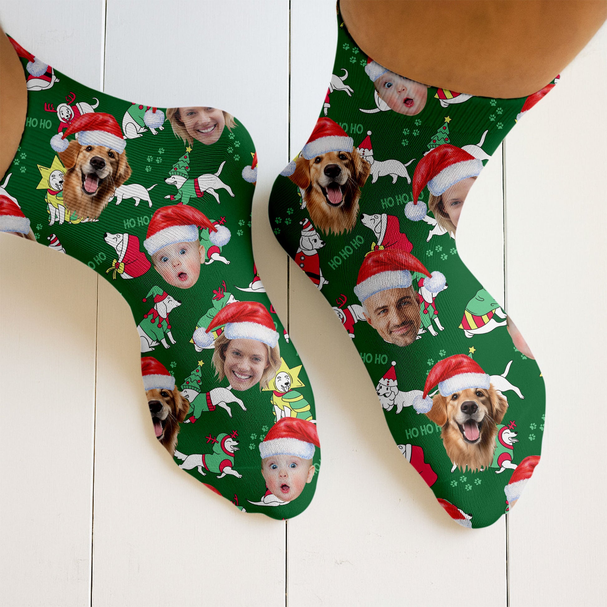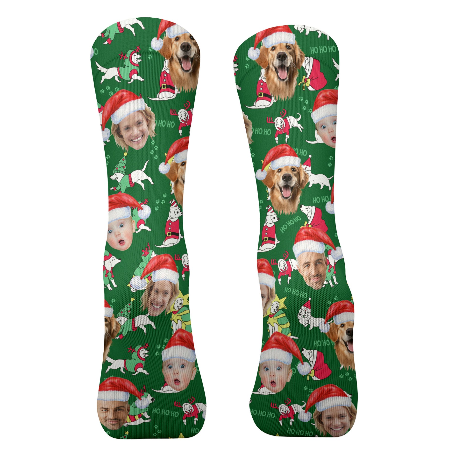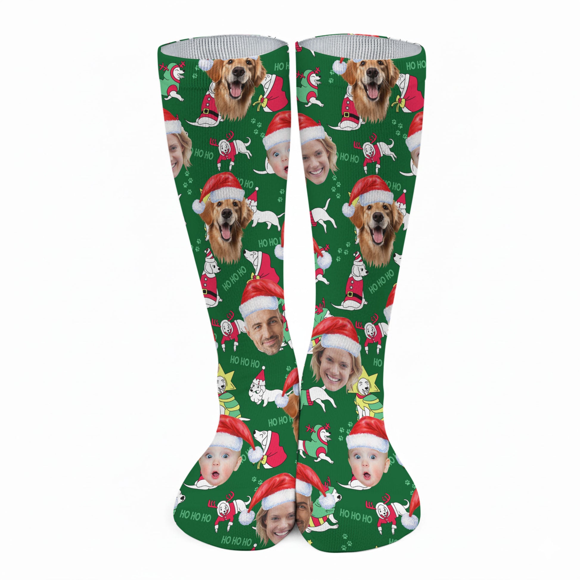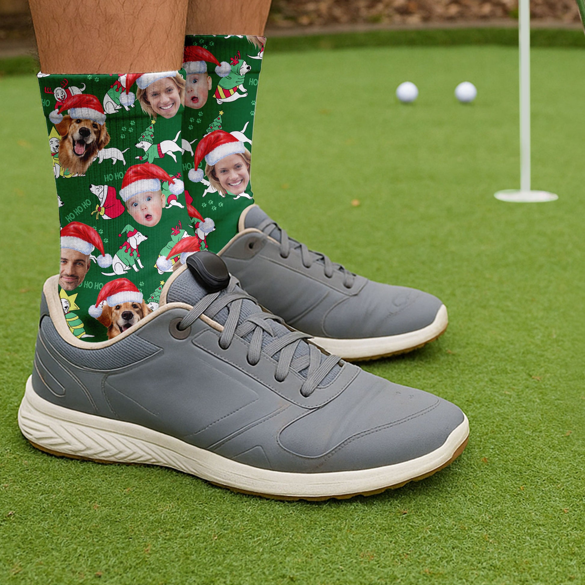 Custom Face Ho Ho Ho Cute White Dog Golf Socks, Christmas Golf Gift, Custom Golf Accessories