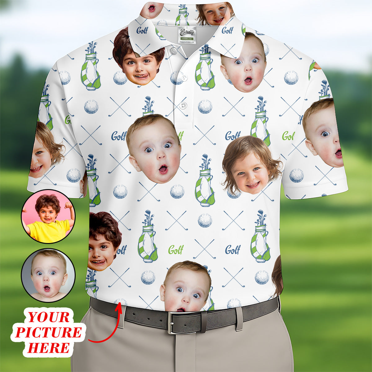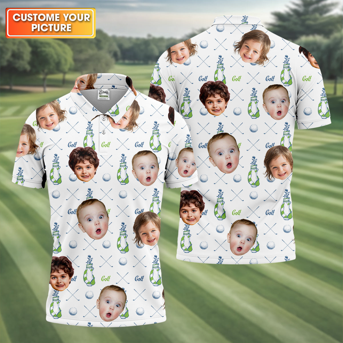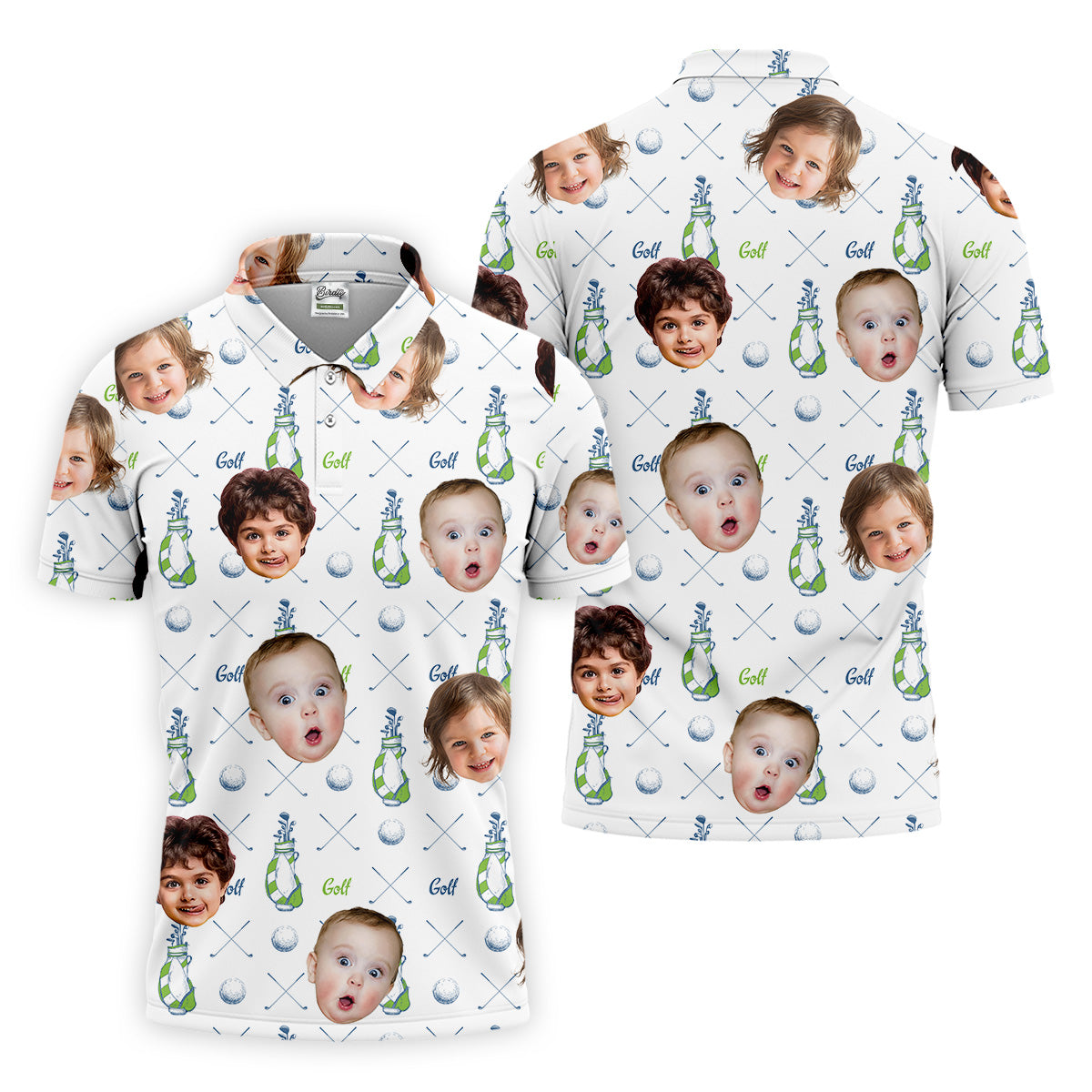Custom Face Kids Photo Pattern Golf Shirt, Funny Polo Golf Shirt, Dad Golf Shirt For Christmas