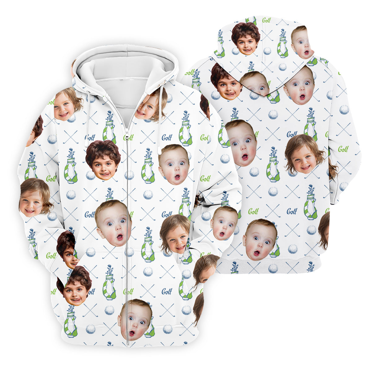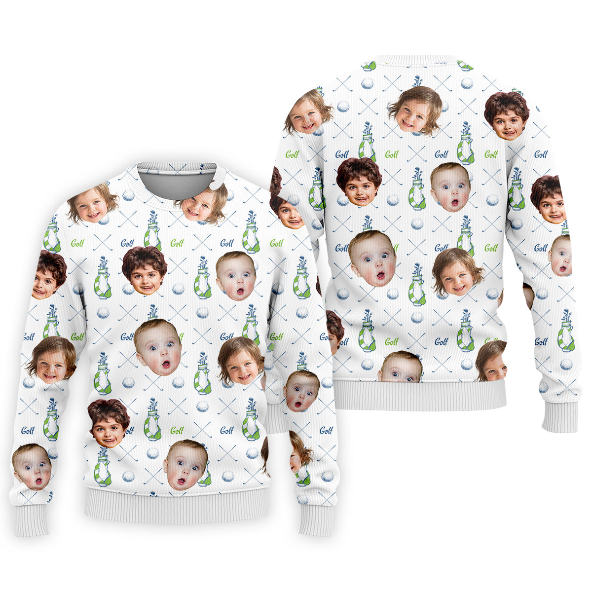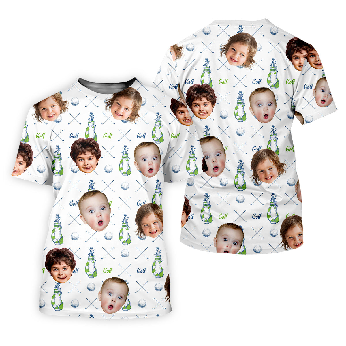 Custom Face Kids Photo Pattern Golf Shirt, Funny Polo Golf Shirt, Dad Golf Shirt For Christmas