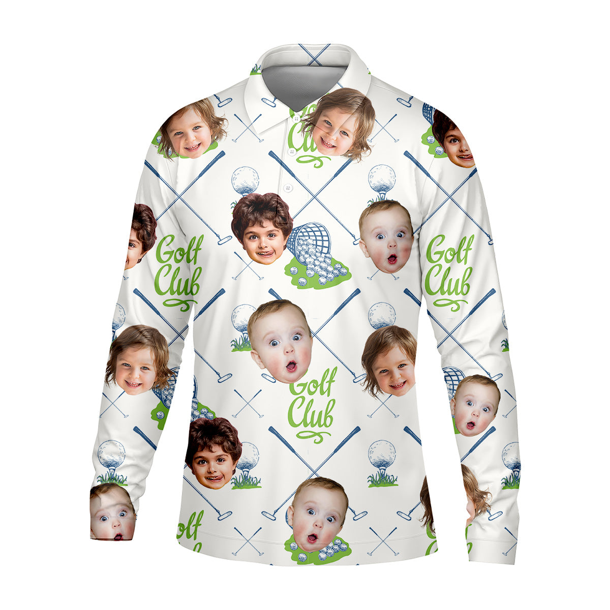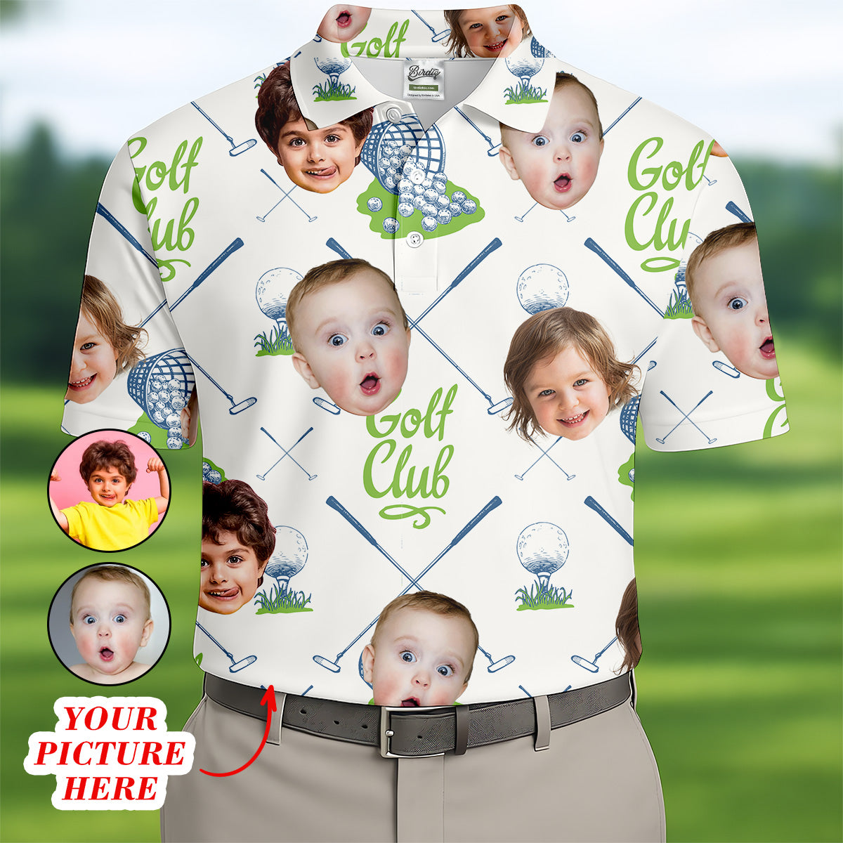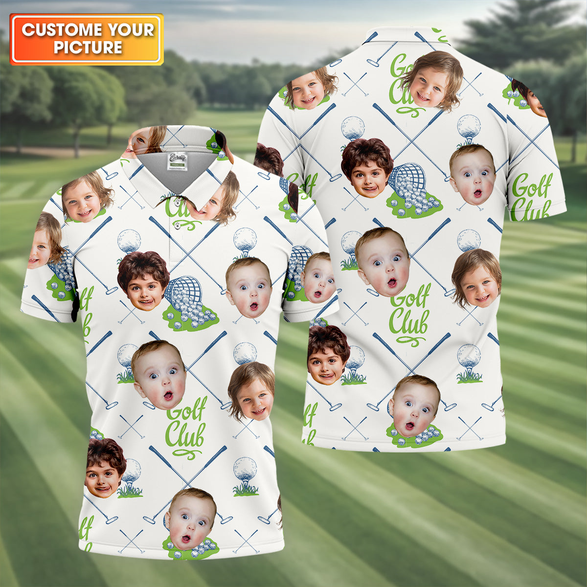 Custom Face Kids Photo Shirt Funny Polo Golf Shirt, Golf Club Shirt, Christmas Golf Gift
