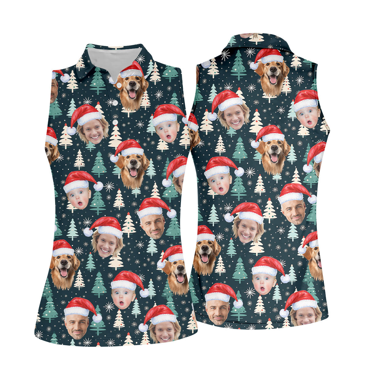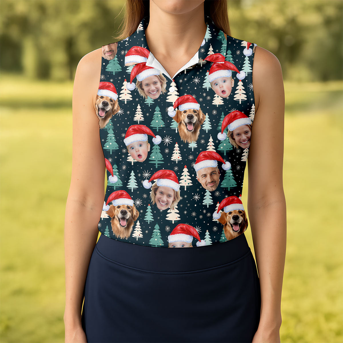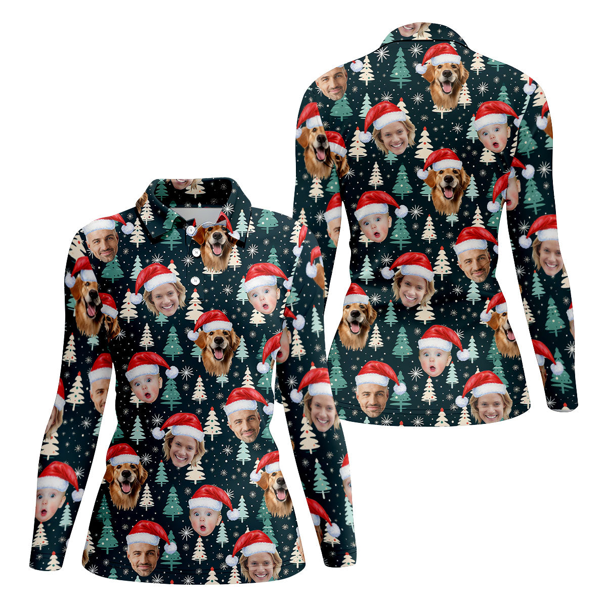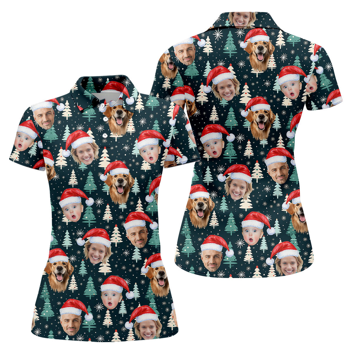 Custom Face Little Pine Tree Snowflake Pattern Christmas Golf Shirt, Women's Golf Tops, Golf Gift For Ladies