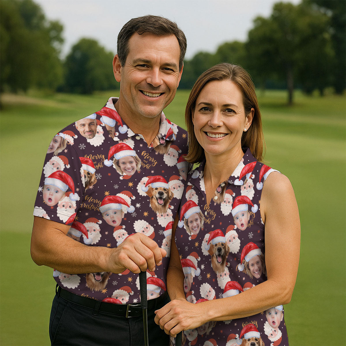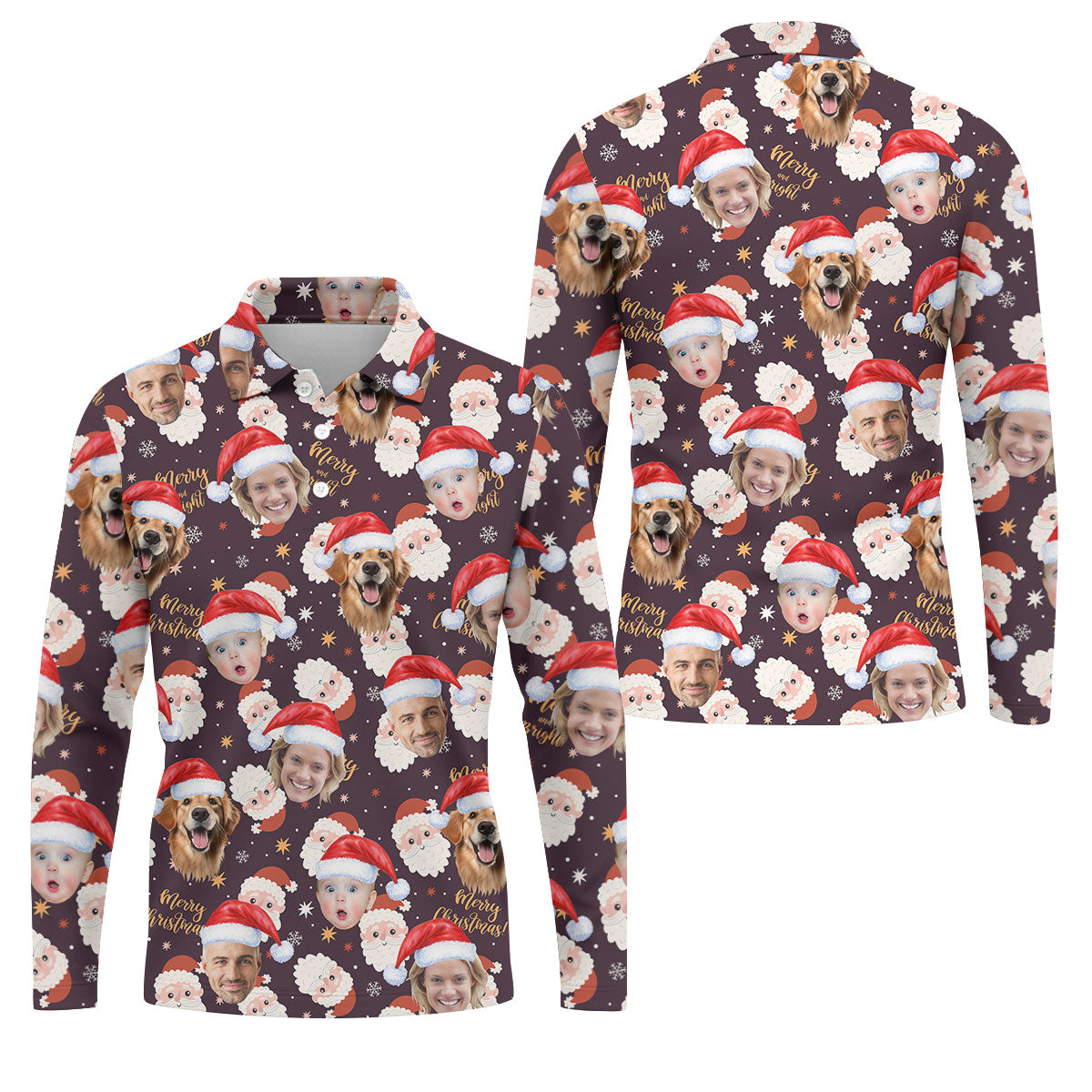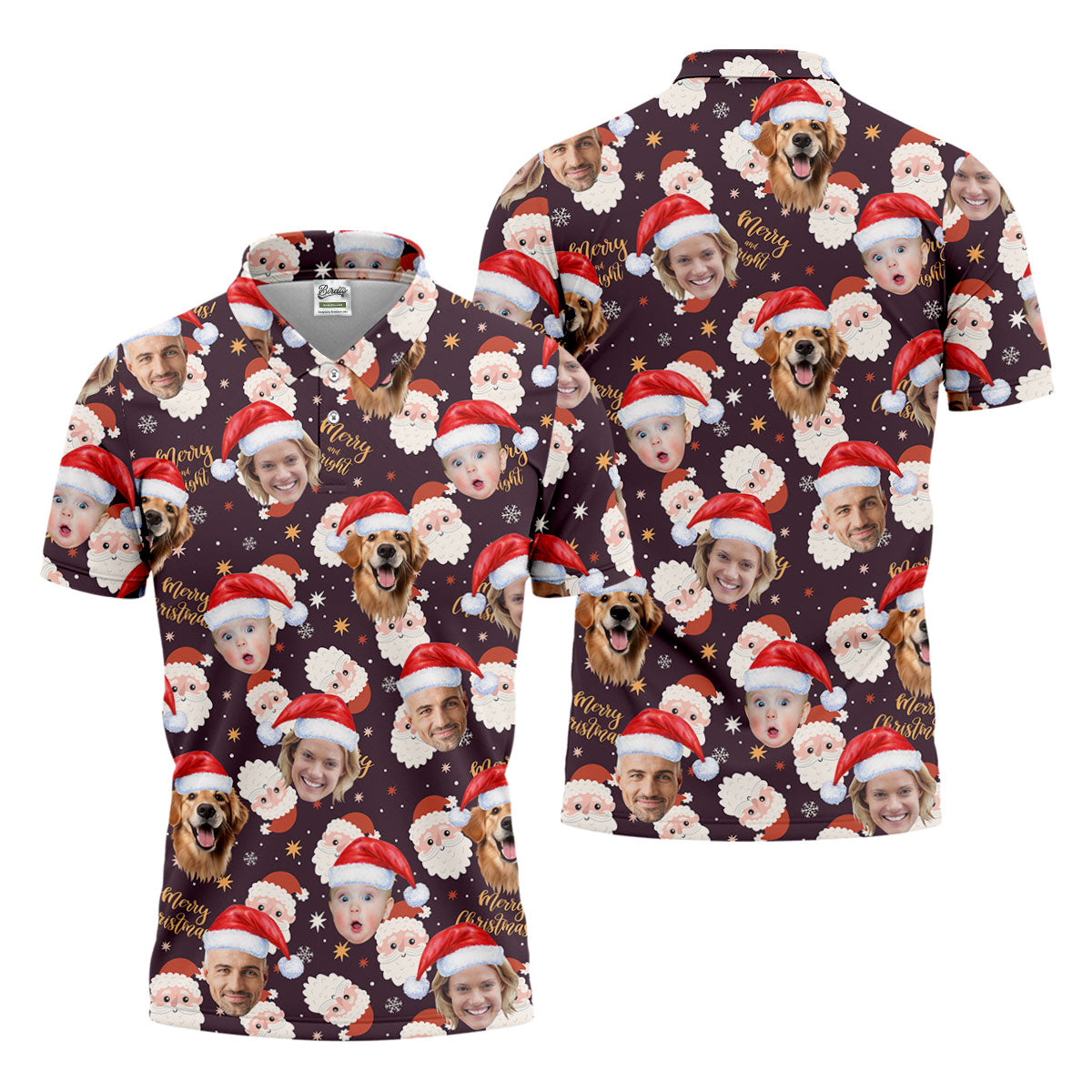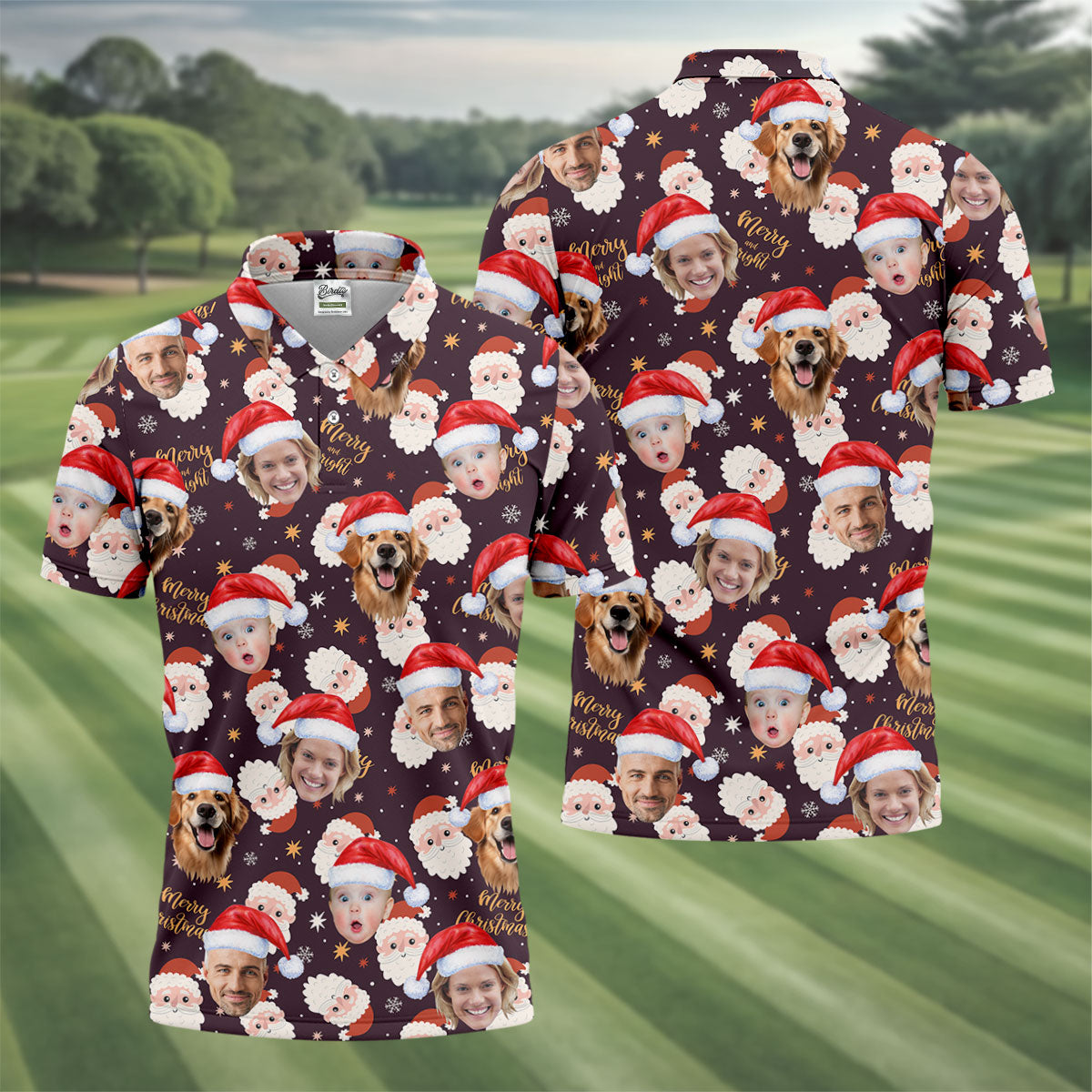 Custom Face Merry Christmas Santa Christmas Golf Shirt, Golf Shirts For Men, Golf Gift For Men