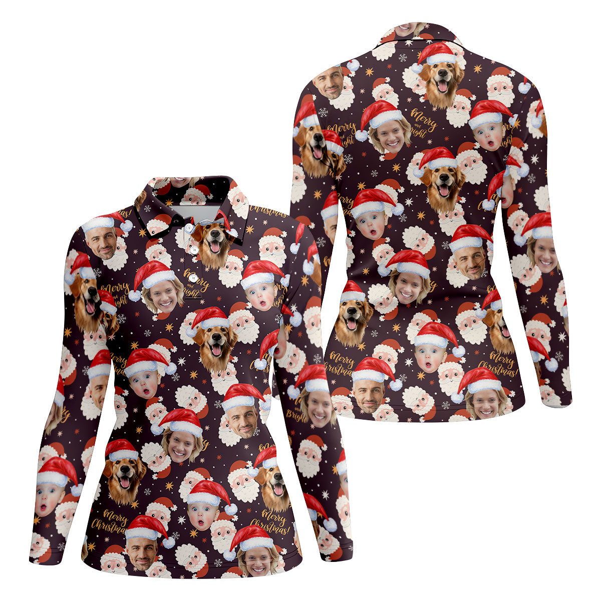 Custom Face Merry Christmas Santa Christmas Golf Shirt, Ladies Golf Shirts, Golf Gifts For Women