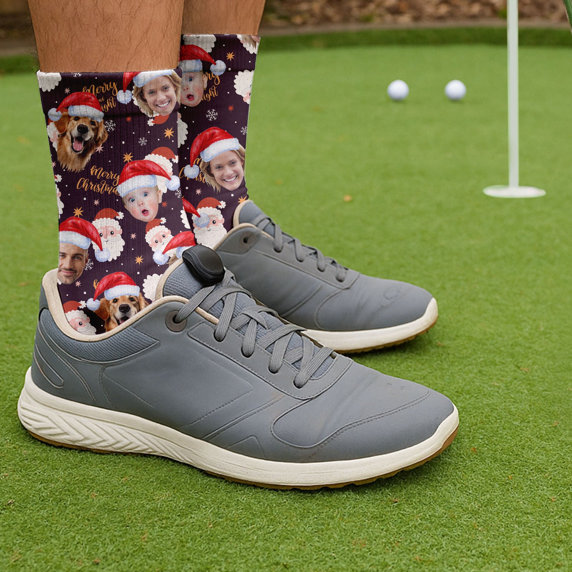 Custom Face Merry Christmas Santa Golf Socks, Christmas Golf Gift, Custom Golf Accessories