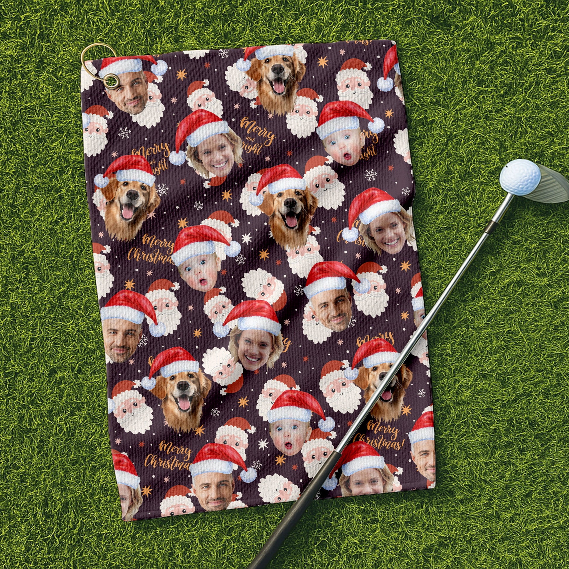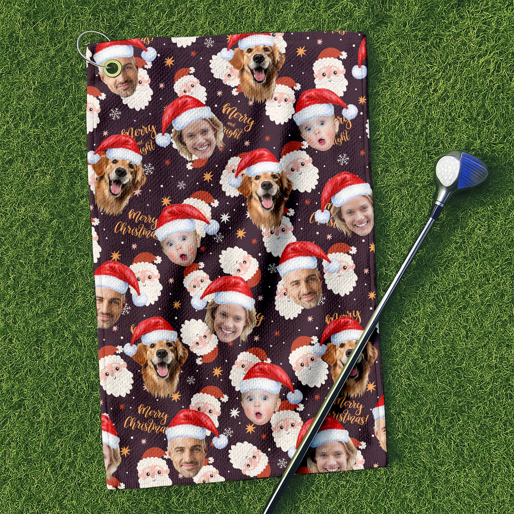 Custom Face Merry Christmas Santa Golf Towels, Christmas Golf Gift, Custom Golf Accessories
