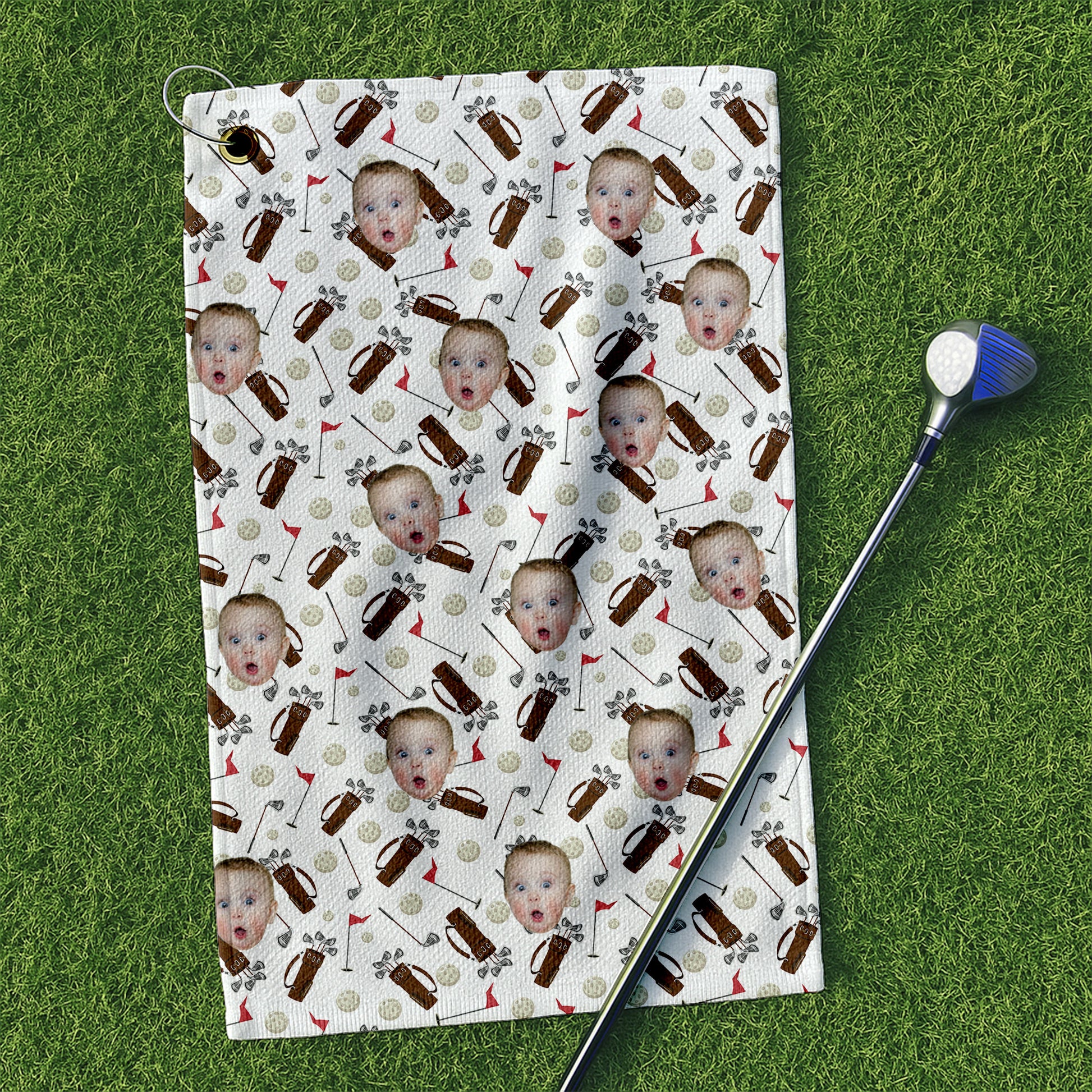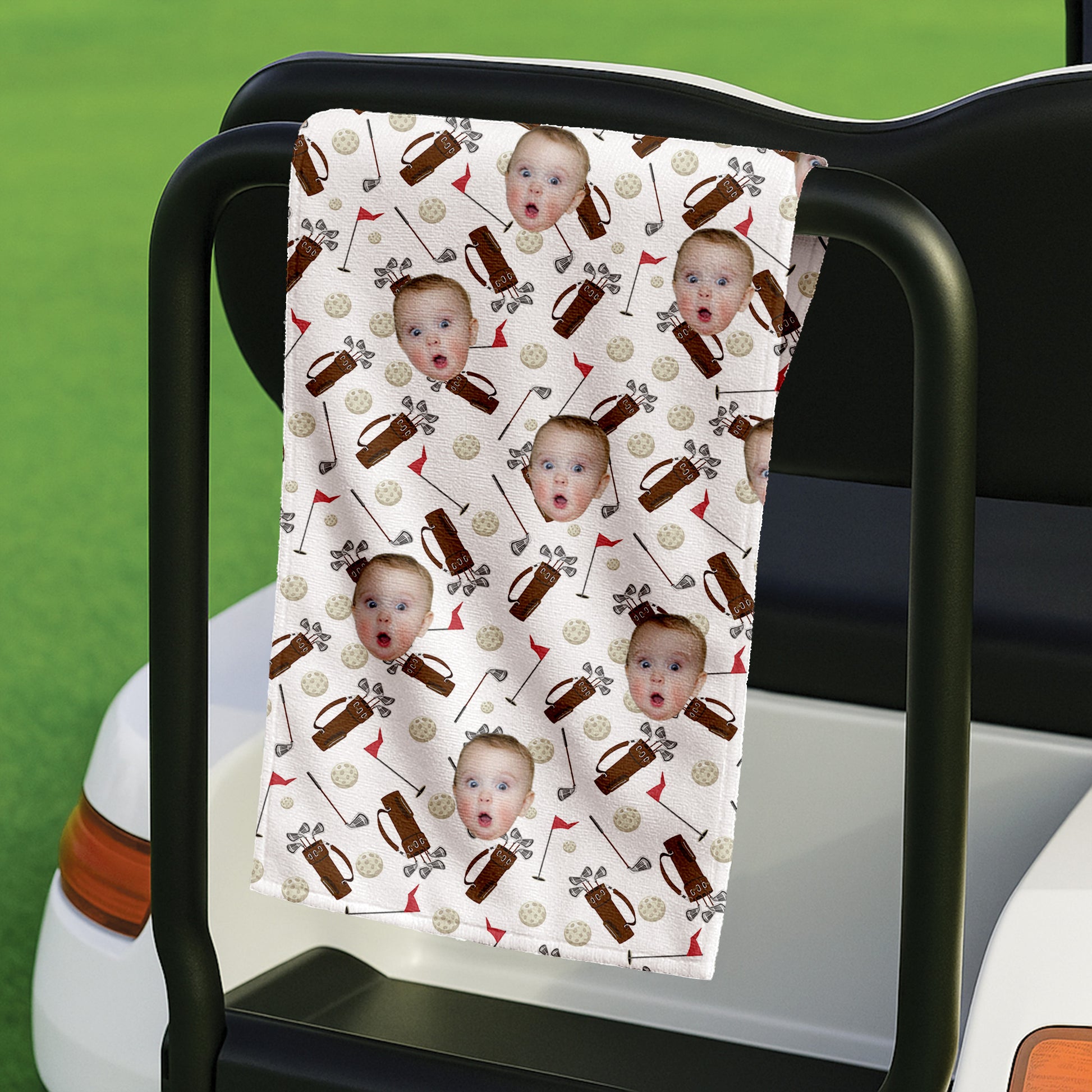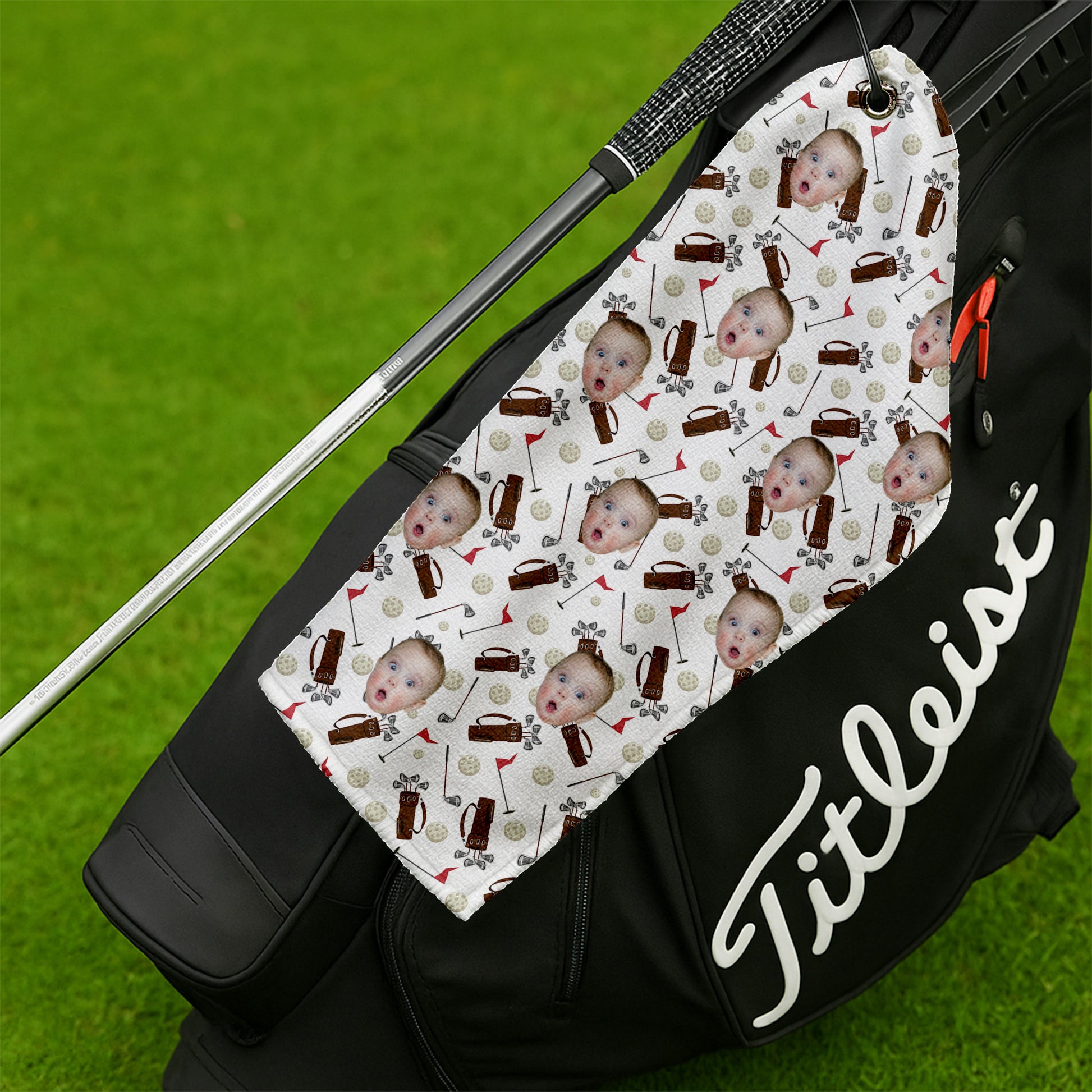 Custom Face Microfiber Waffle White Small Funny Golf Towel, Golf Rag, Golf Gift For Dad