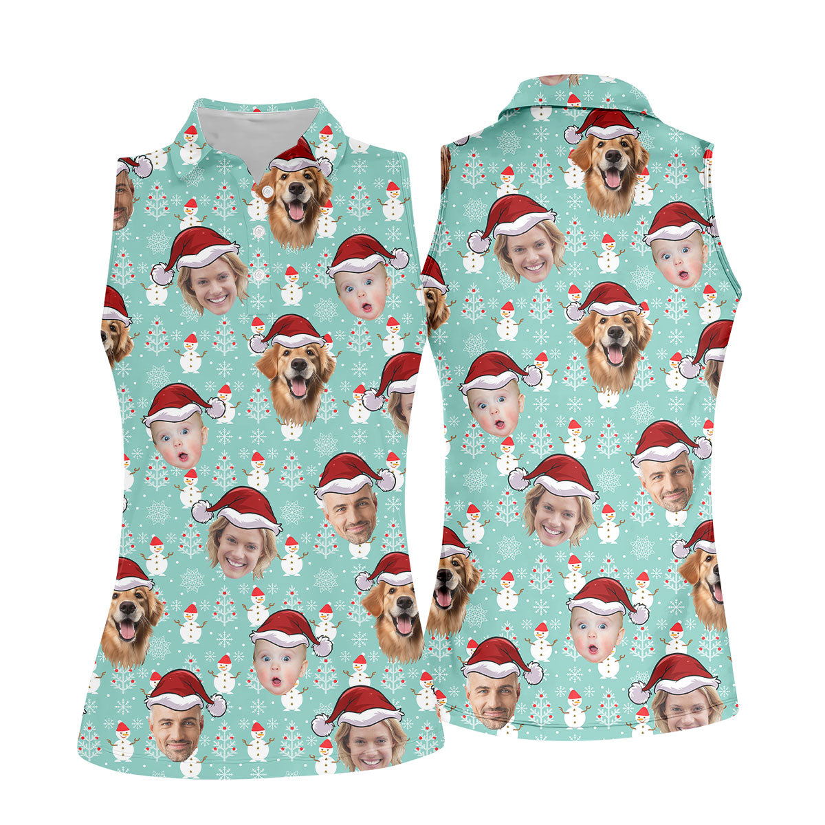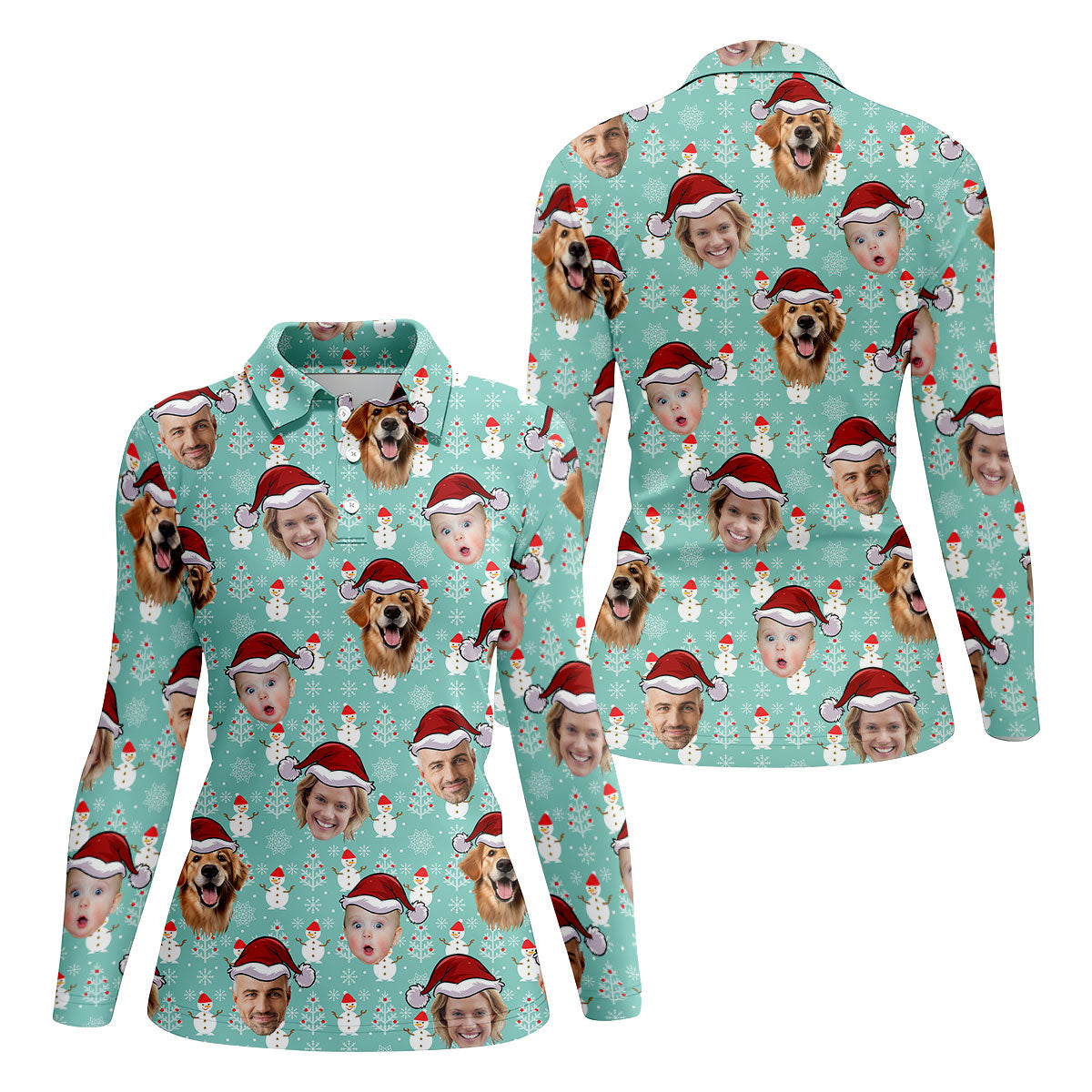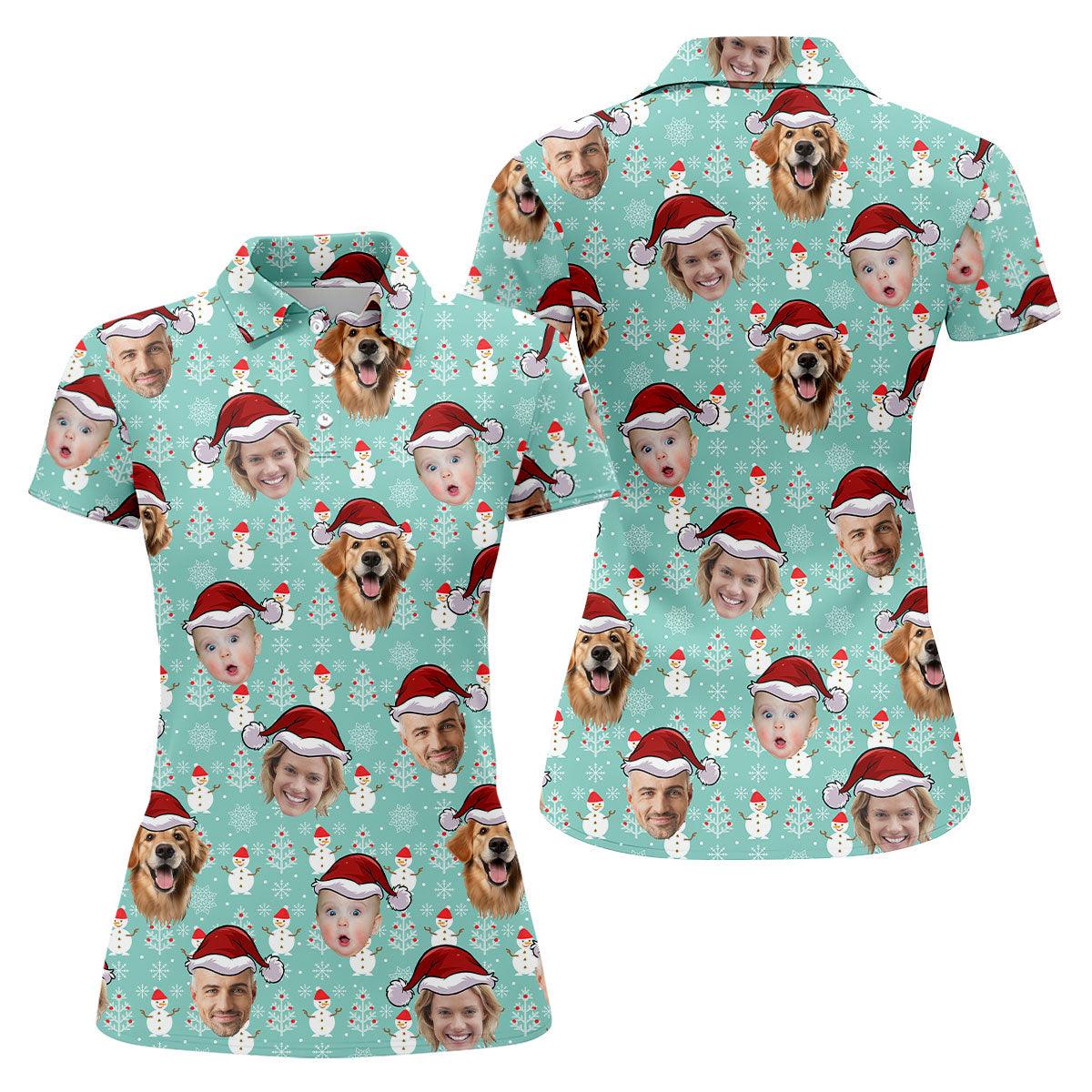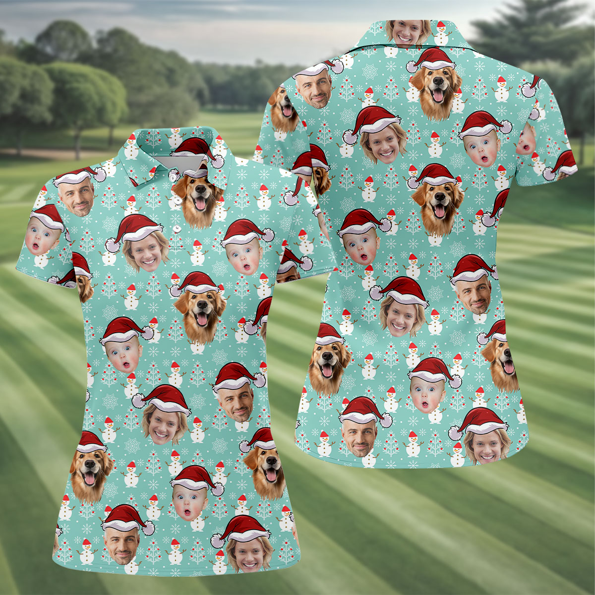 Custom Face Mint Christmas Women's Golf Tops, Ladies Golf Shirts, Christmas Golf Gift