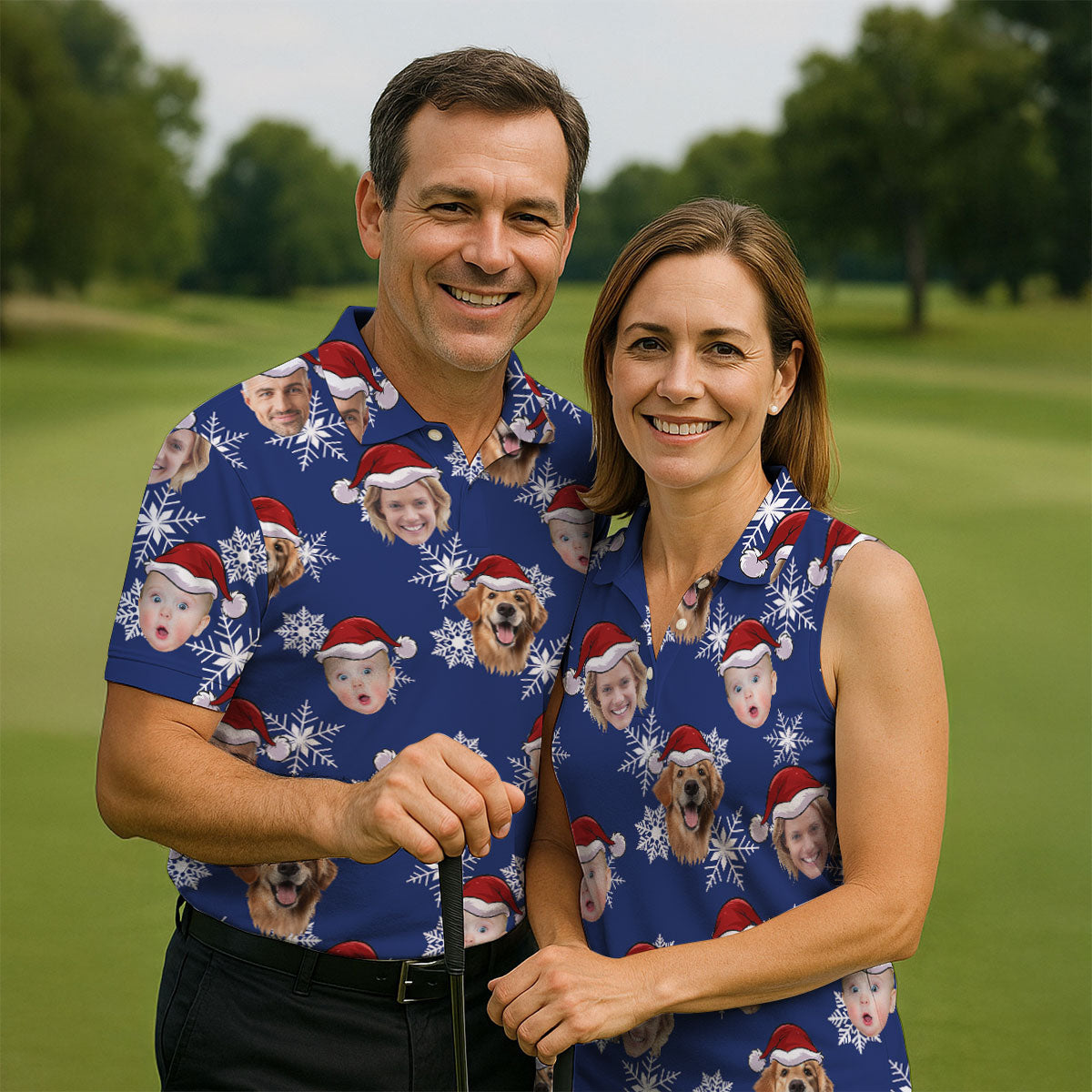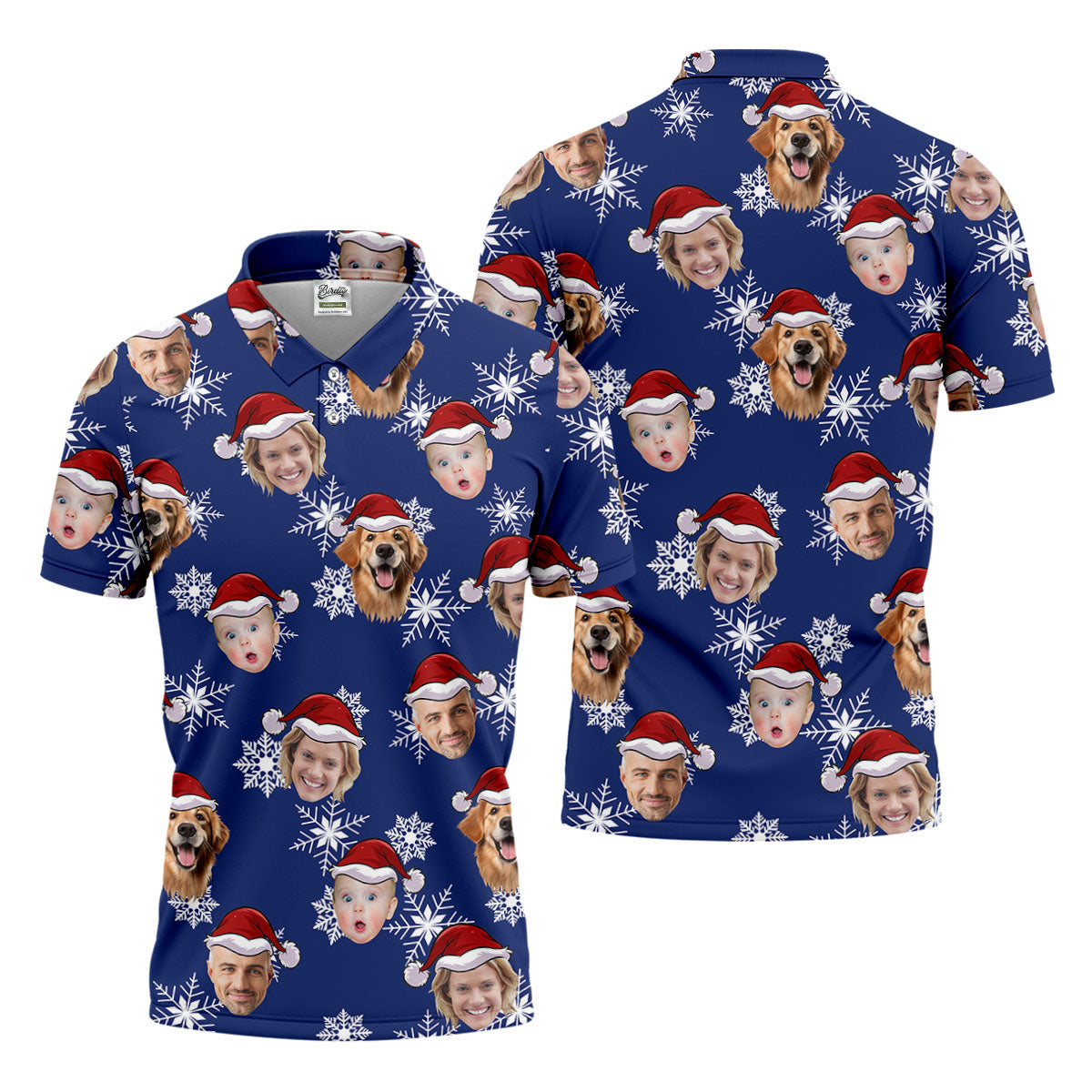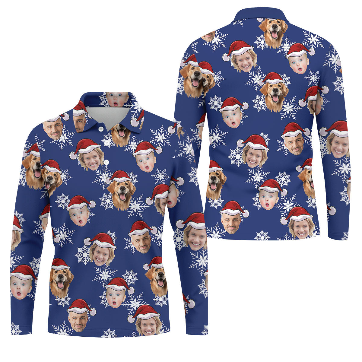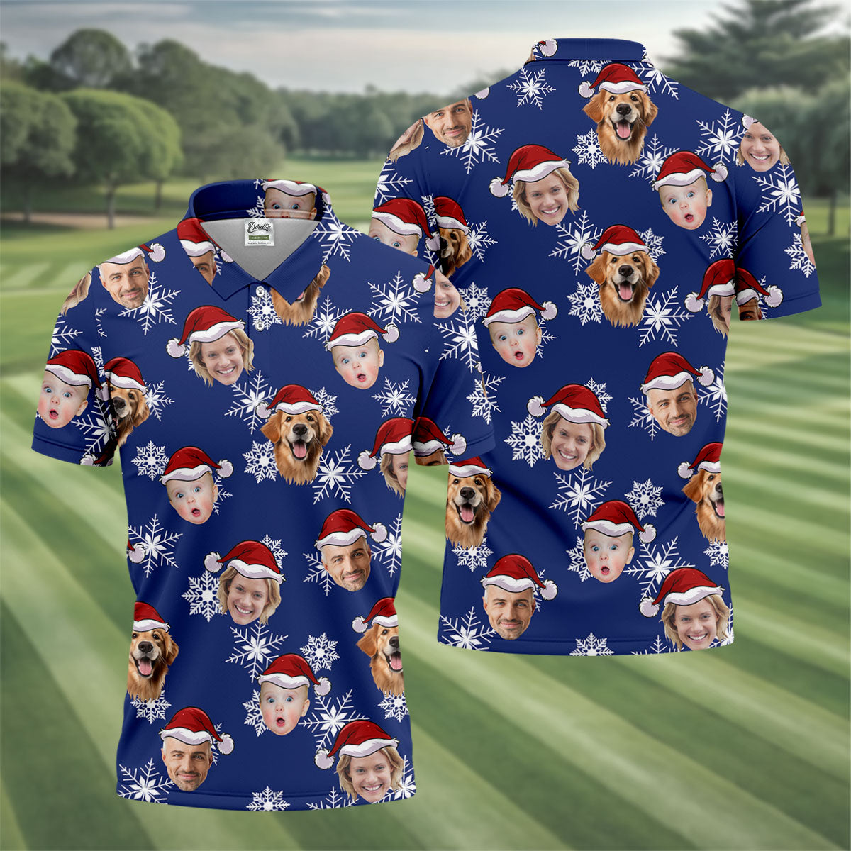 Custom Face Navy Christmas Golf Tops For Men, Polo Shirts For Men, Christmas Golf Gift