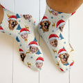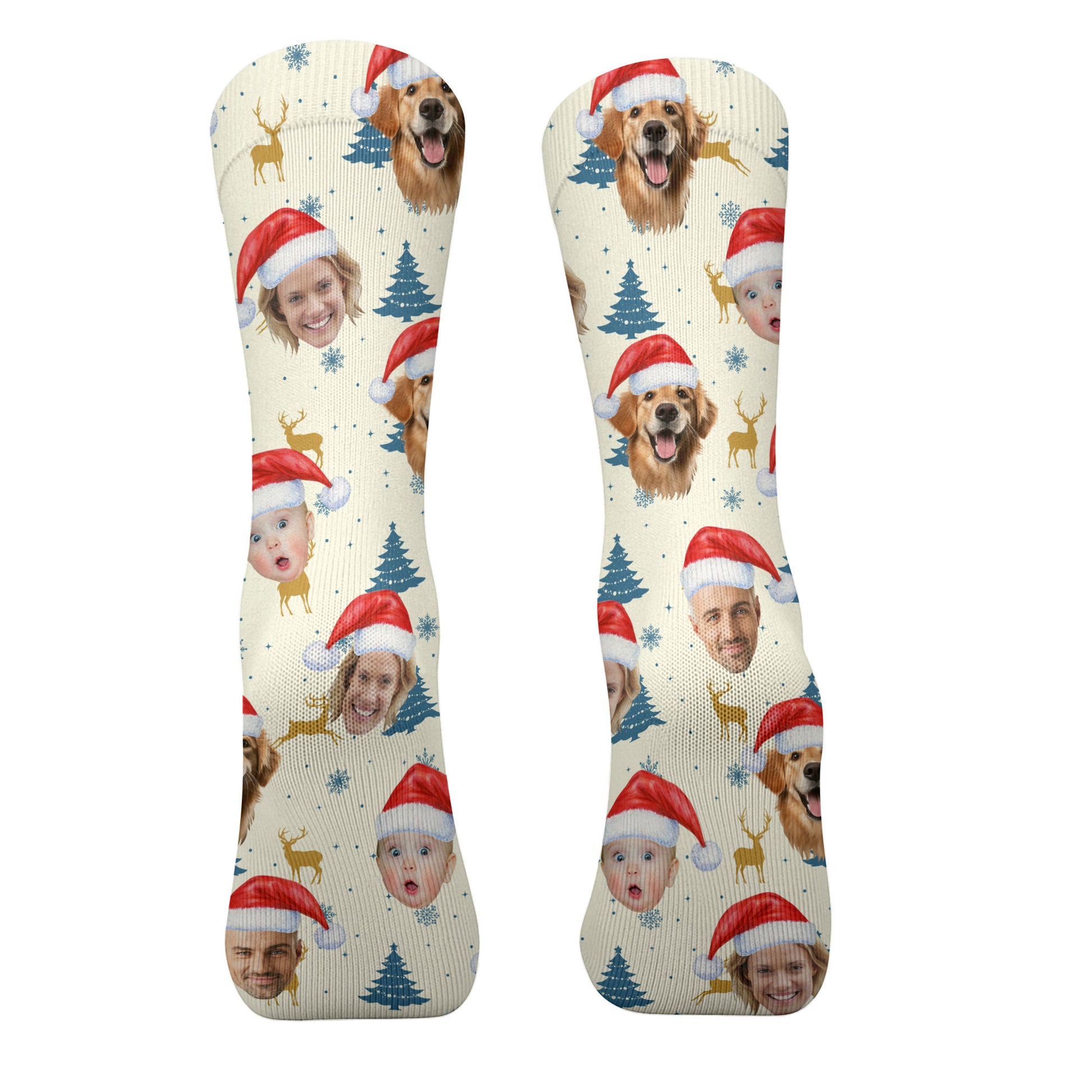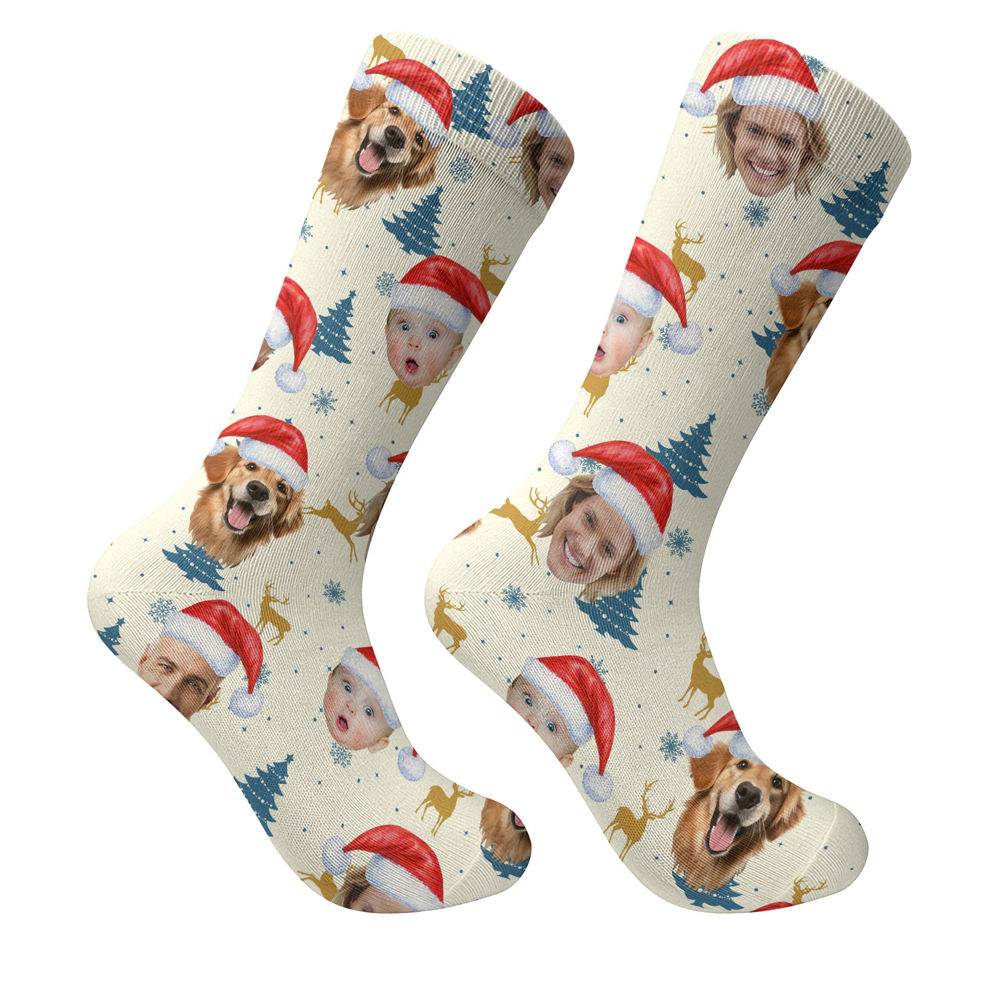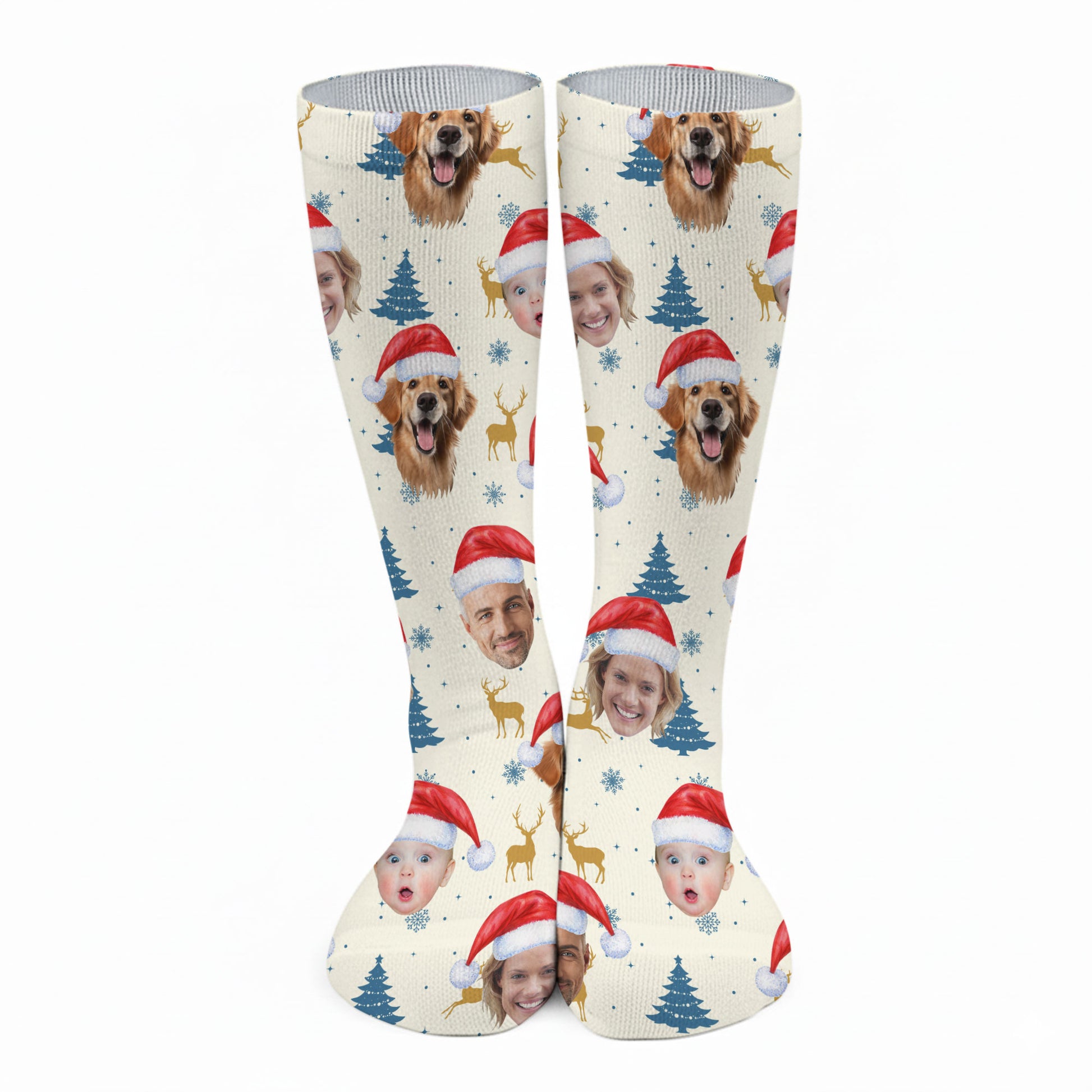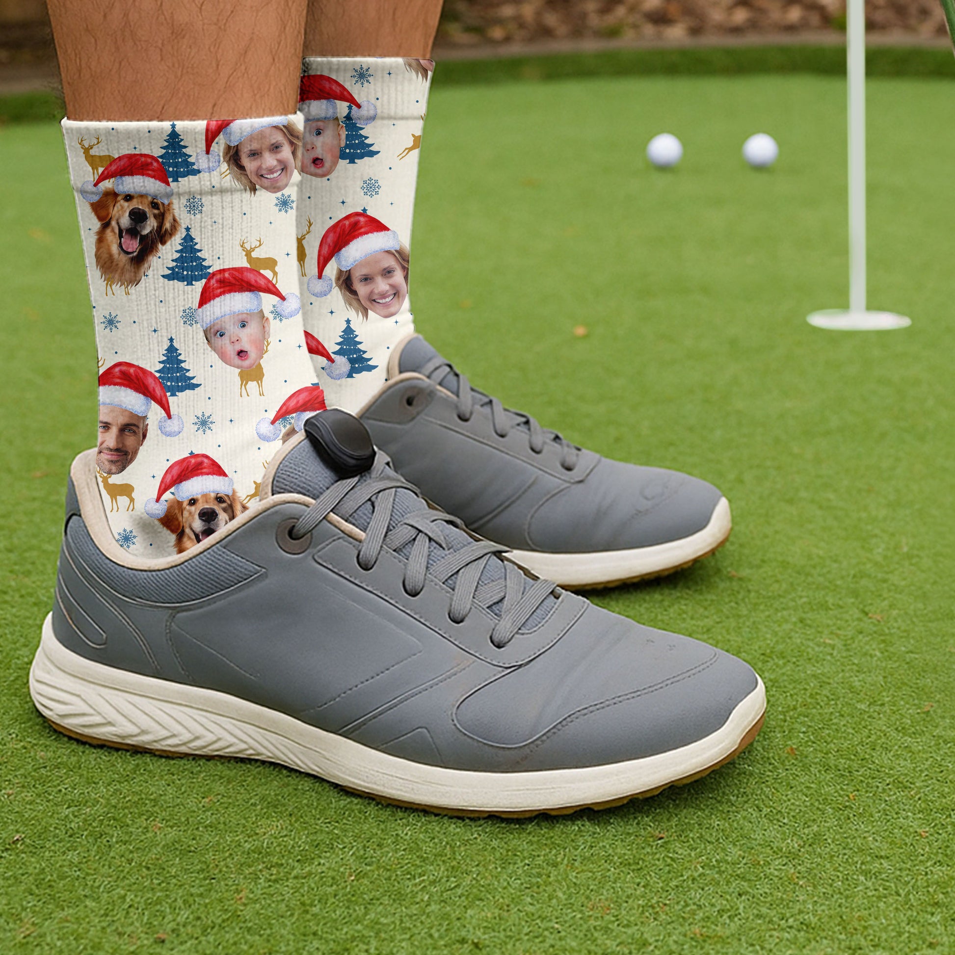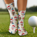 Custom Face Pine Tree Pattern Beige And Navy Golf Socks, Christmas Golf Gift, Custom Golf Accessories
