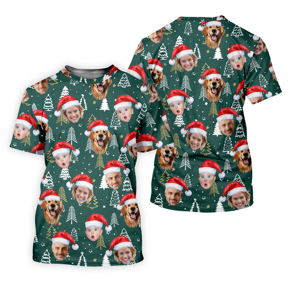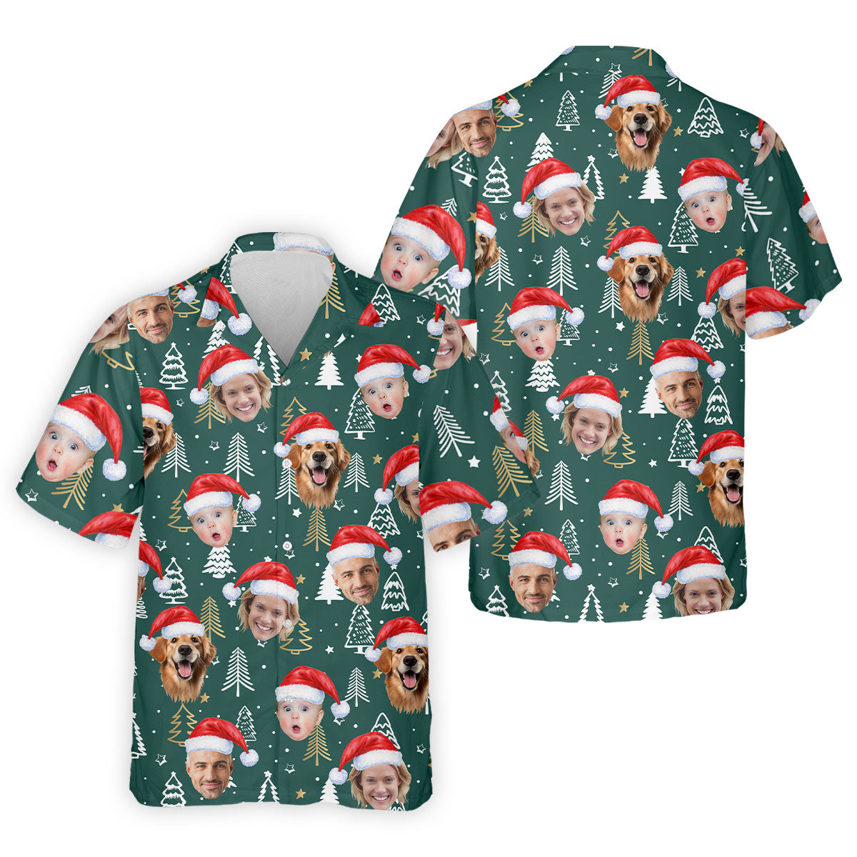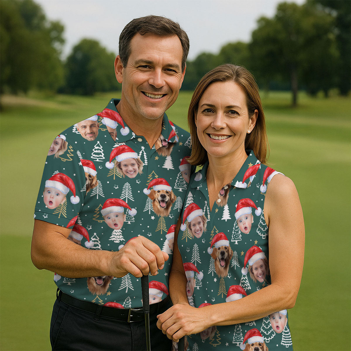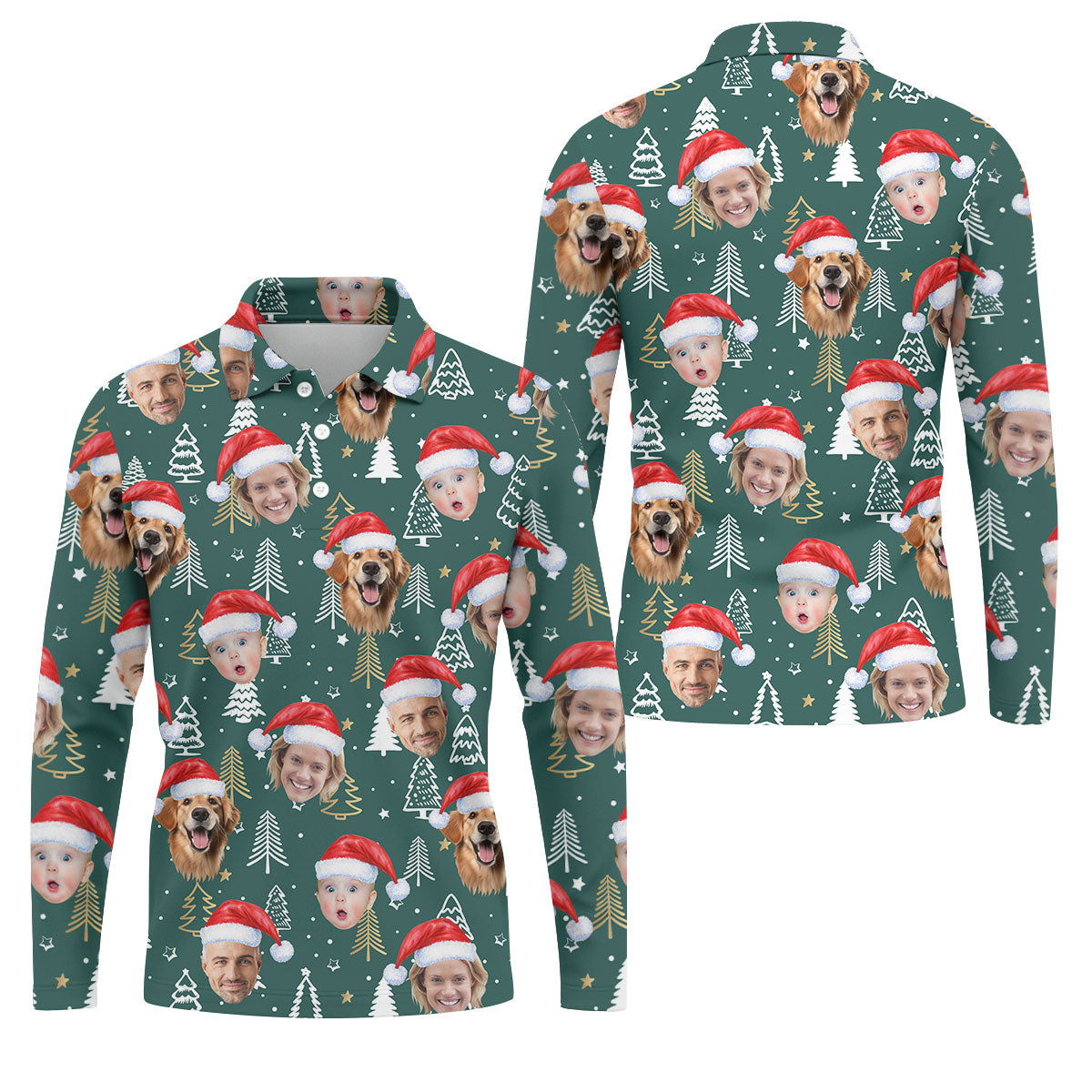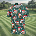 Custom Face Pine Tree Pattern Dark Green Christmas Golf Shirt, Golf Shirts For Men, Golf Gift For Men