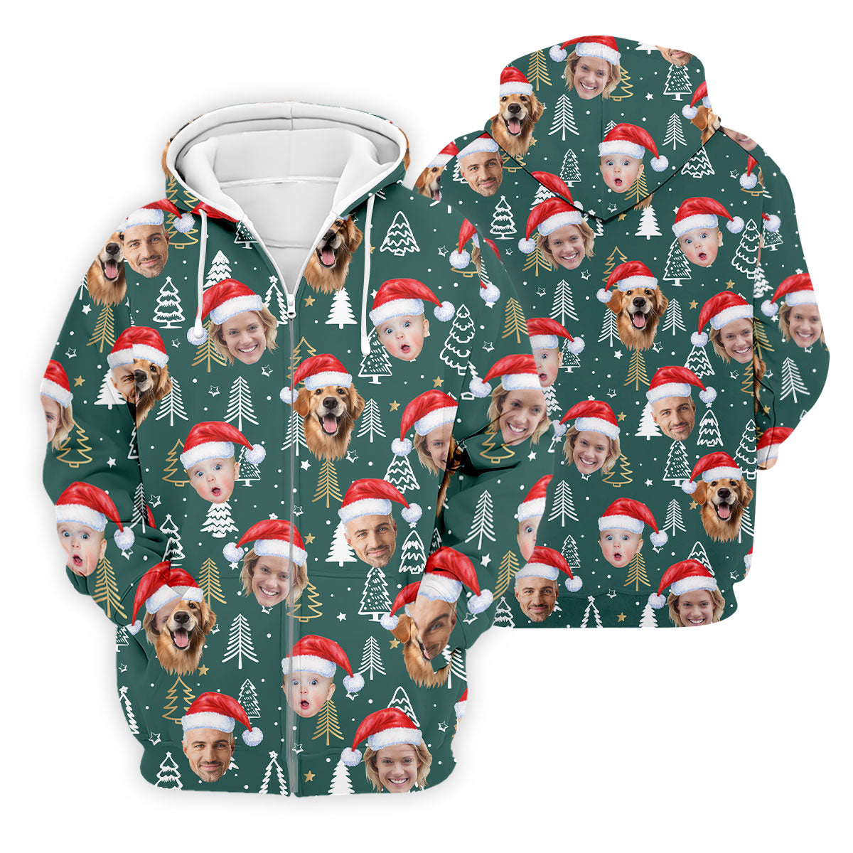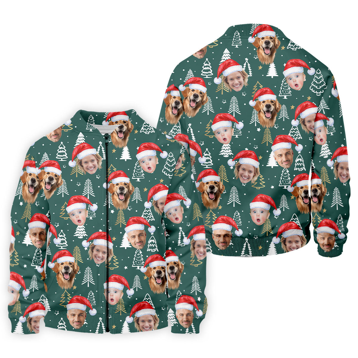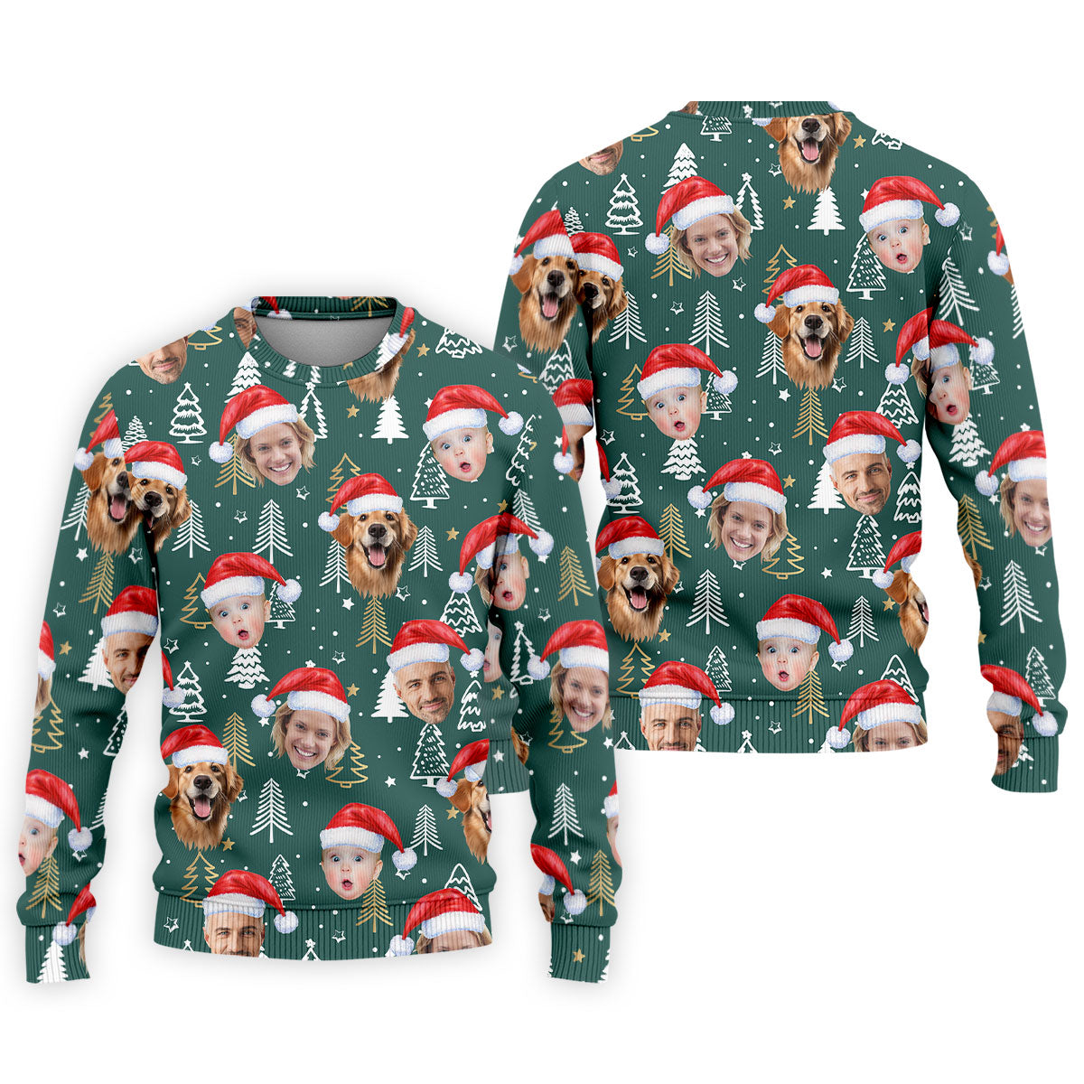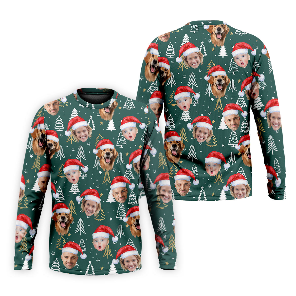 Custom Face Pine Tree Pattern Dark Green Christmas Golf Shirt, Golf Shirts For Men, Golf Gift For Men