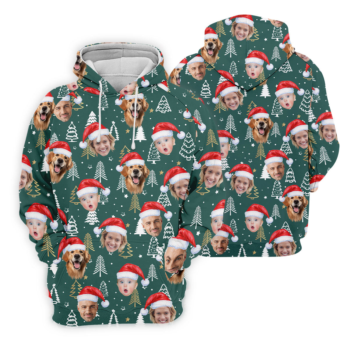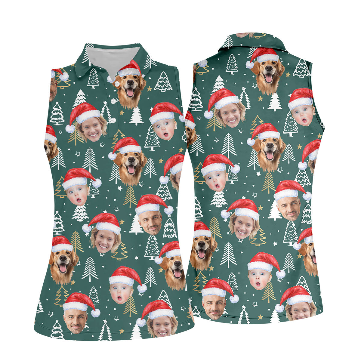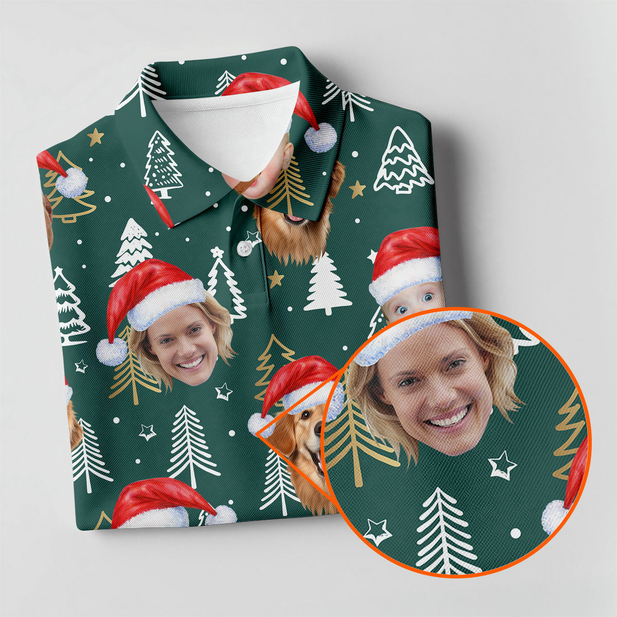 Custom Face Pine Tree Pattern Dark Green Christmas Golf Shirt, Ladies Golf Shirts, Golf Gifts For Women