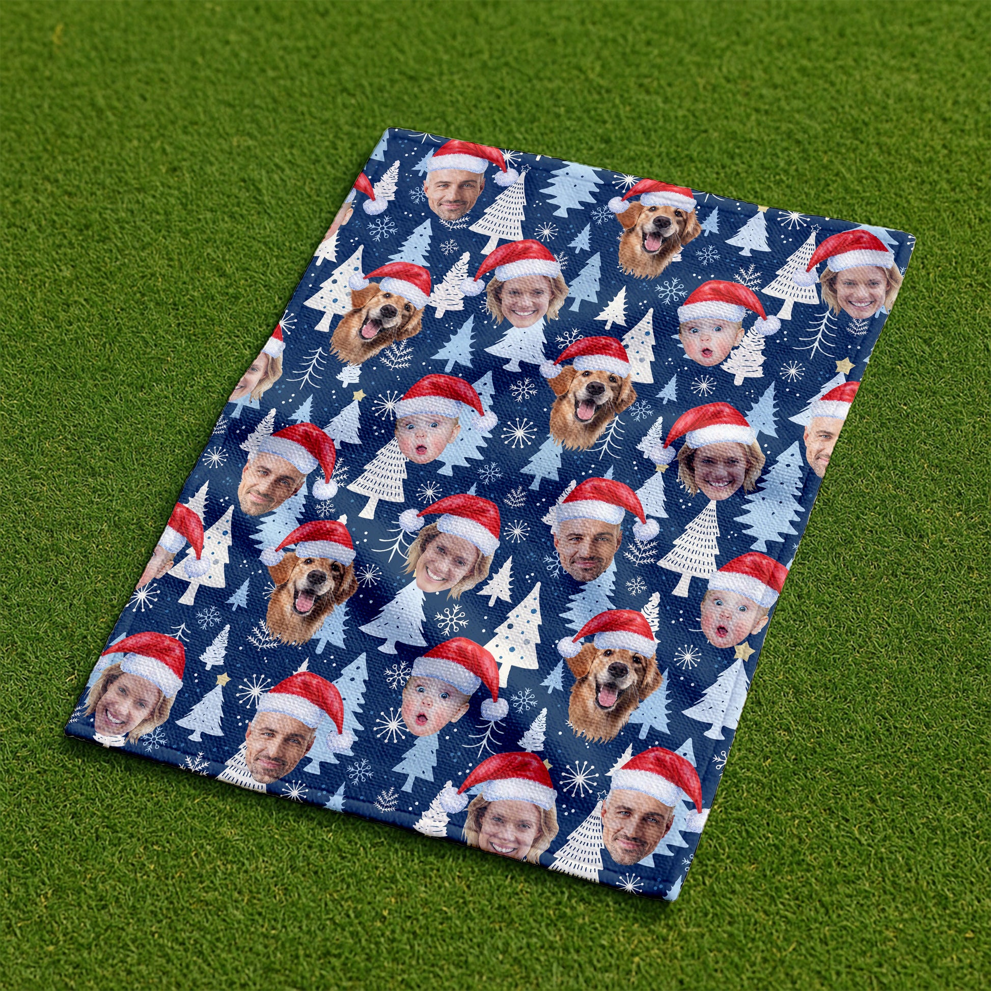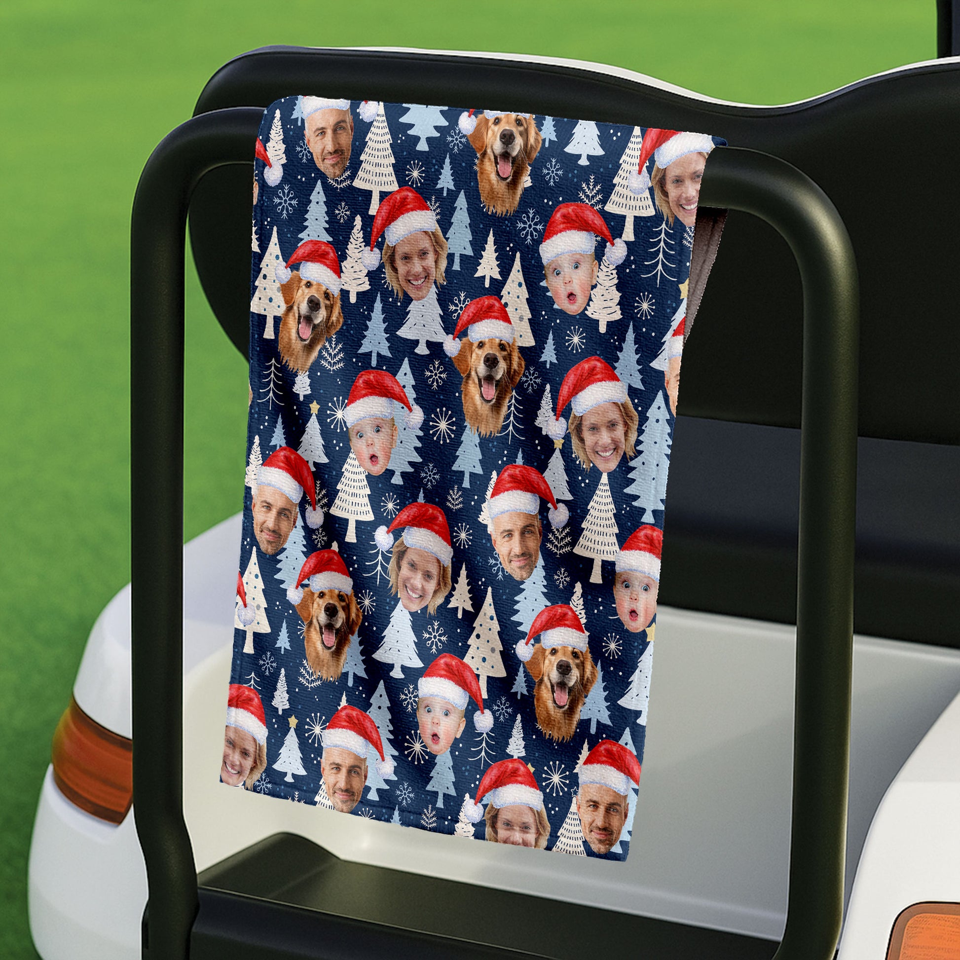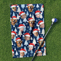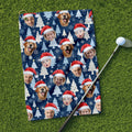 Custom Face Pine Tree Pattern White And Navy Golf Towels, Christmas Golf Gift, Custom Golf Accessories