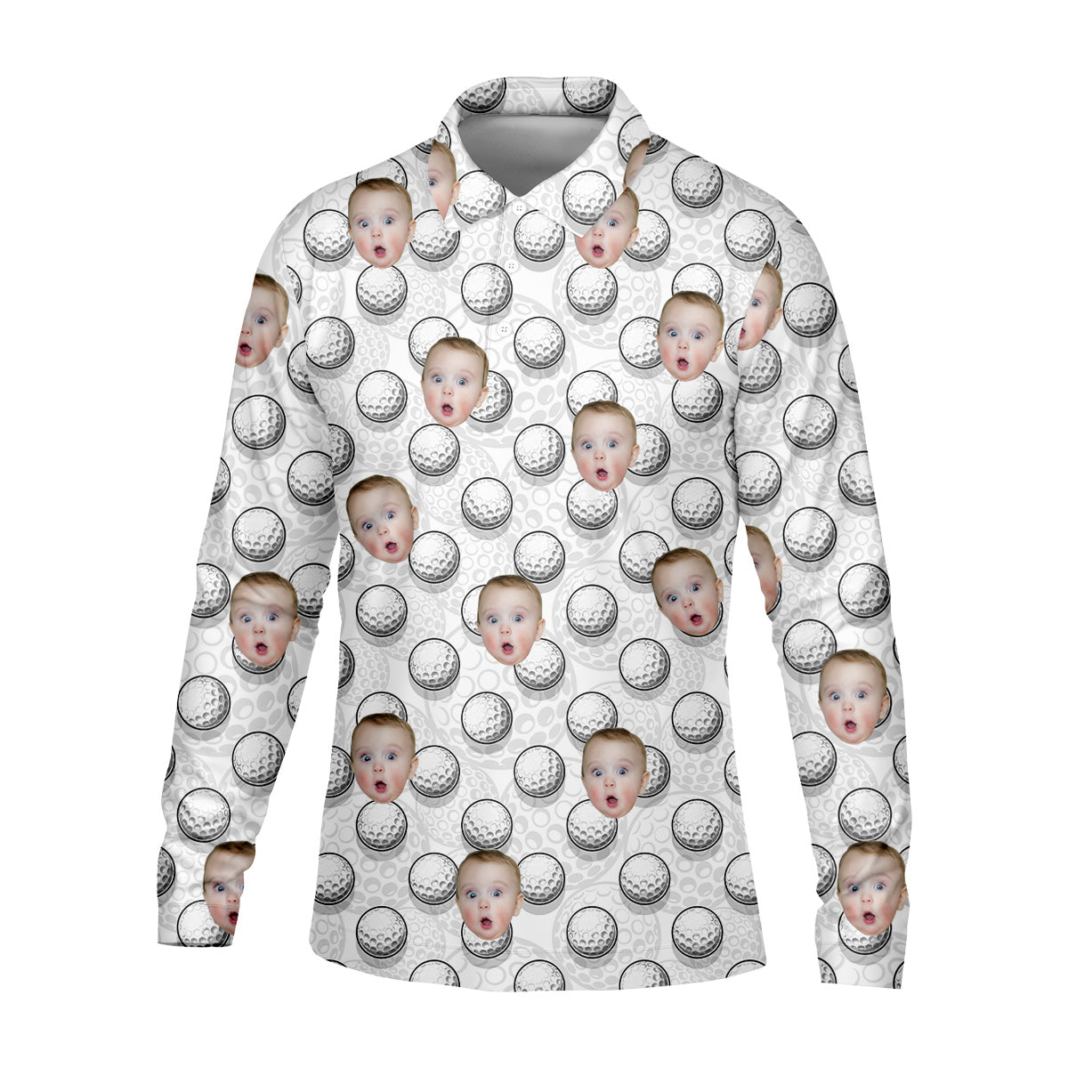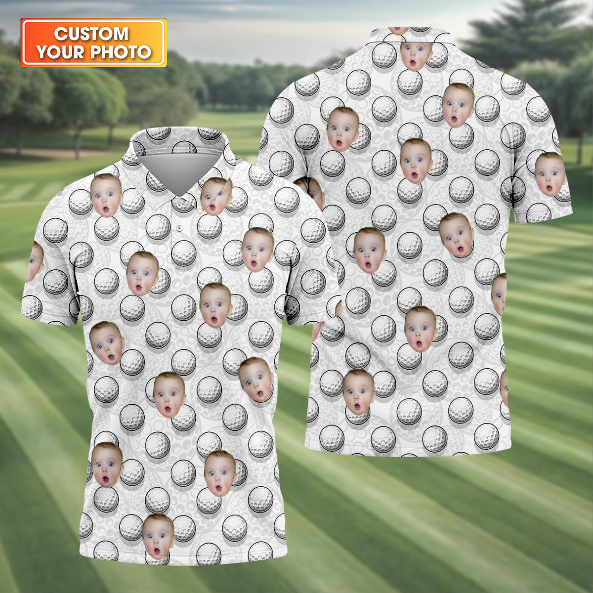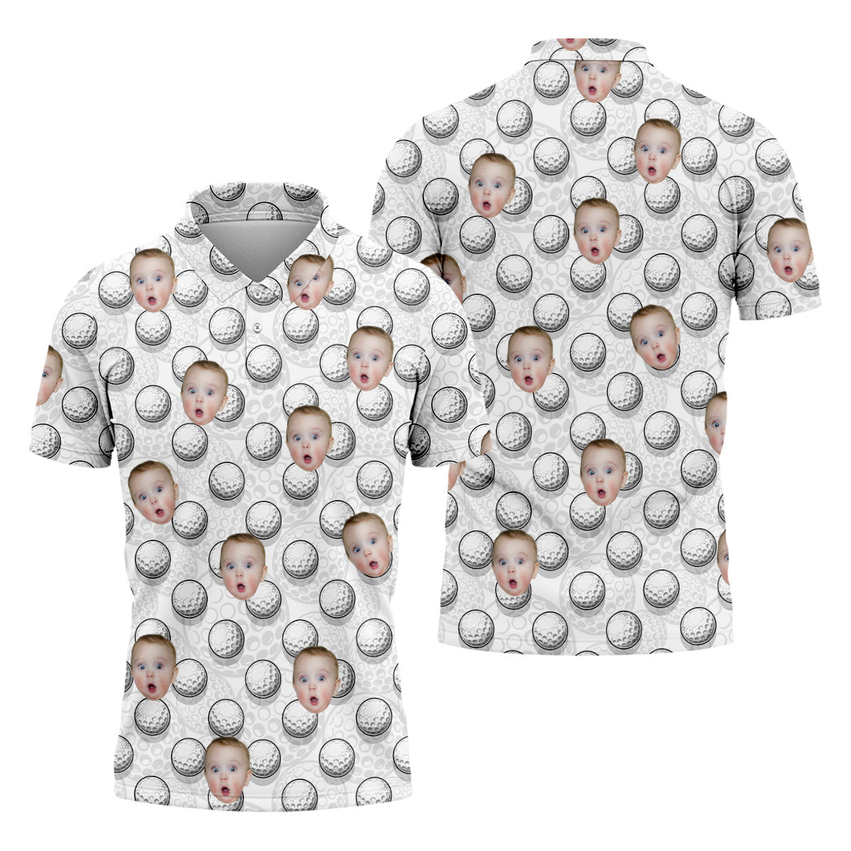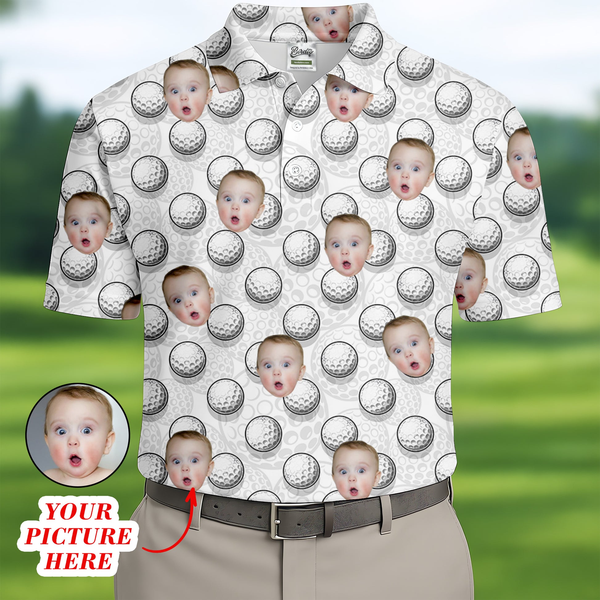 Custom Face Kids Photo, Golf Ball Pattern Funny Golf Polo Shirt, Christmas Golf Gift