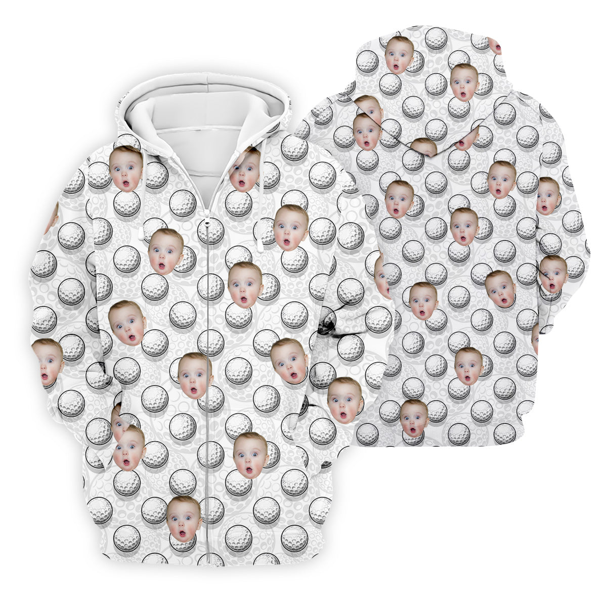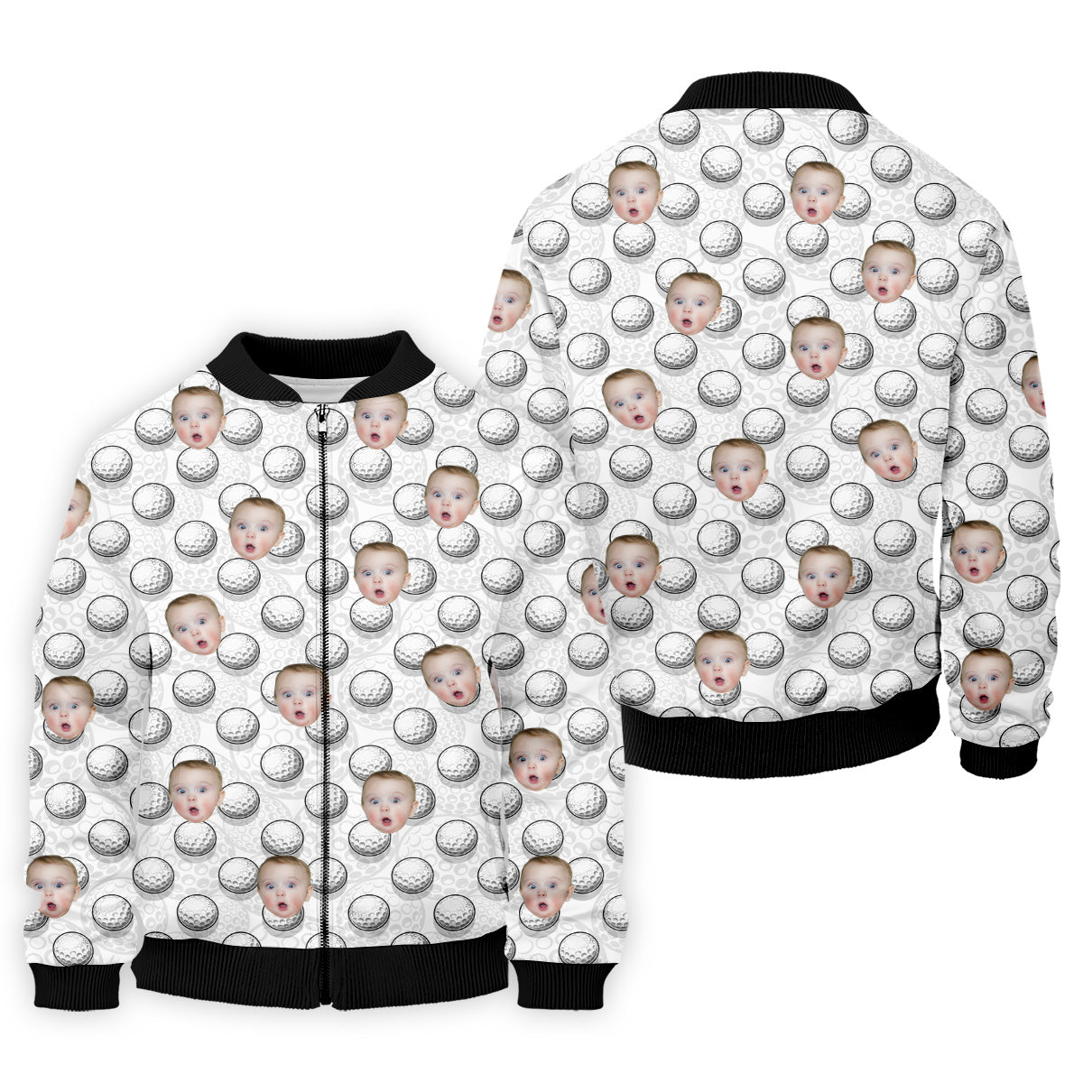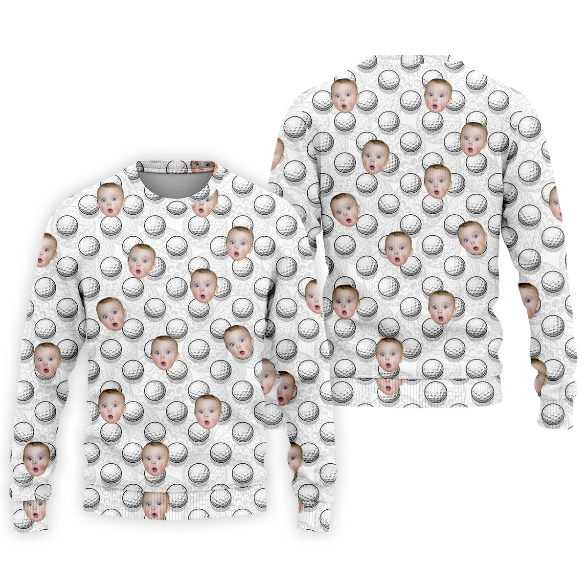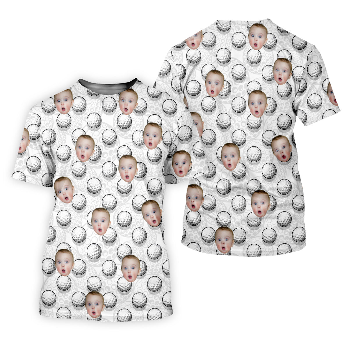 Custom Face Kids Photo, Golf Ball Pattern Funny Golf Polo Shirt, Christmas Golf Gift