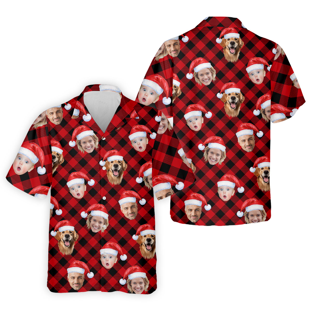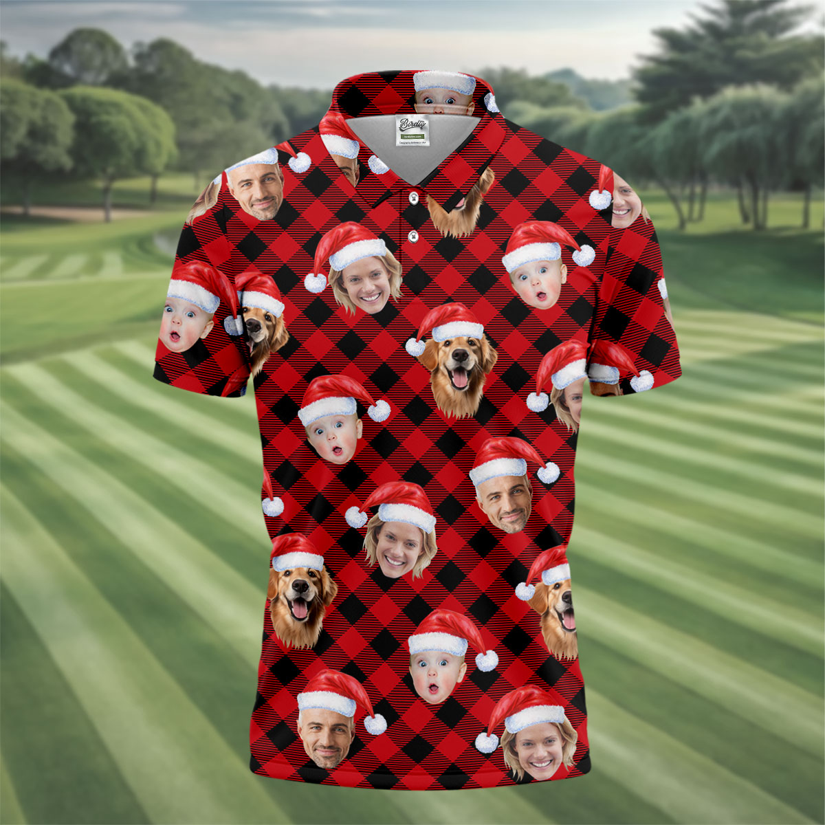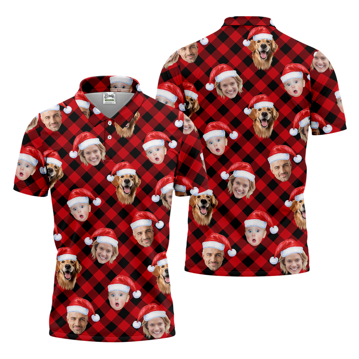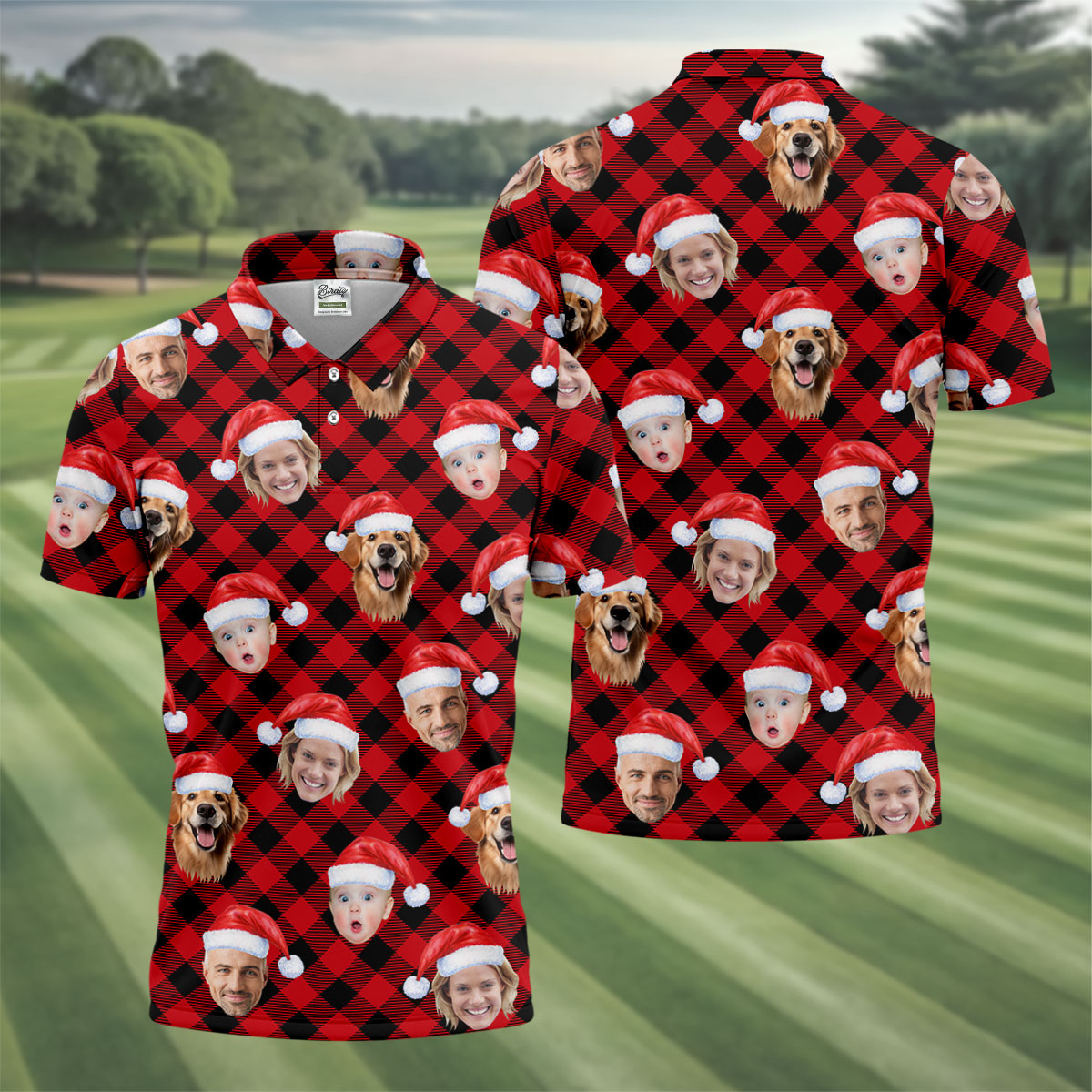 Custom Face Red And Black Checkered Christmas Golf Shirt, Polo Shirts For Men, Golf Gift For Men