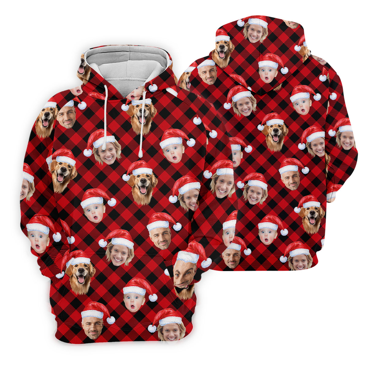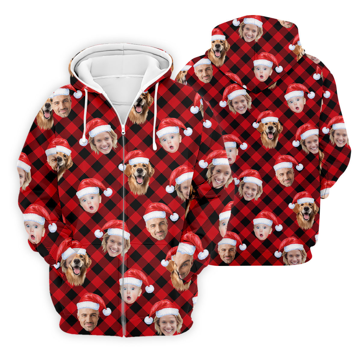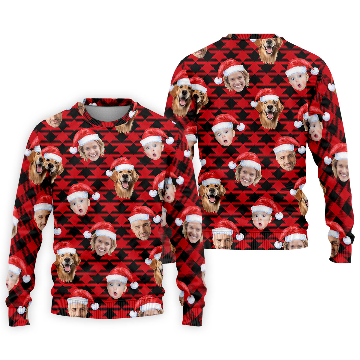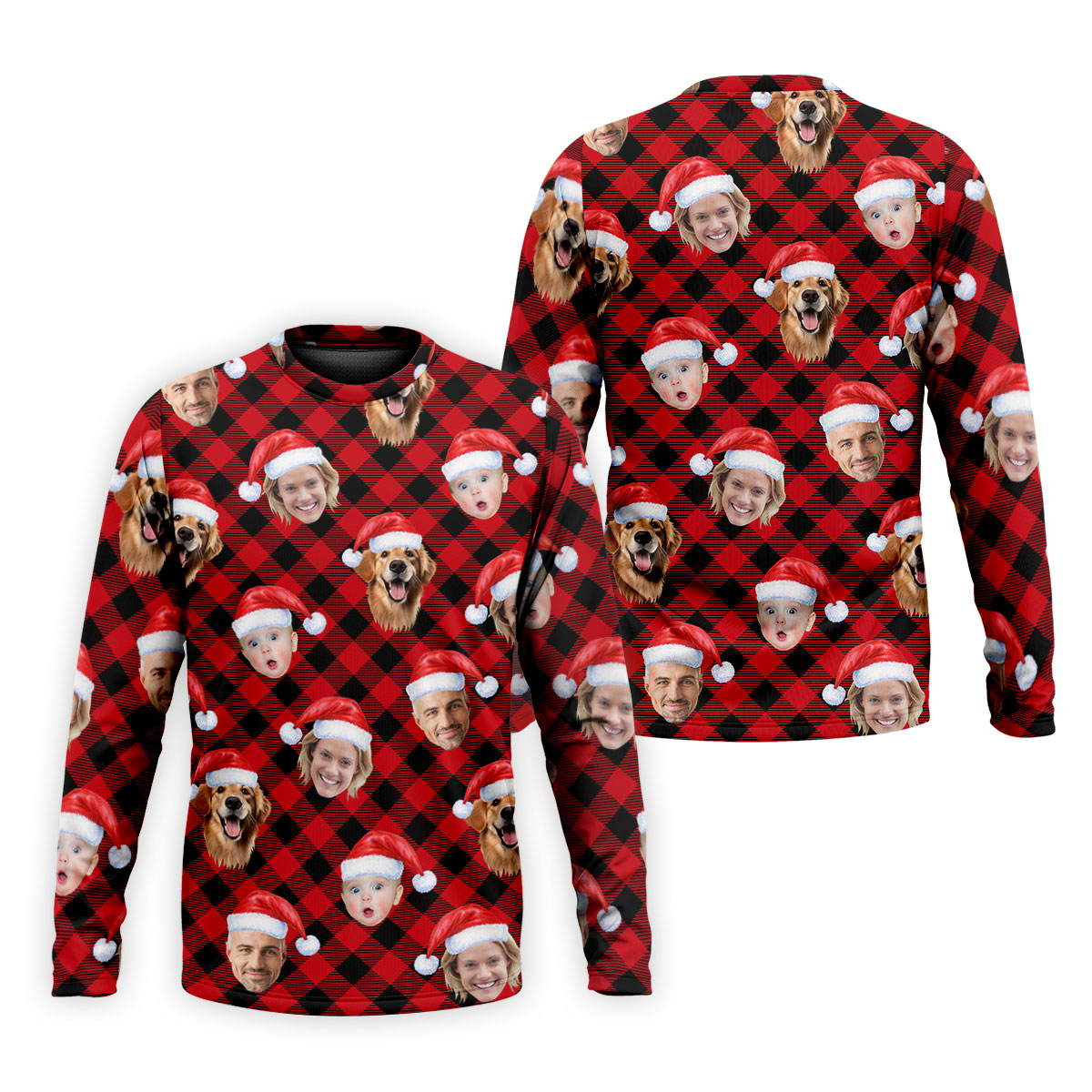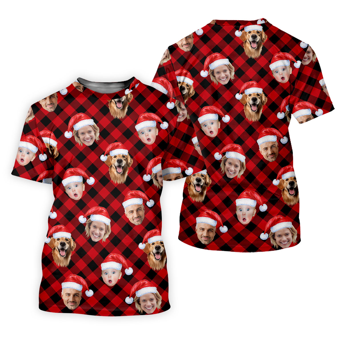 Custom Face Red And Black Checkered Christmas Golf Shirt, Polo Shirts For Men, Golf Gift For Men