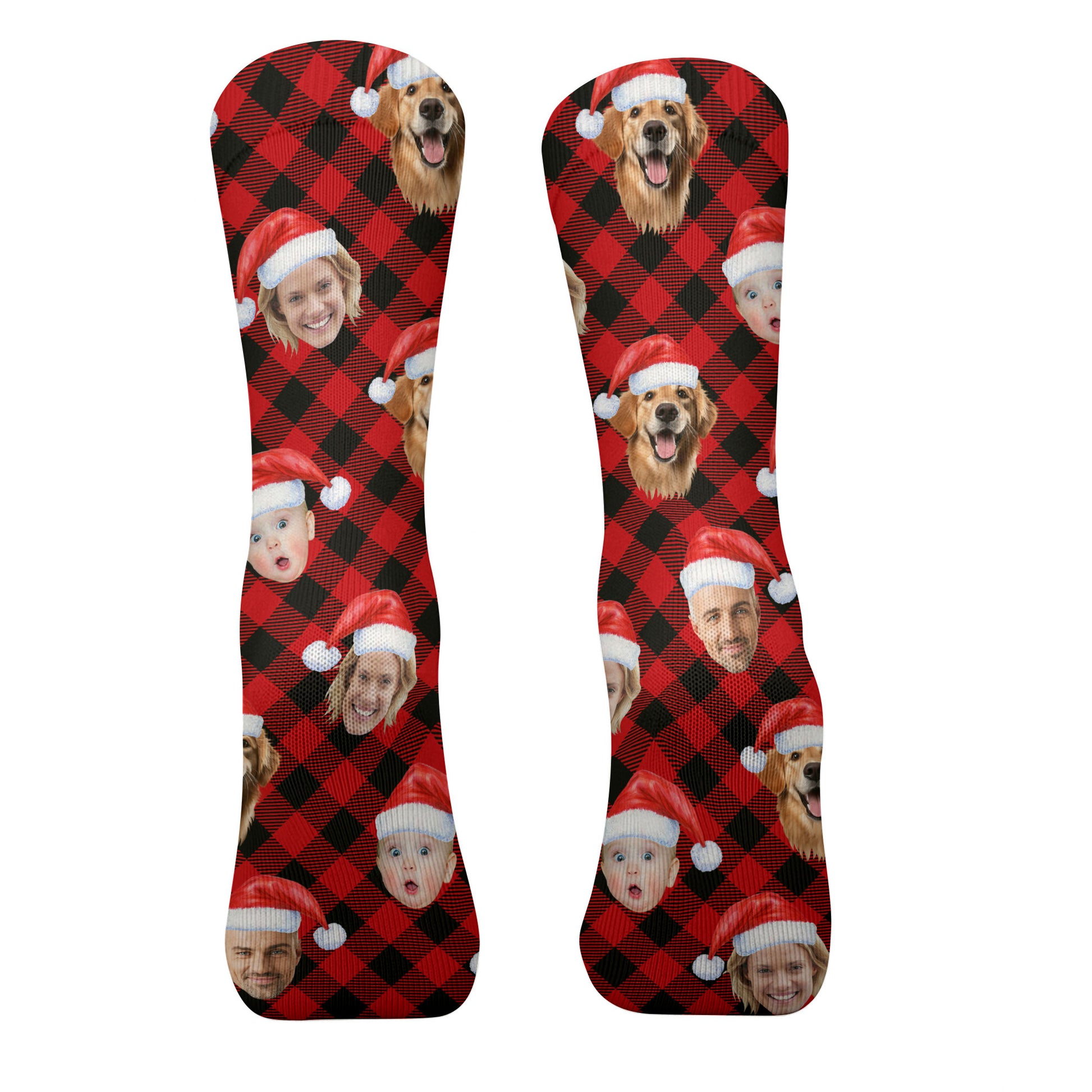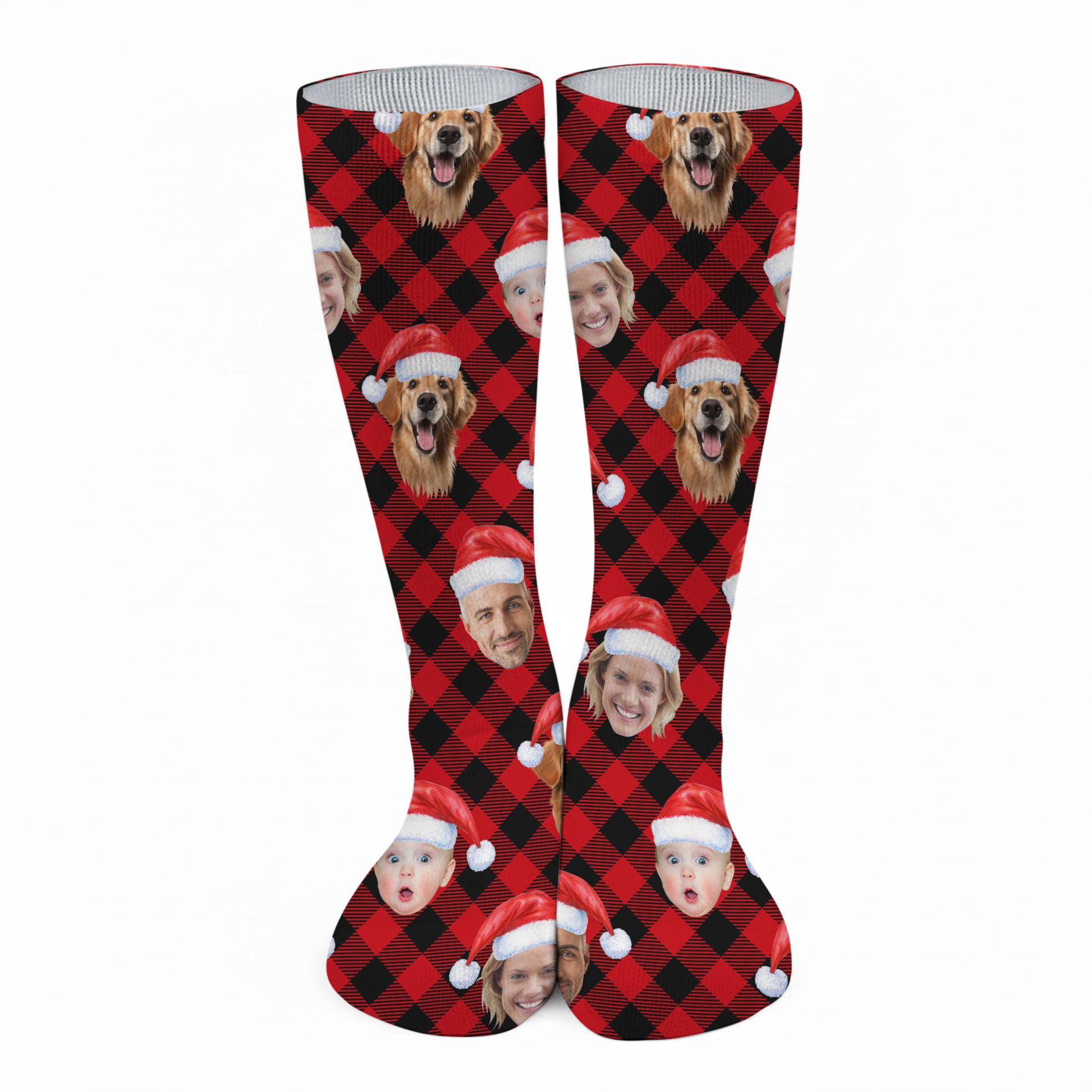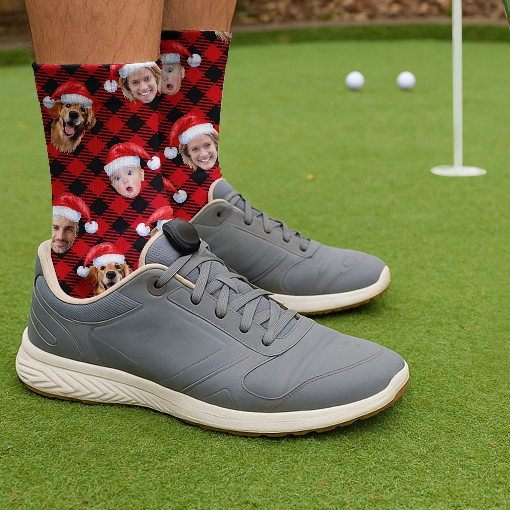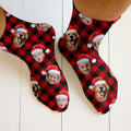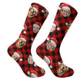 Custom Face Red And Black Checkered Golf Socks, Christmas Golf Socks, Christmas Golf Gift