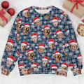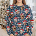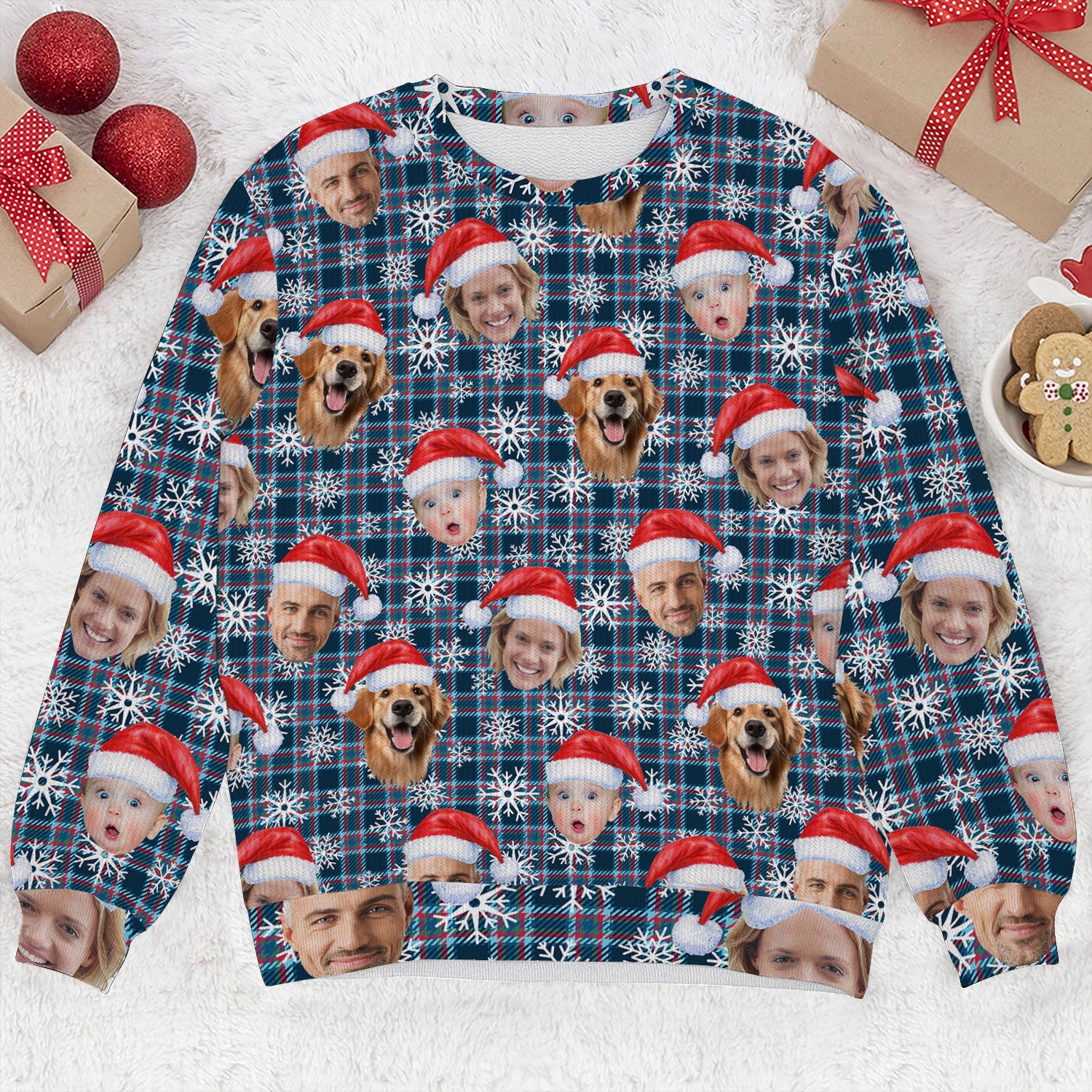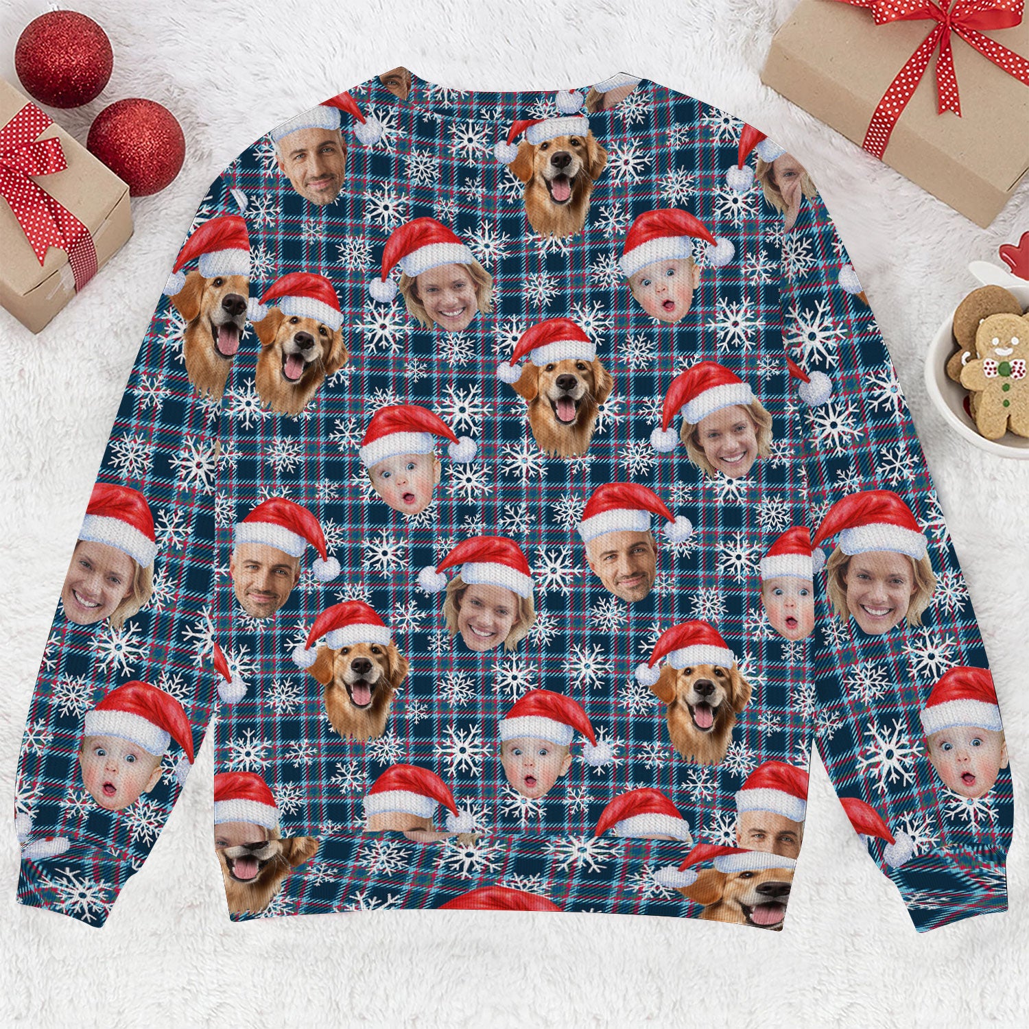 Custom Face Red And Blue Plaid Snowflakes Print Golf Ugly Sweater, Christmas Golf Shirt, Golf Sweater