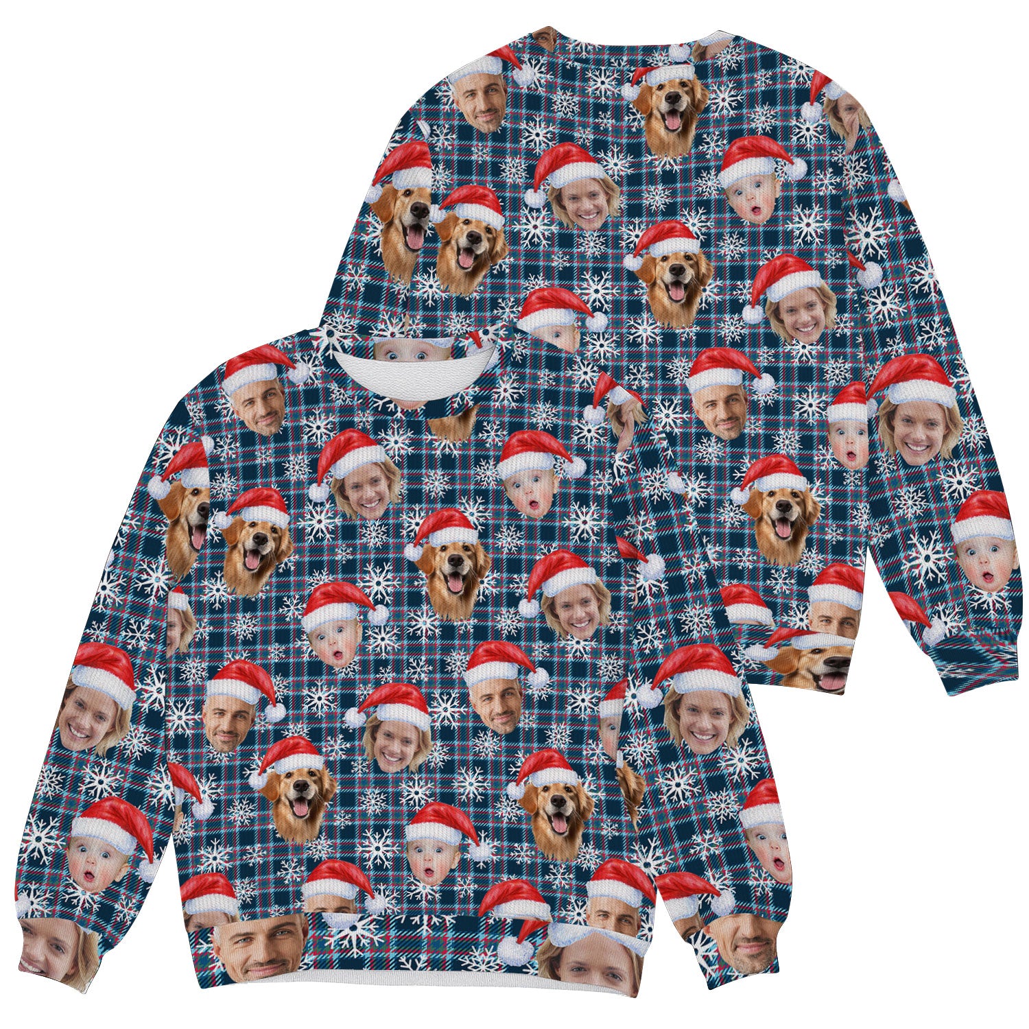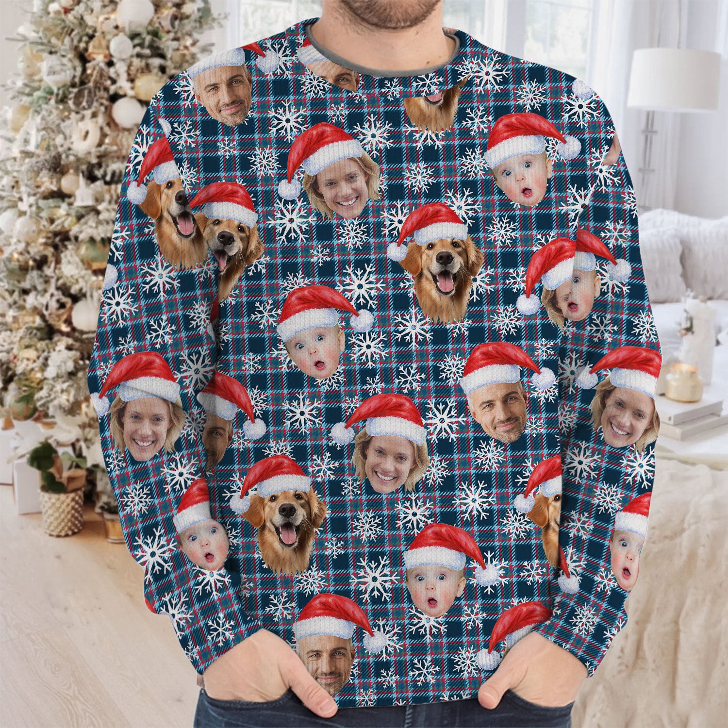 Introducing the Custom Face Red And Blue Plaid Snowflakes Print Golf Ugly Sweater, Christmas Golf Shirt, Golf Sweater, where bad shots meet good vibes and Christmas spirit takes a full swing.