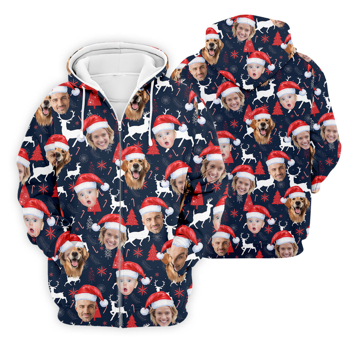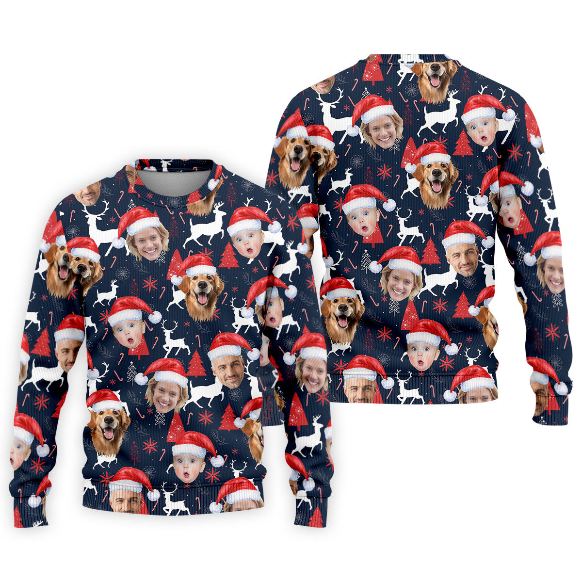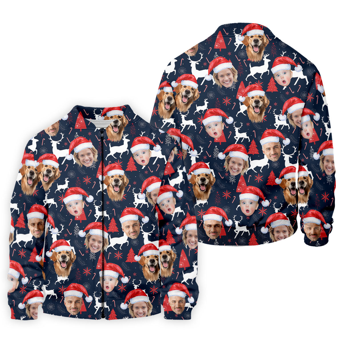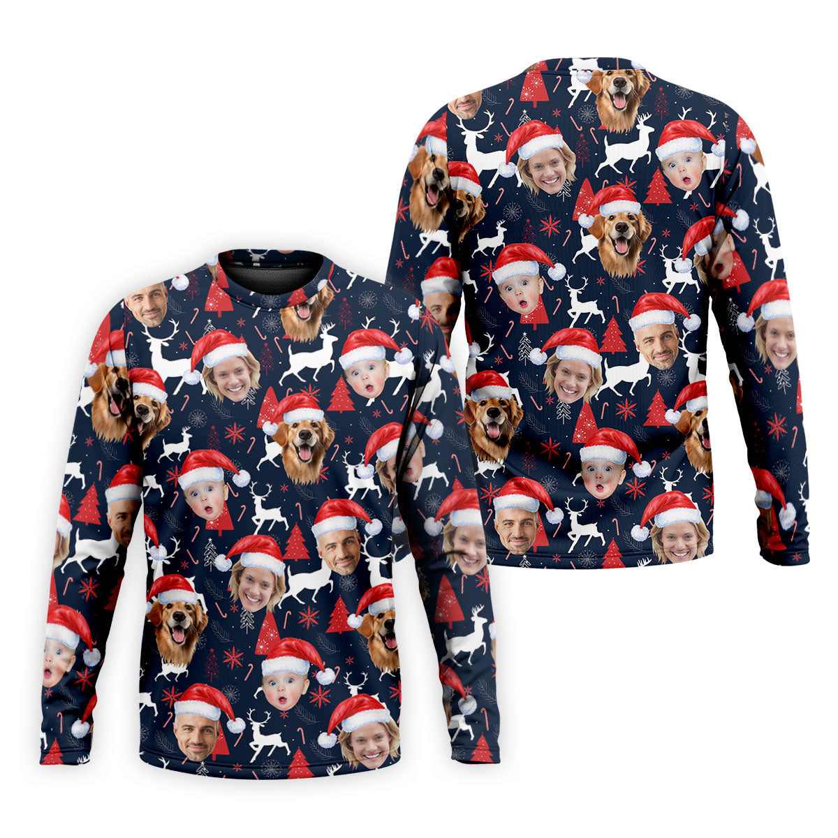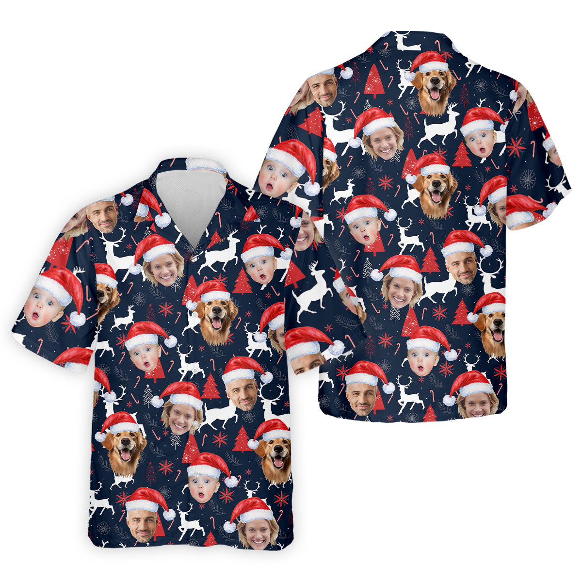 Custom Face Red And Navy Seamless Pattern Christmas Golf Shirt, Golf Shirts For Men, Golf Gift For Men