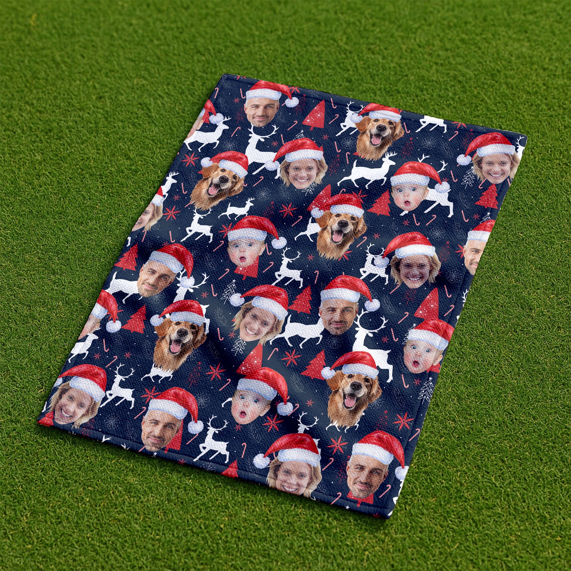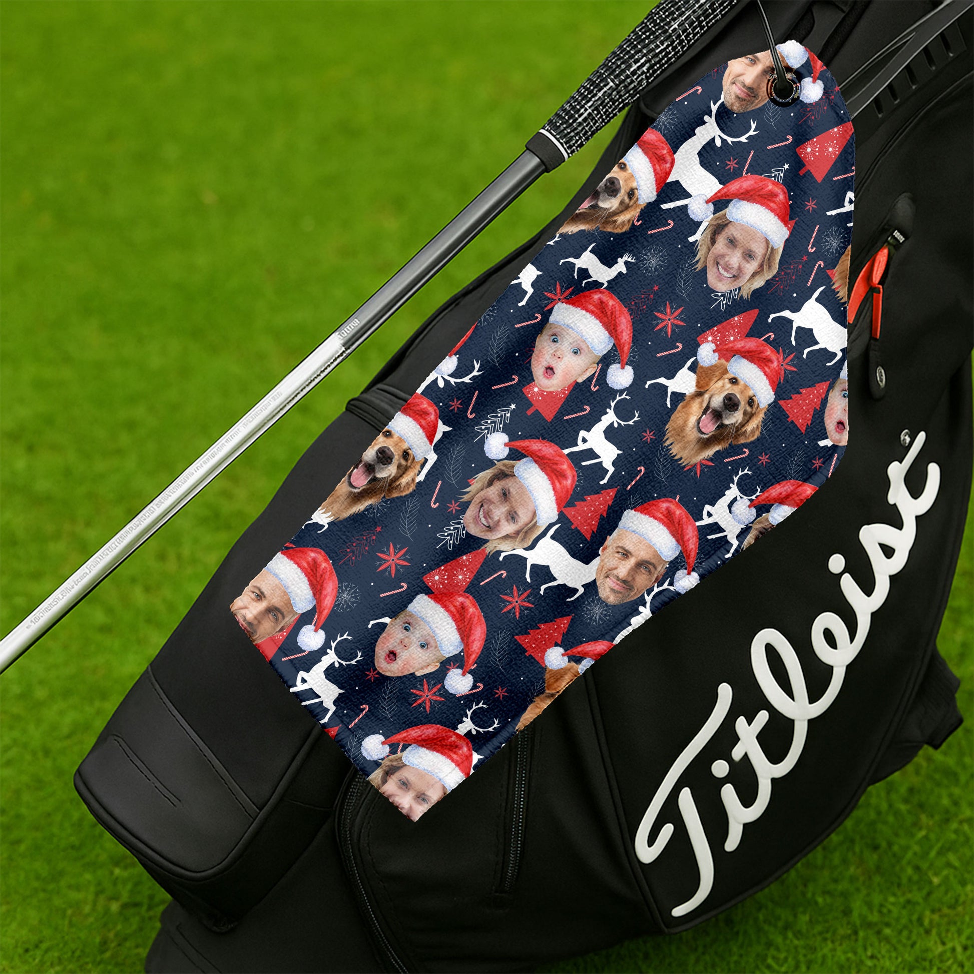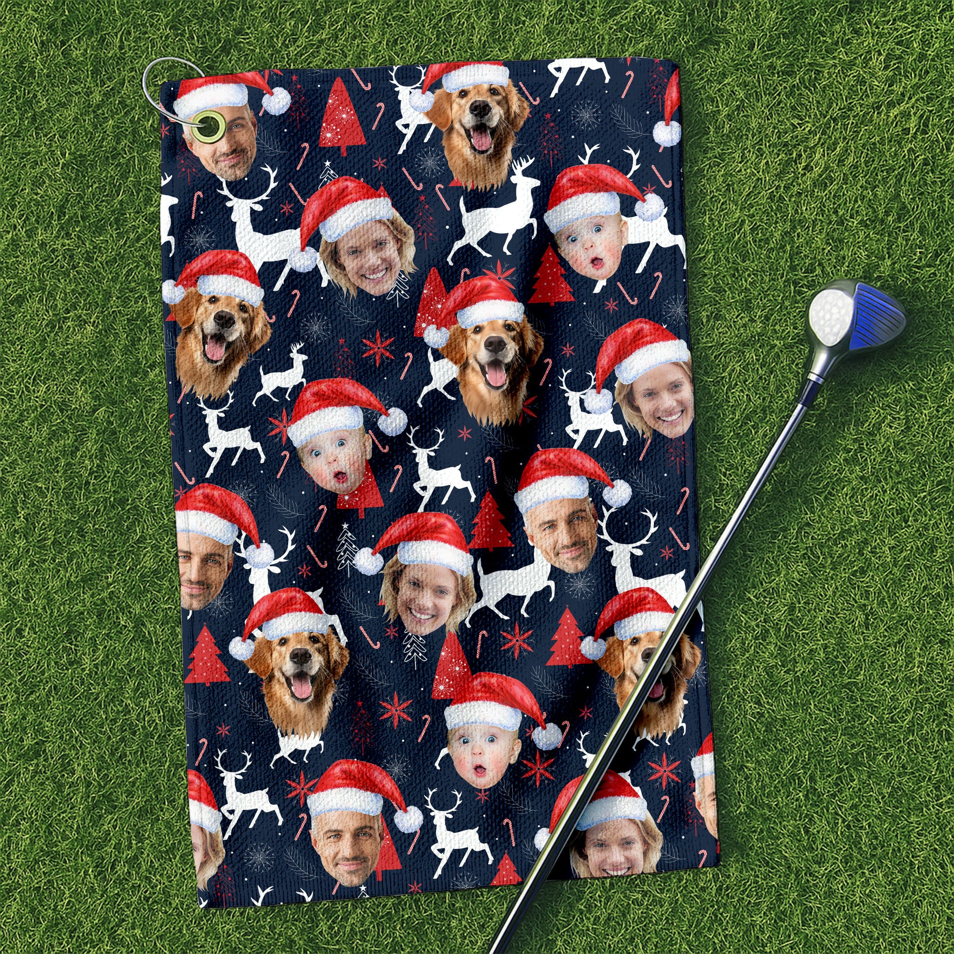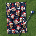 Custom Face Red And Navy Seamless Pattern Golf Towels, Christmas Golf Gift, Custom Golf Accessories