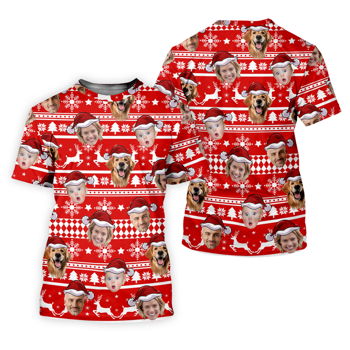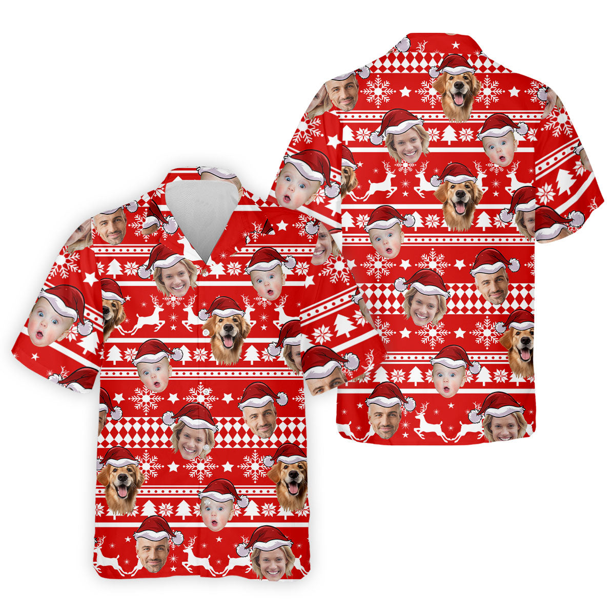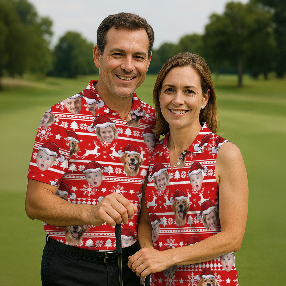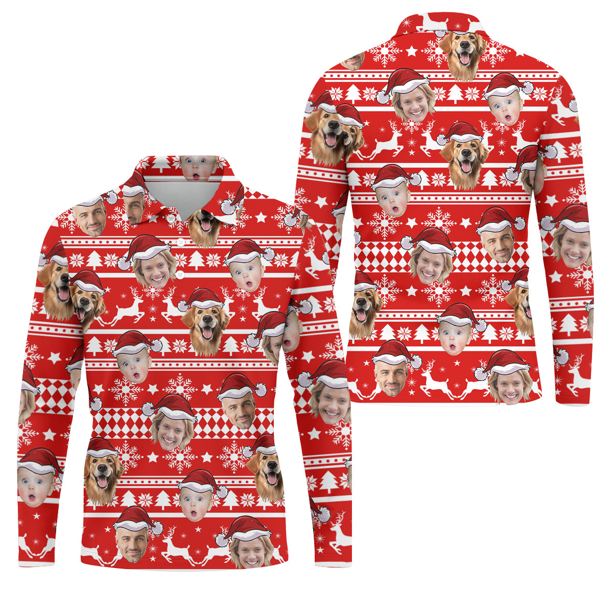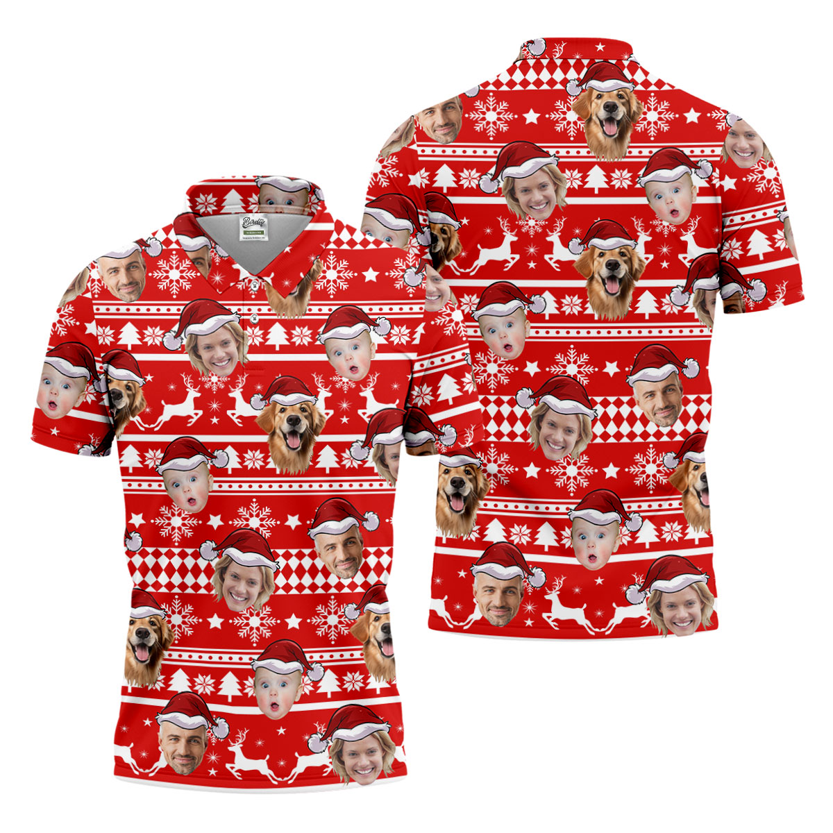 Custom Face Red And White Christmas Golf Tops For Men, Polo Shirts For Men, Christmas Golf Gift