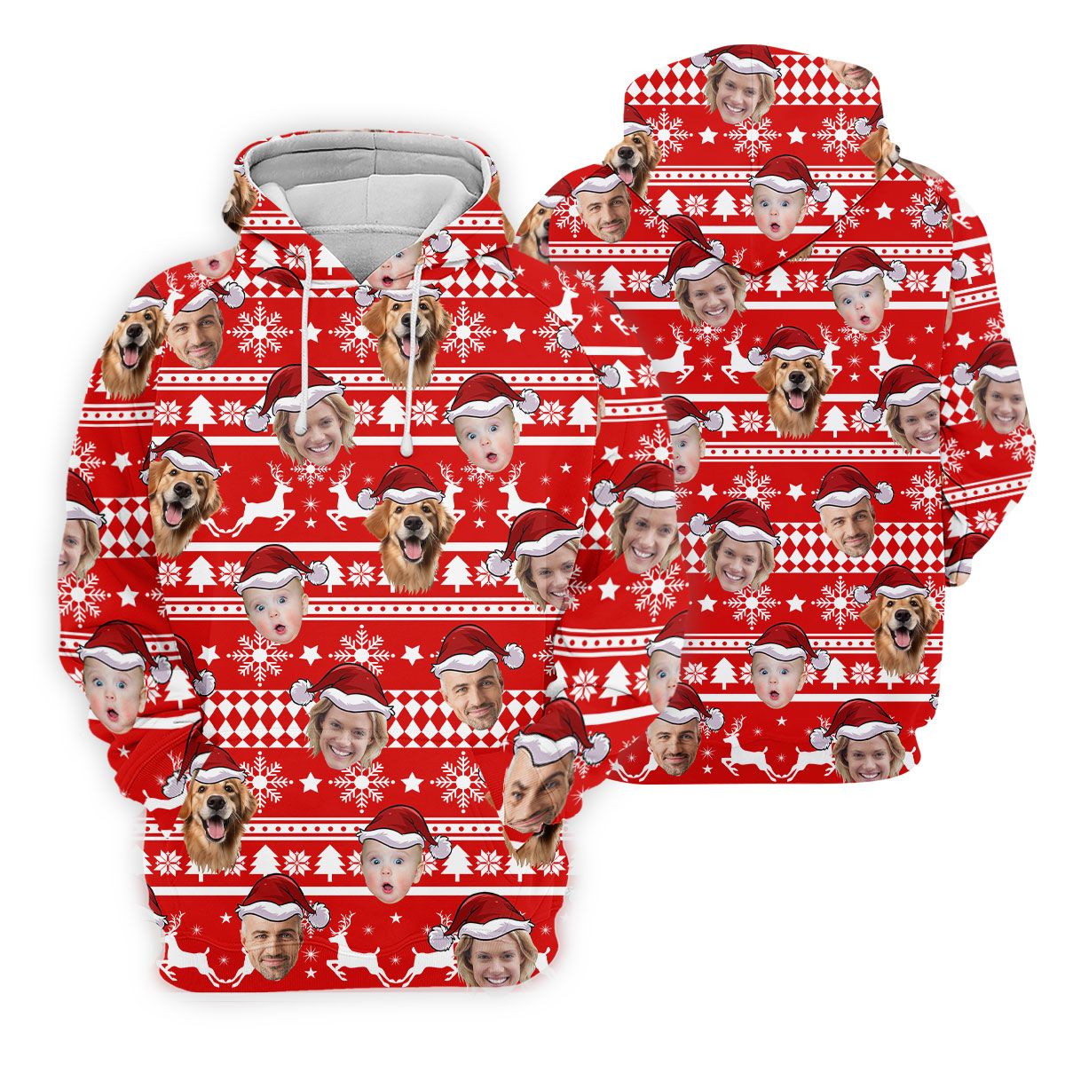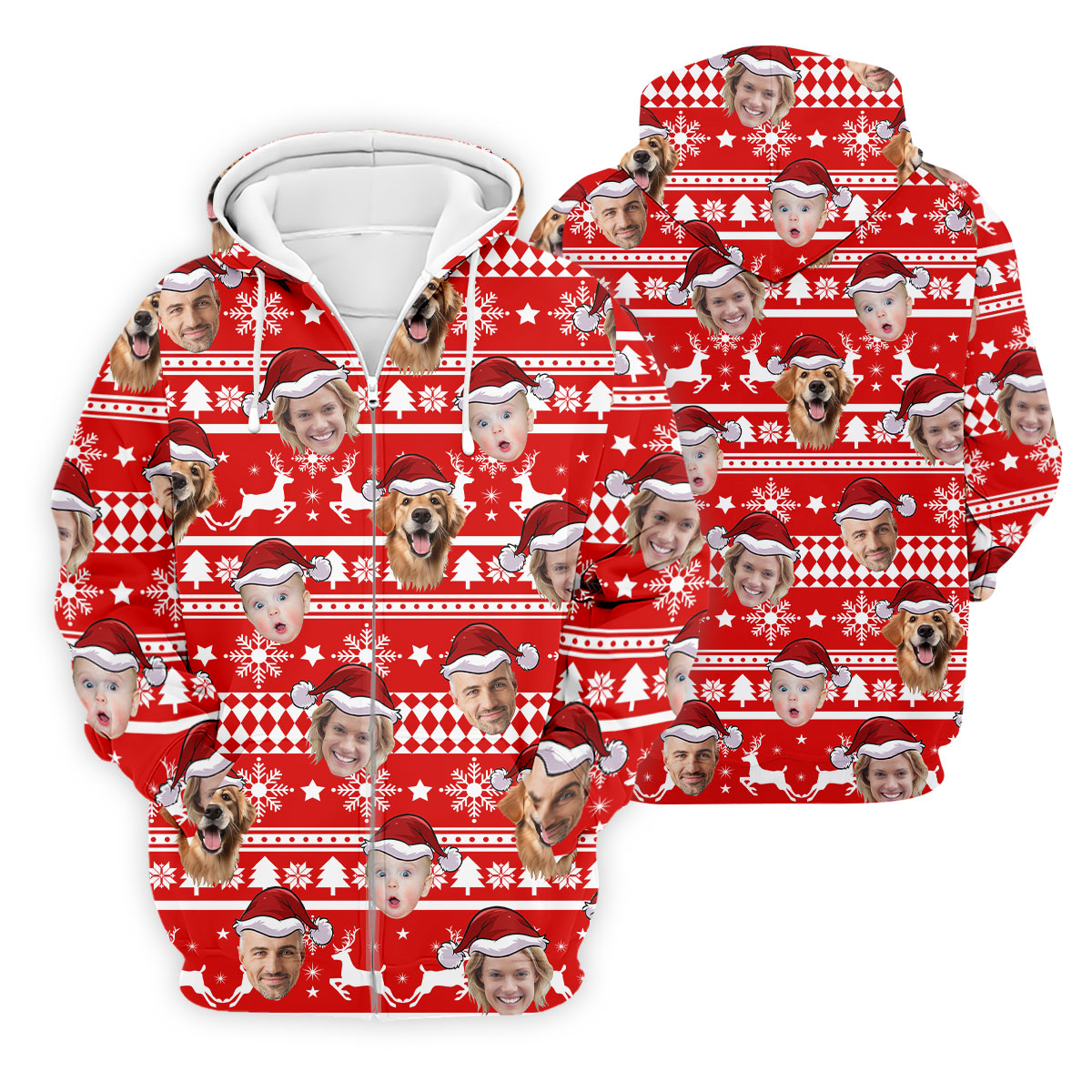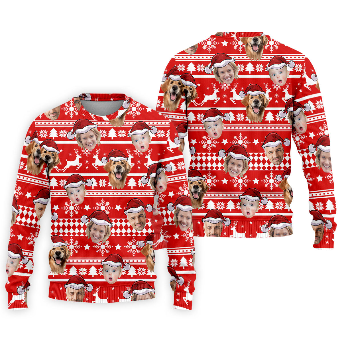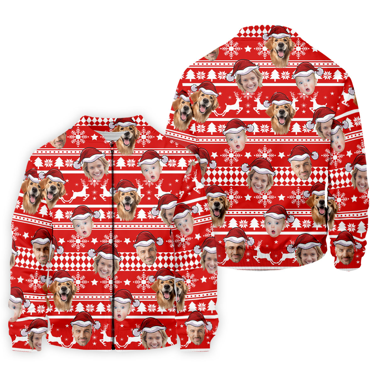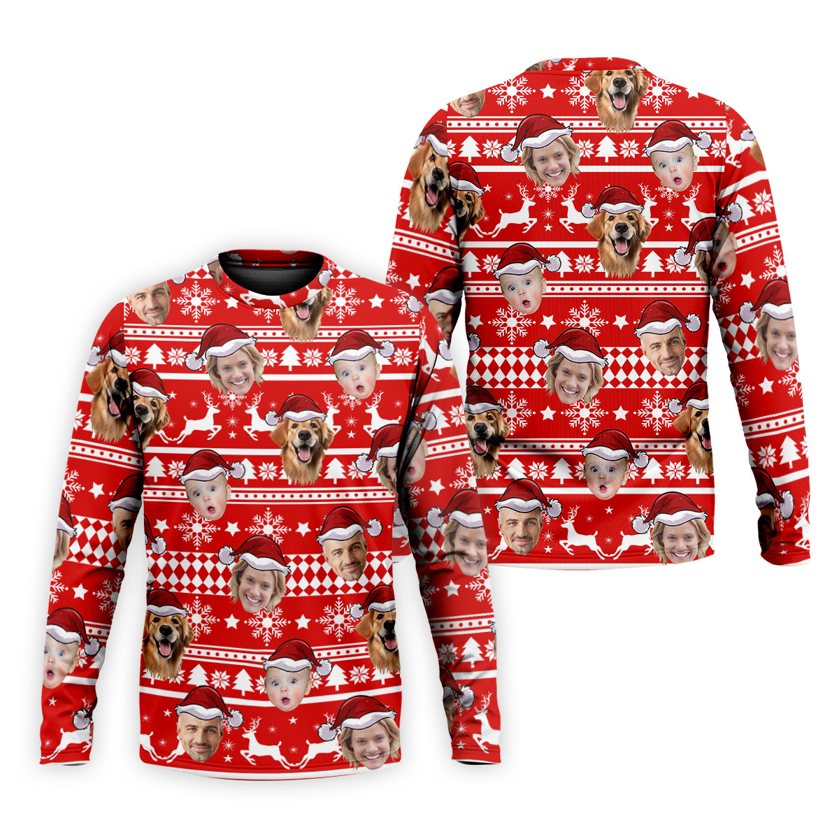 Custom Face Red And White Christmas Golf Tops For Men, Polo Shirts For Men, Christmas Golf Gift