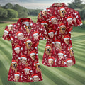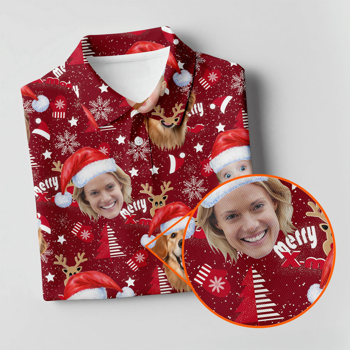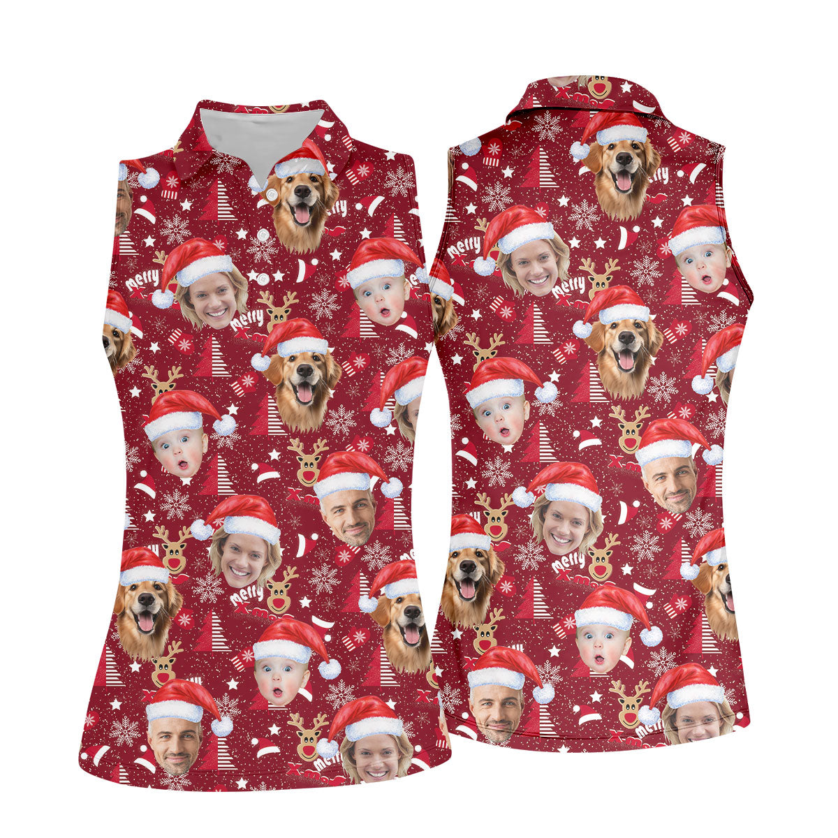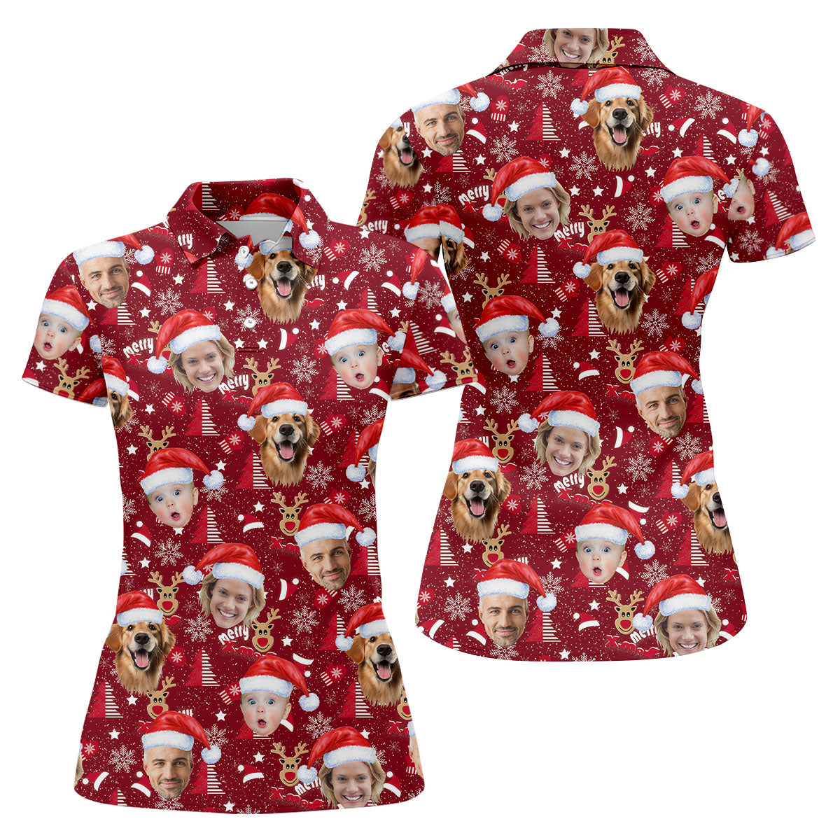 Custom Face Red Nose Reindeer Merry Xmas Red Golf Shirt, Christmas Golf Shirt, Women's Golf Tops