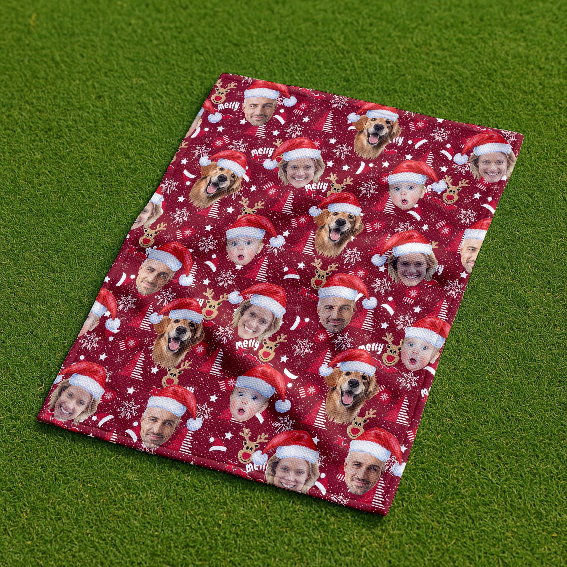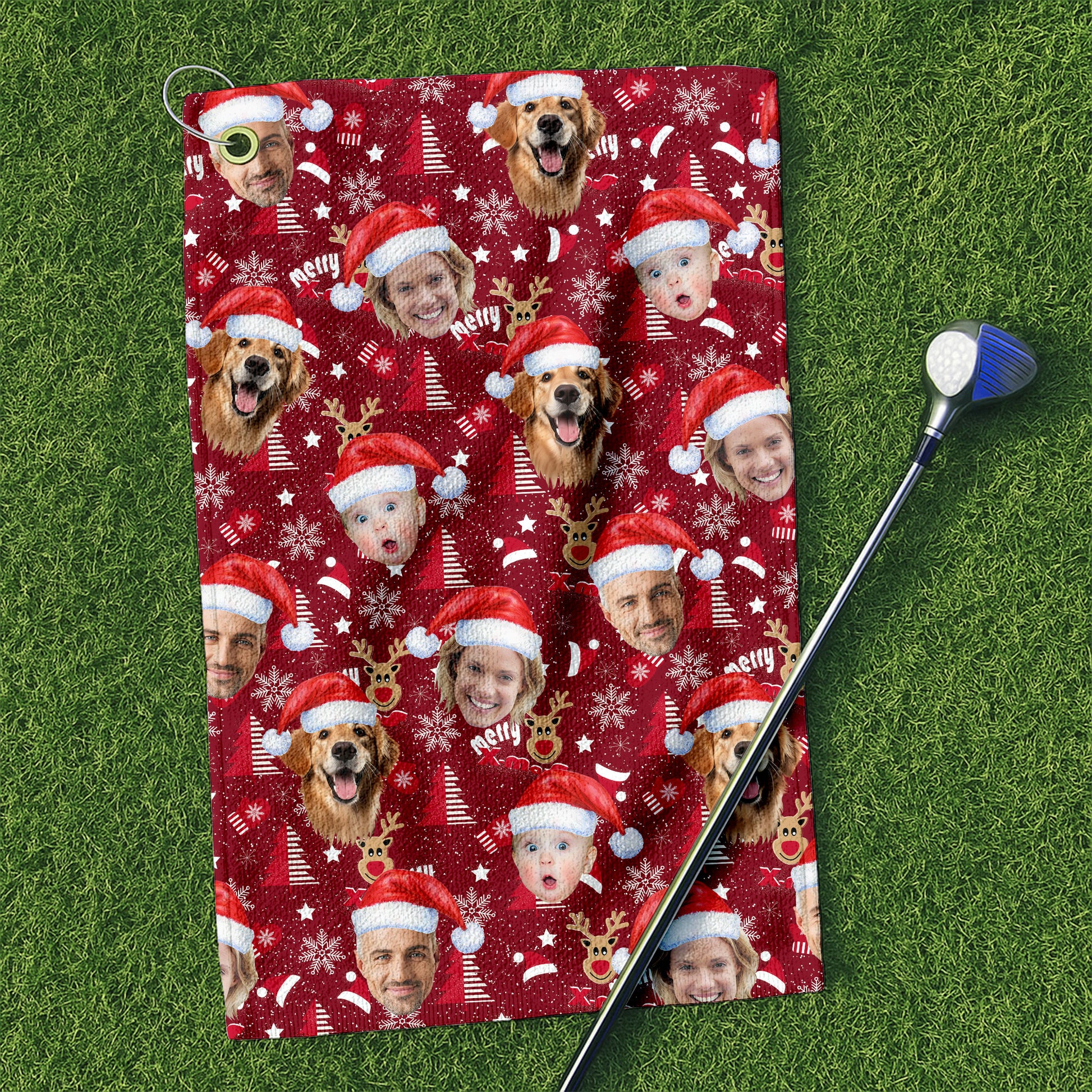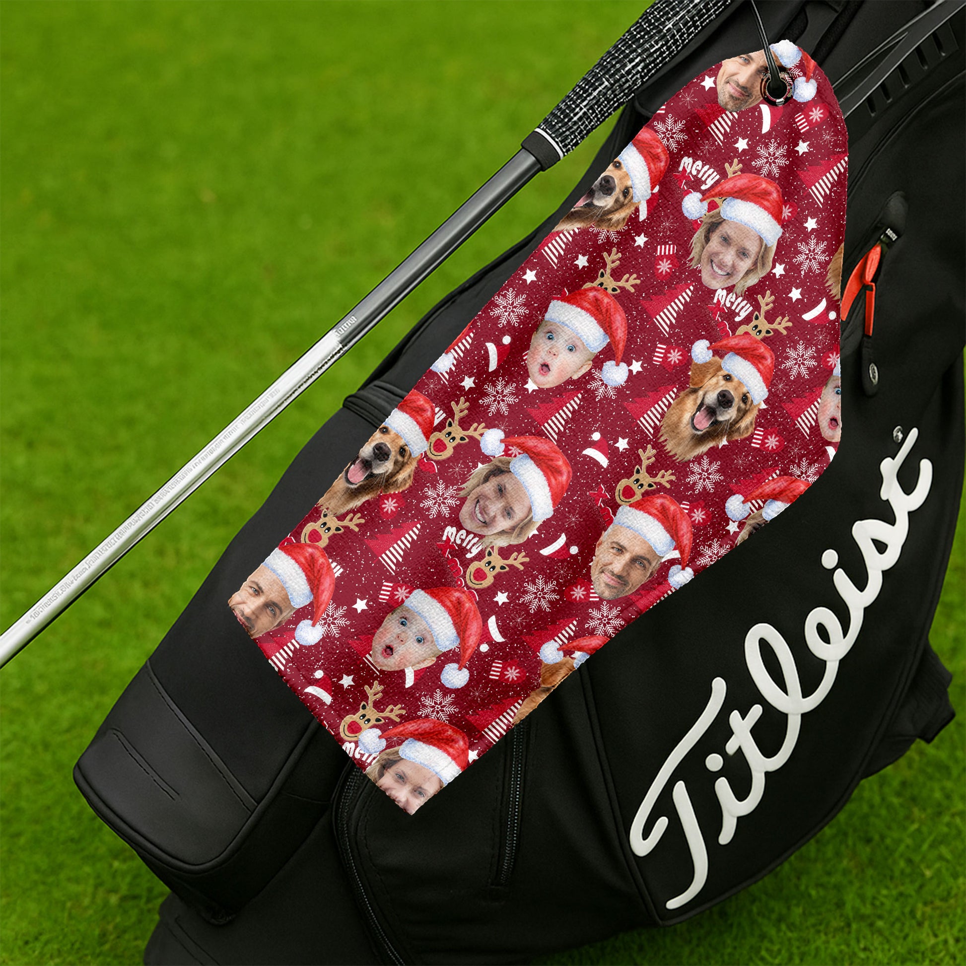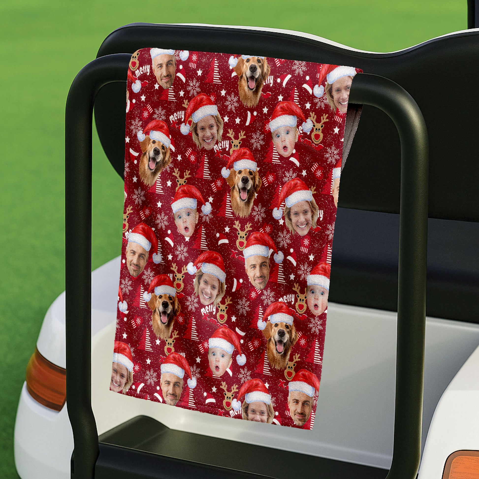 Custom Face Red Nose Reindeer Merry Xmas Red Golf Towel, Christmas Golf Gift, Golf Gift Idea