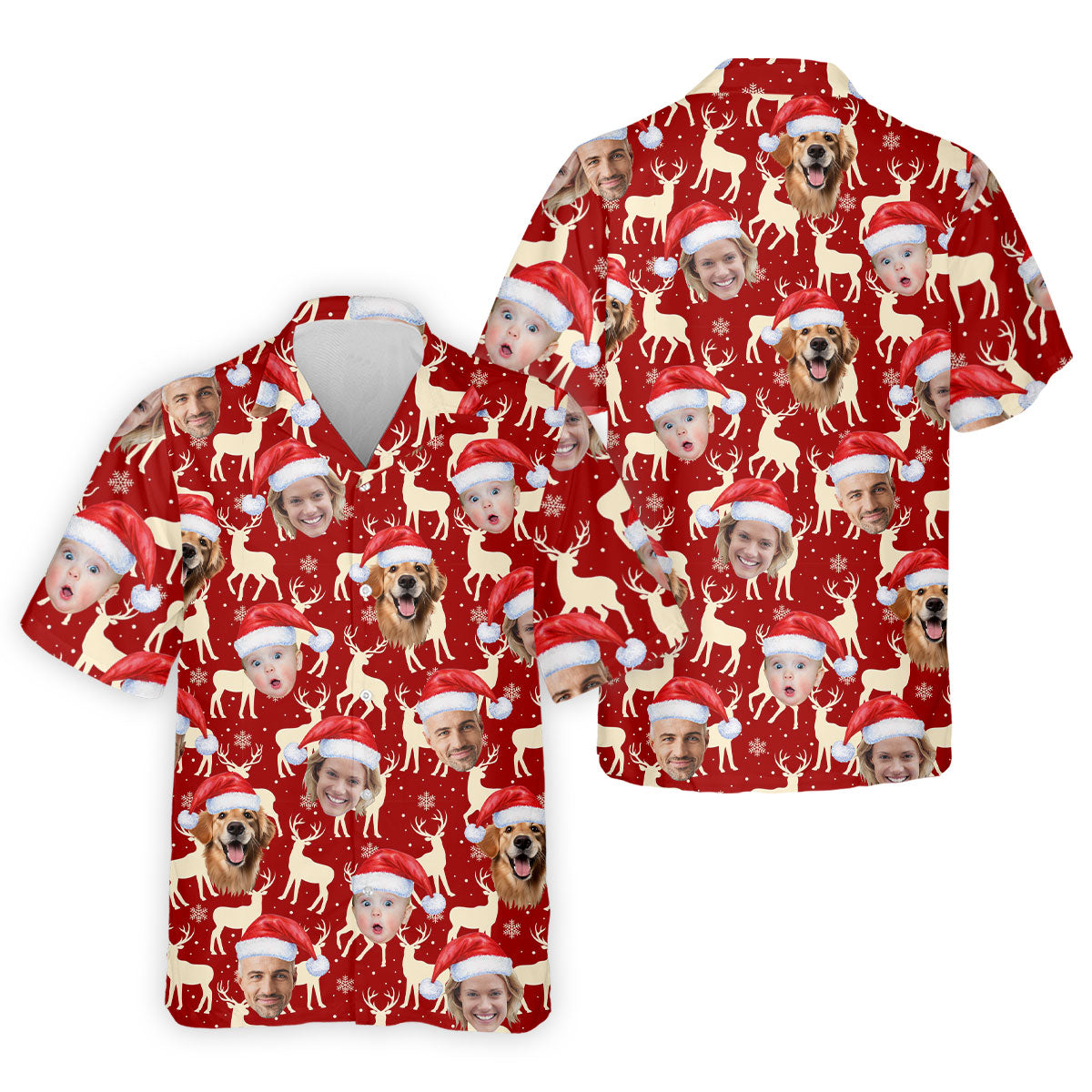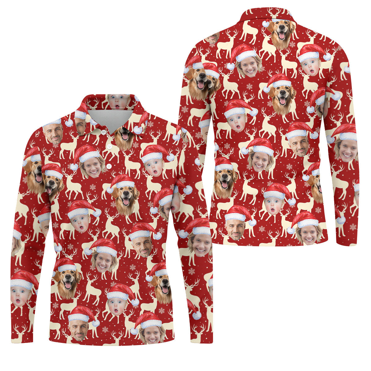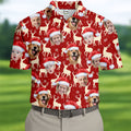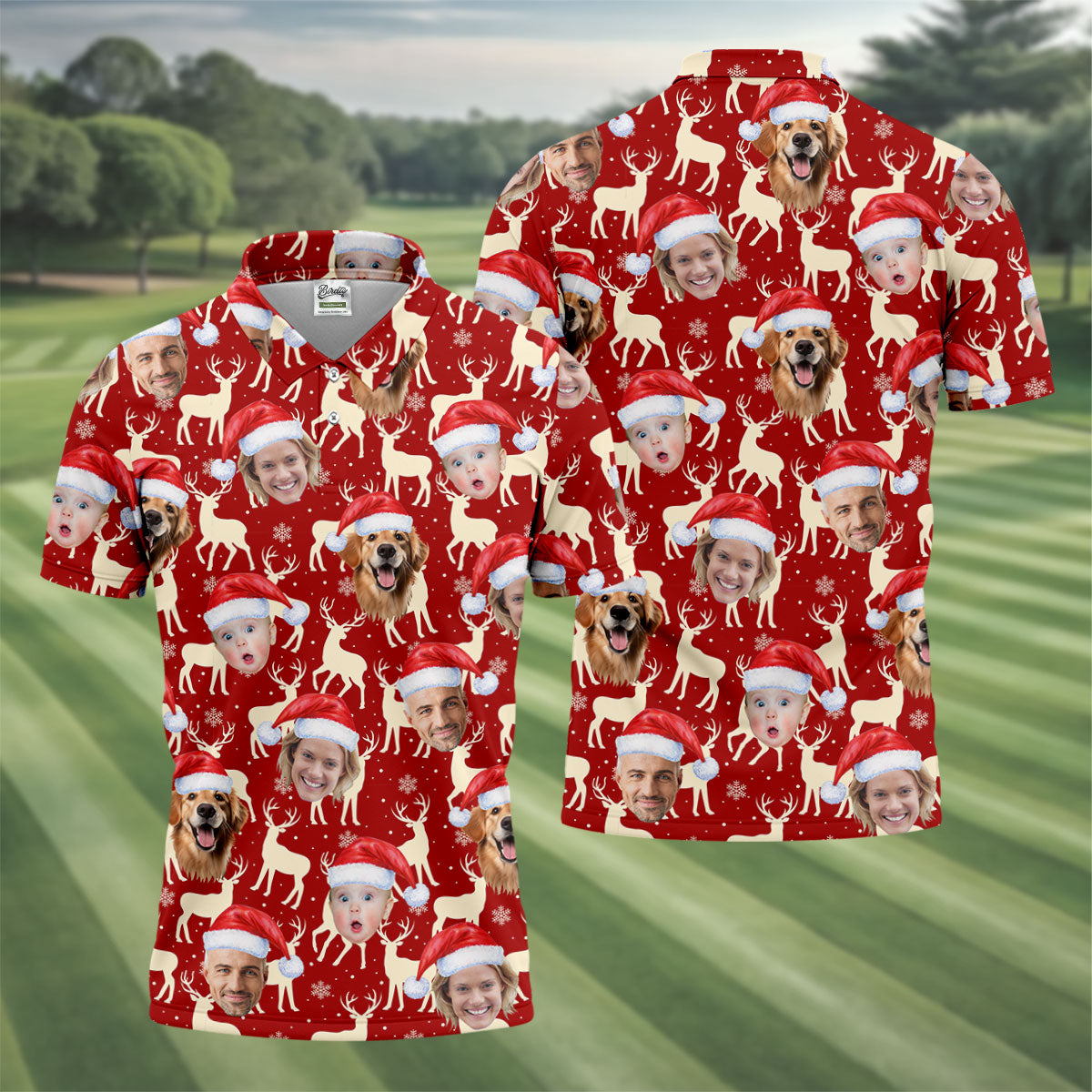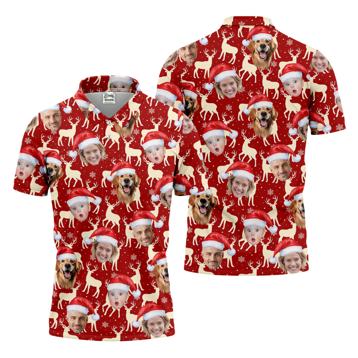 Custom Face Reindeer Pattern Beige And Red Christmas Golf Shirt, Golf Shirts For Men, Golf Gift For Men