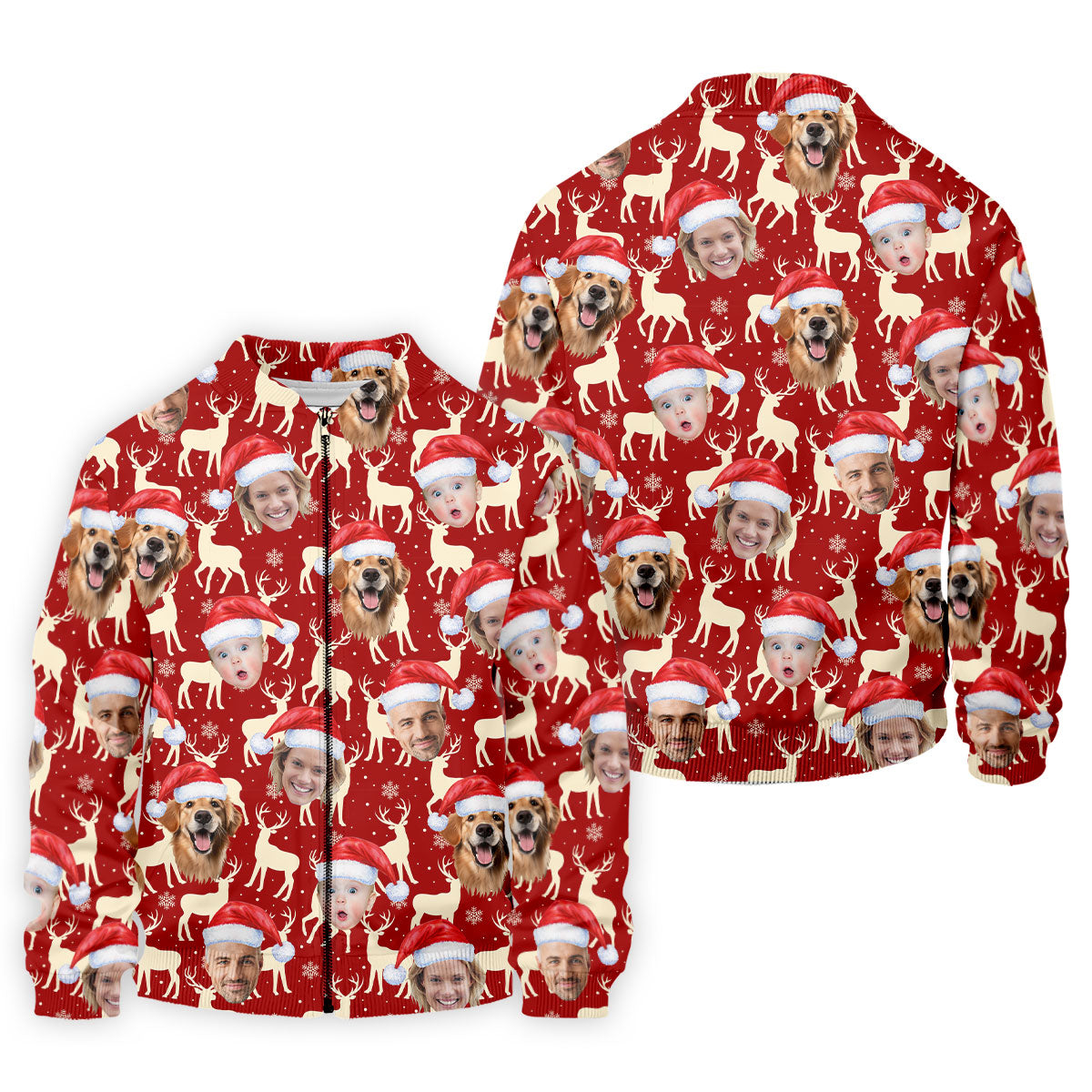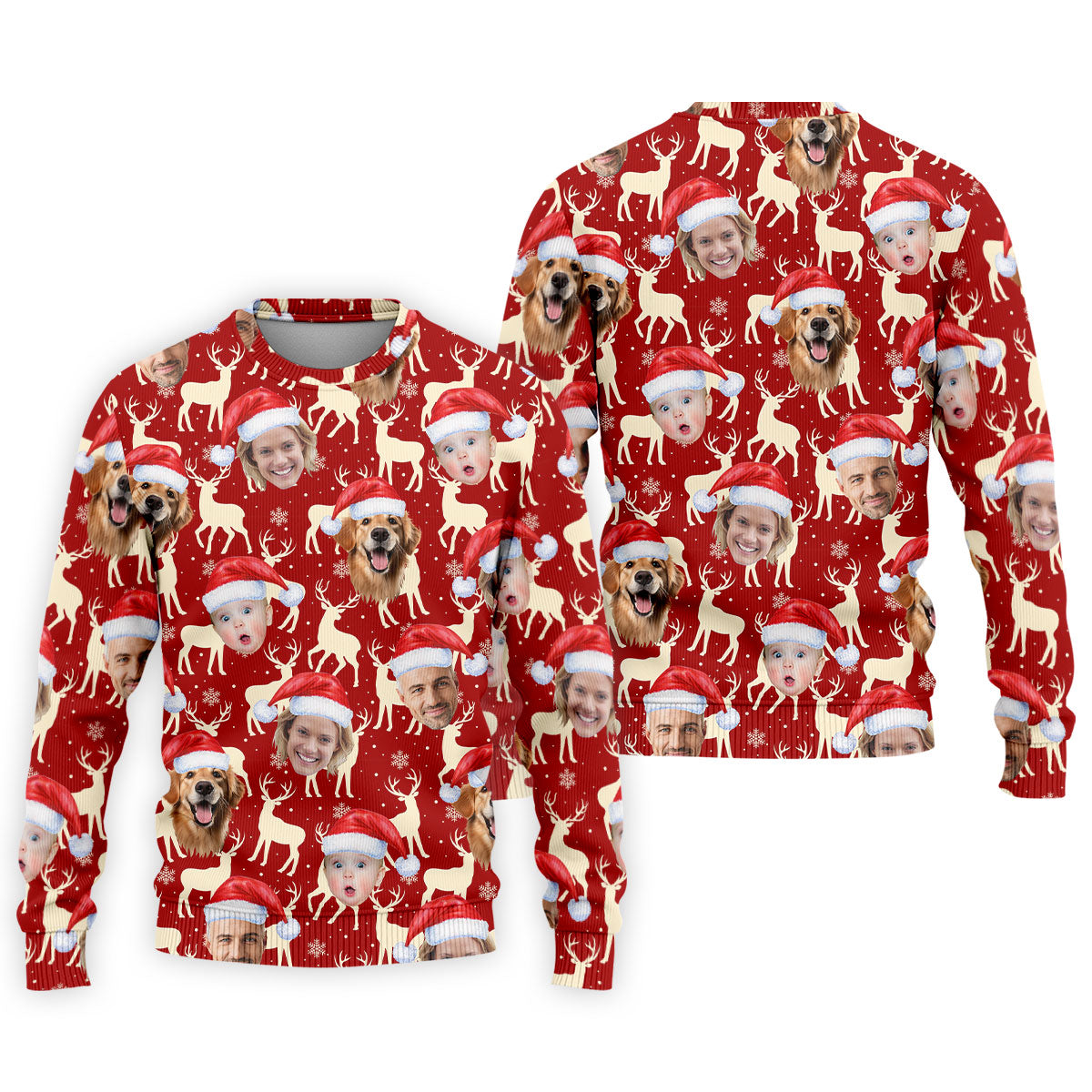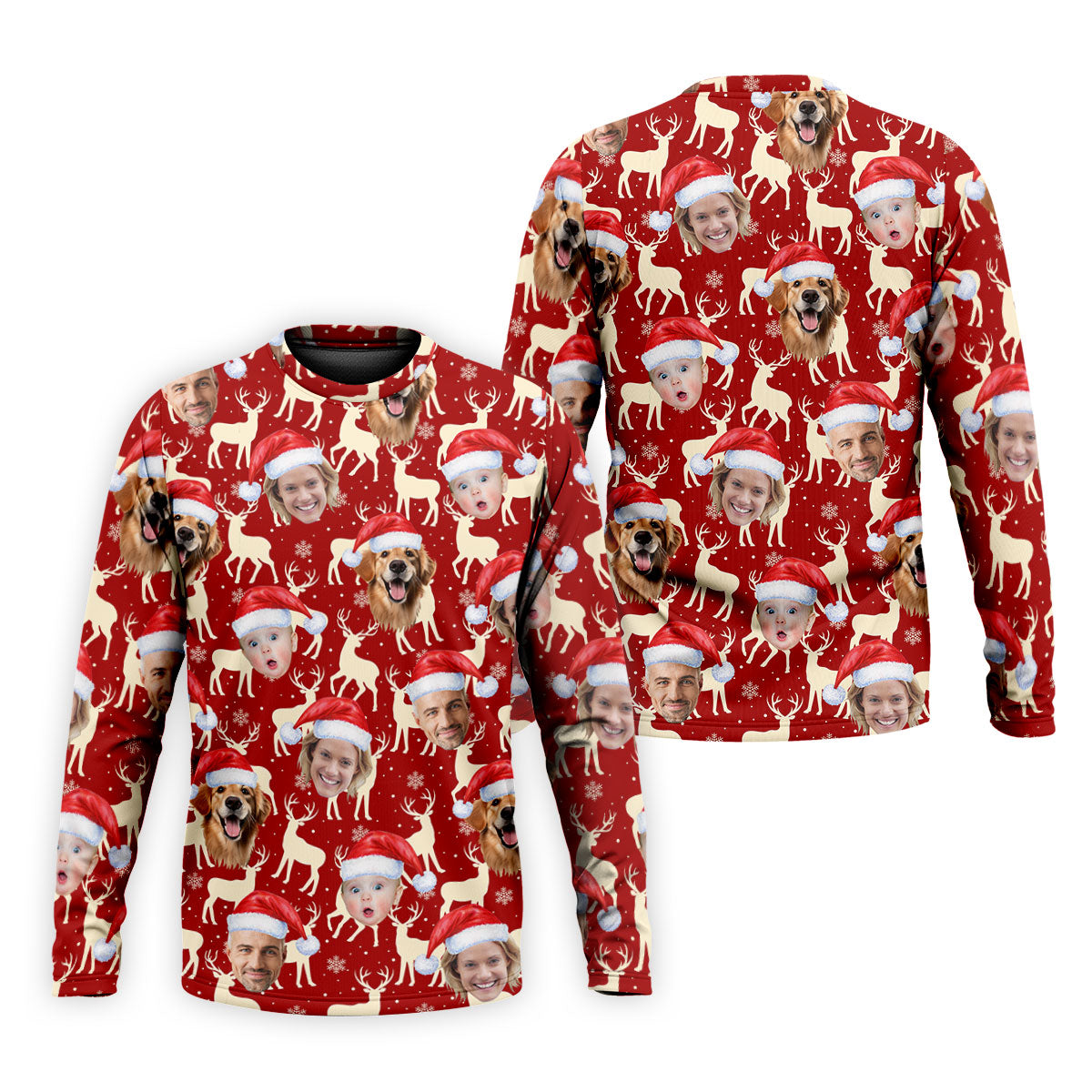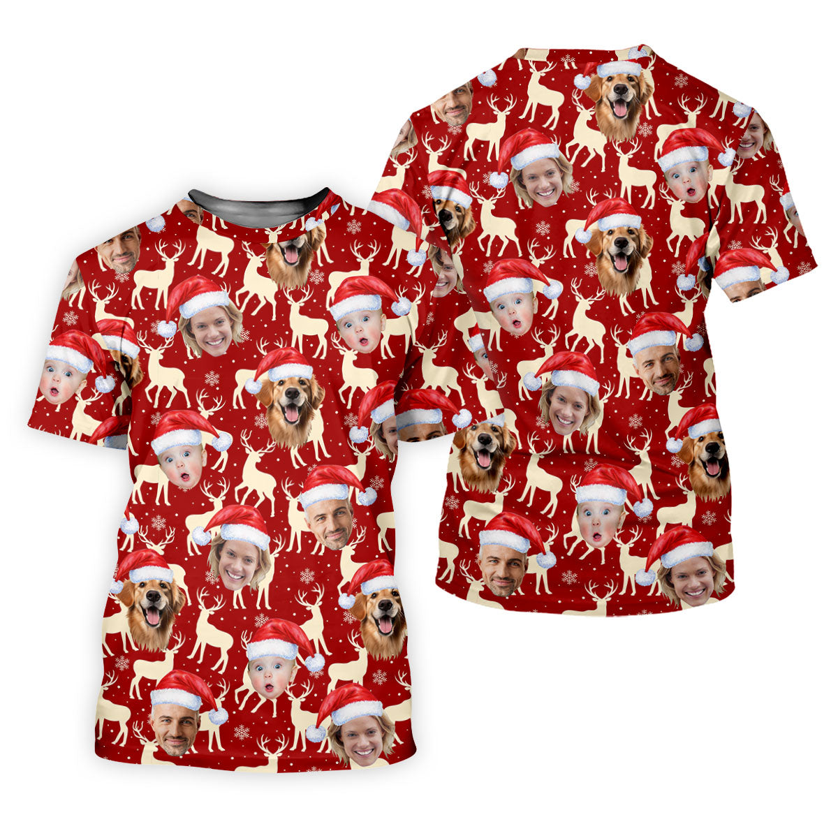 Custom Face Reindeer Pattern Beige And Red Christmas Golf Shirt, Golf Shirts For Men, Golf Gift For Men